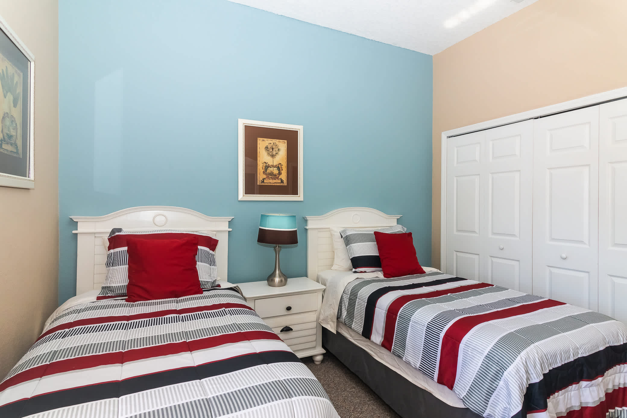 Bedroom #3 has 2 twin size beds and a TV.