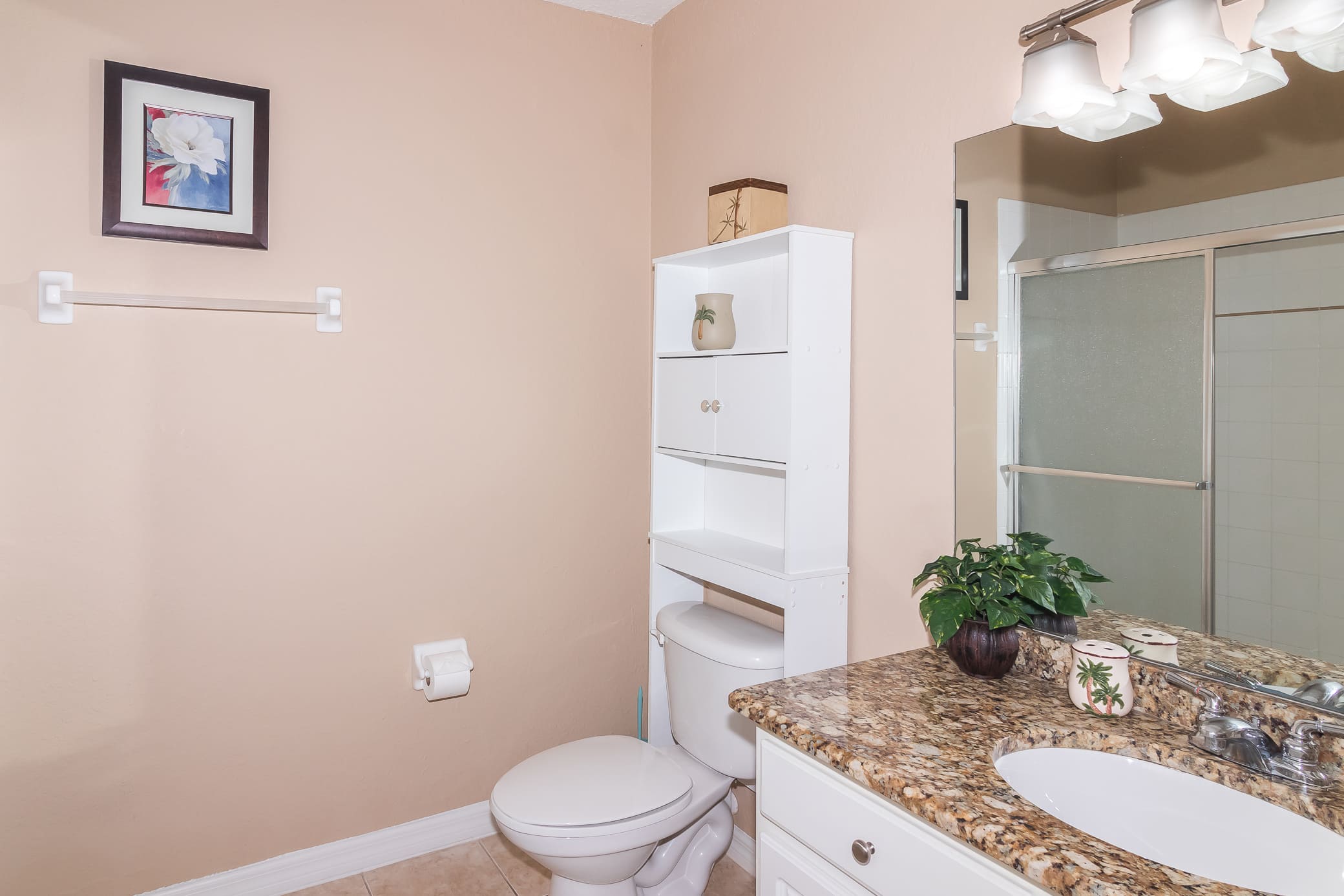 There is an additional shared bathroom with a walk-in shower.