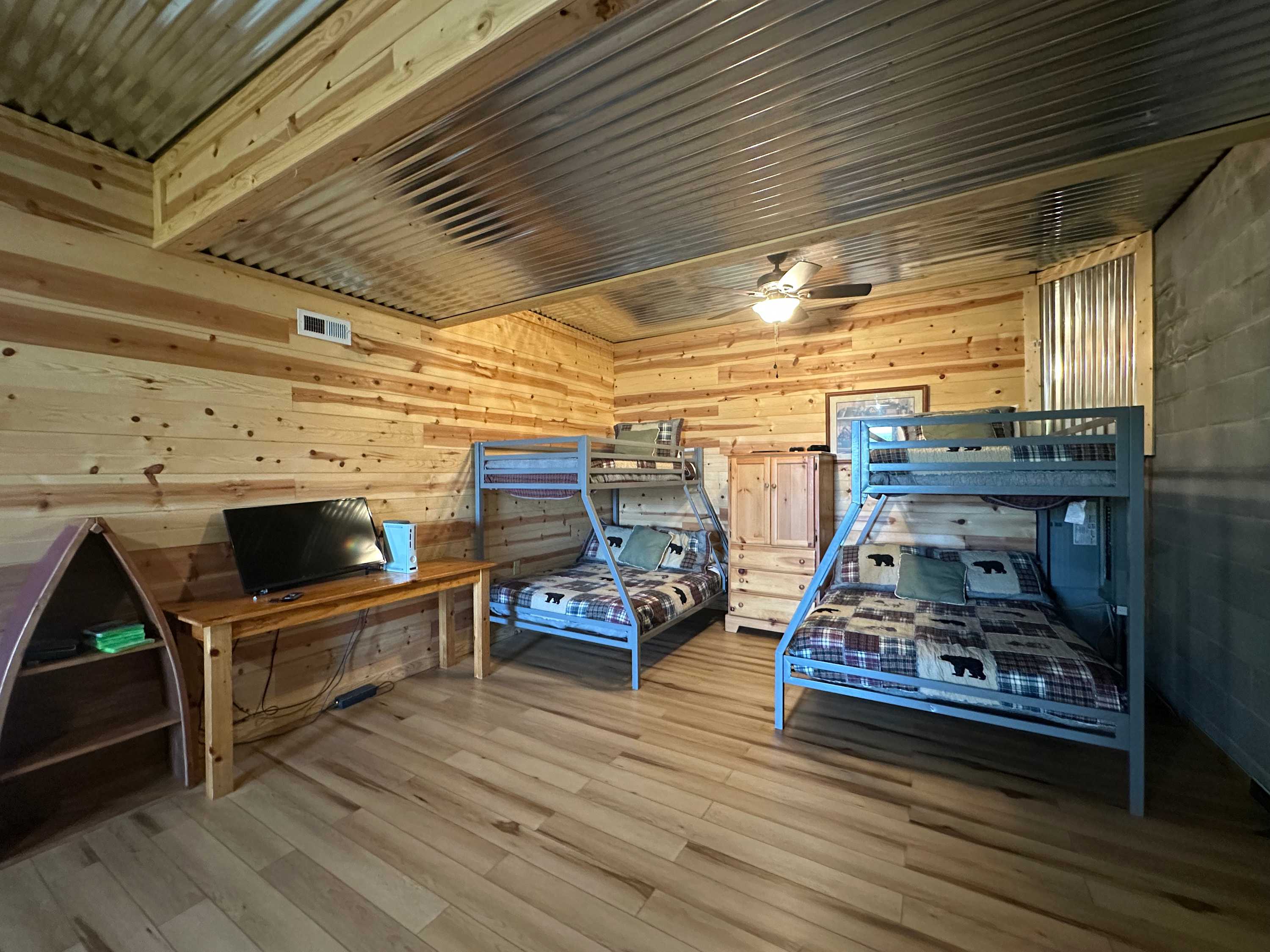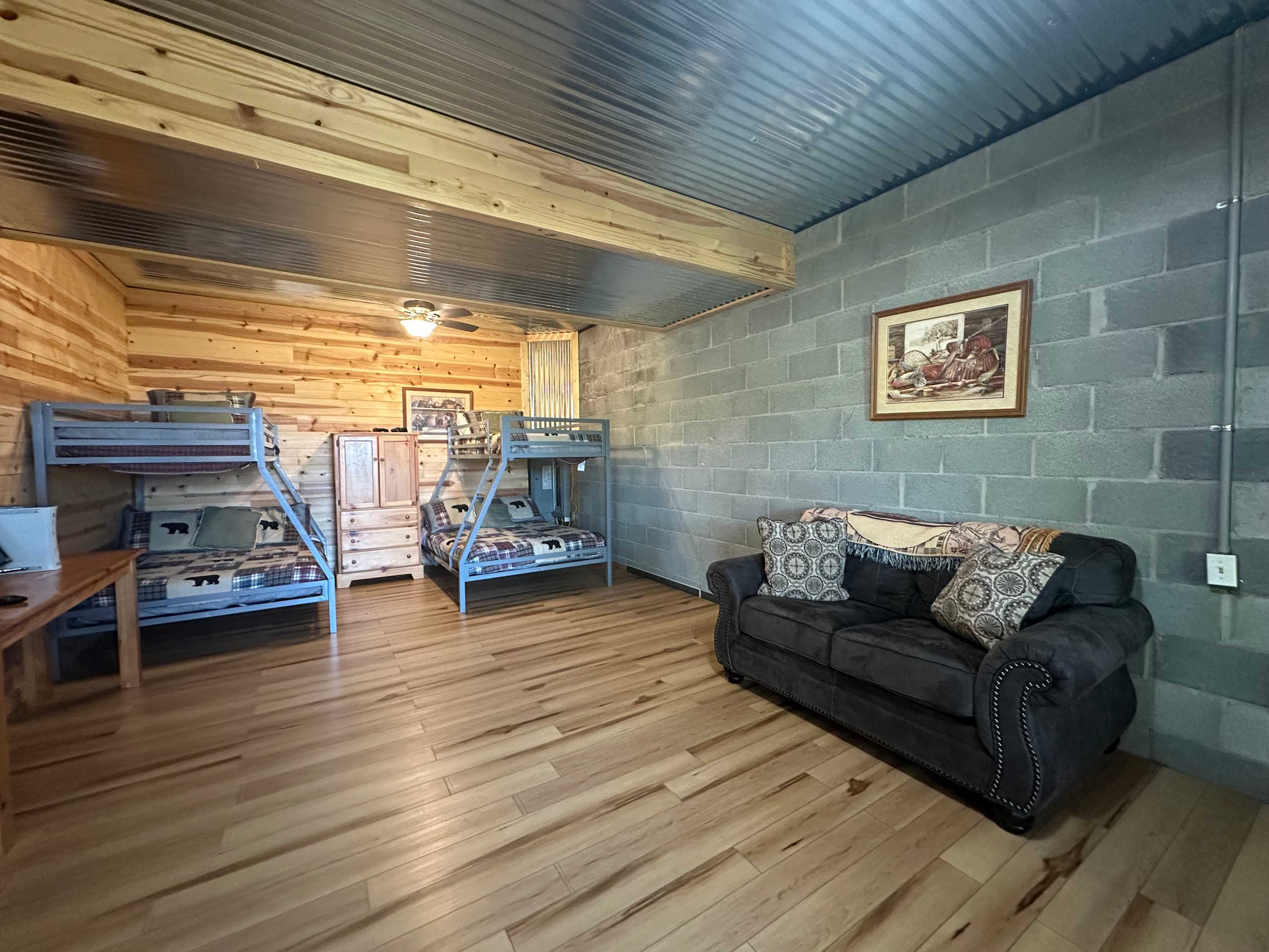 • Lower level/basement: Two twin-over-full bunk beds
