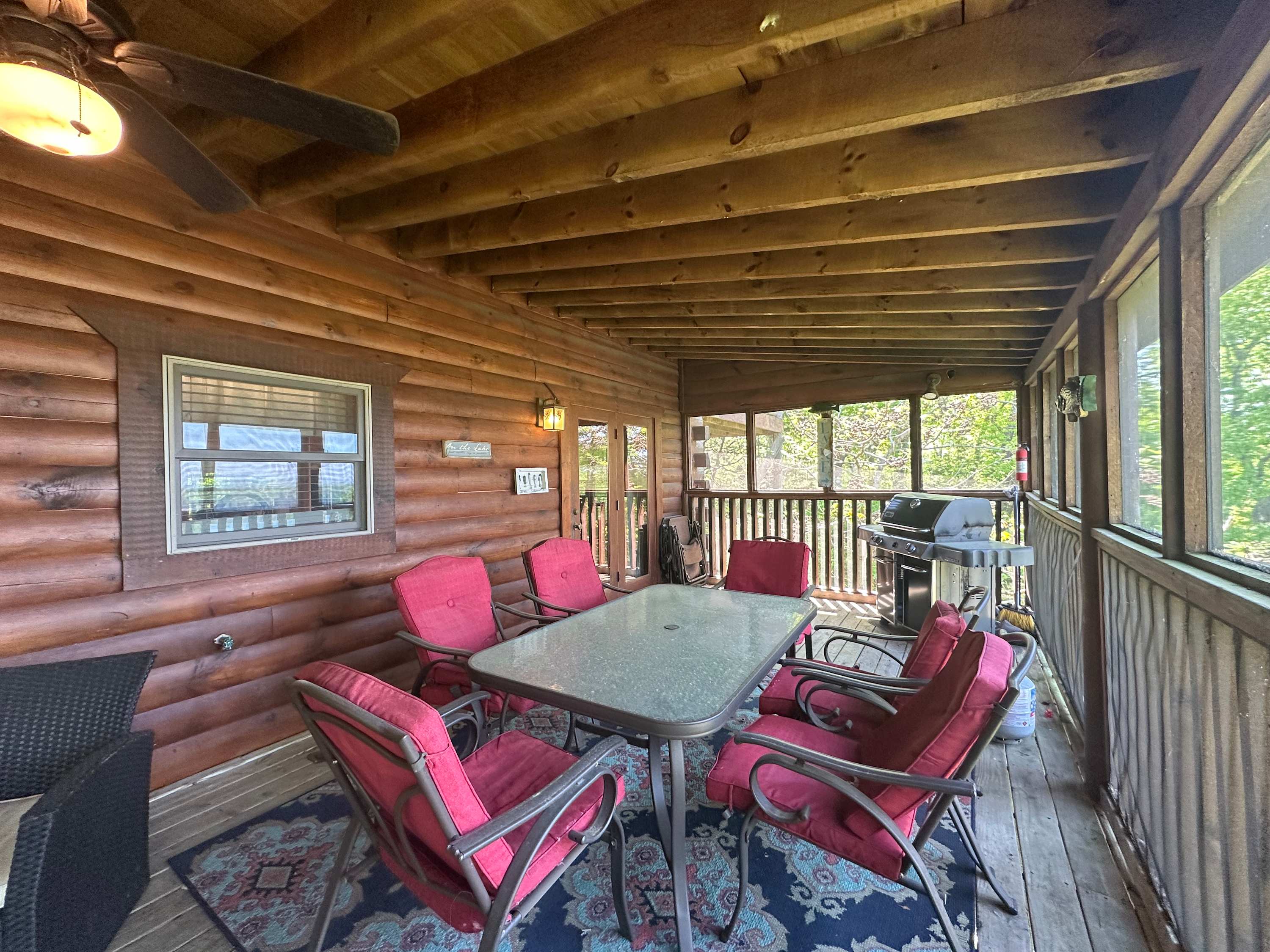 Settle into a comfortable, group-friendly cabin with 5 private bedrooms, multiple ensuite baths, a loft, and a lower-level game room. The main living areas give you room to relax and reconnect, with a kitchen and dining space for shared meals. Head outside to enjoy the fresh mountain air on the deck with outdoor seating, fire up the BBQ grill, or unwind by the fire pit. Soak in the private hot tub and take in the peaceful setting and water views.