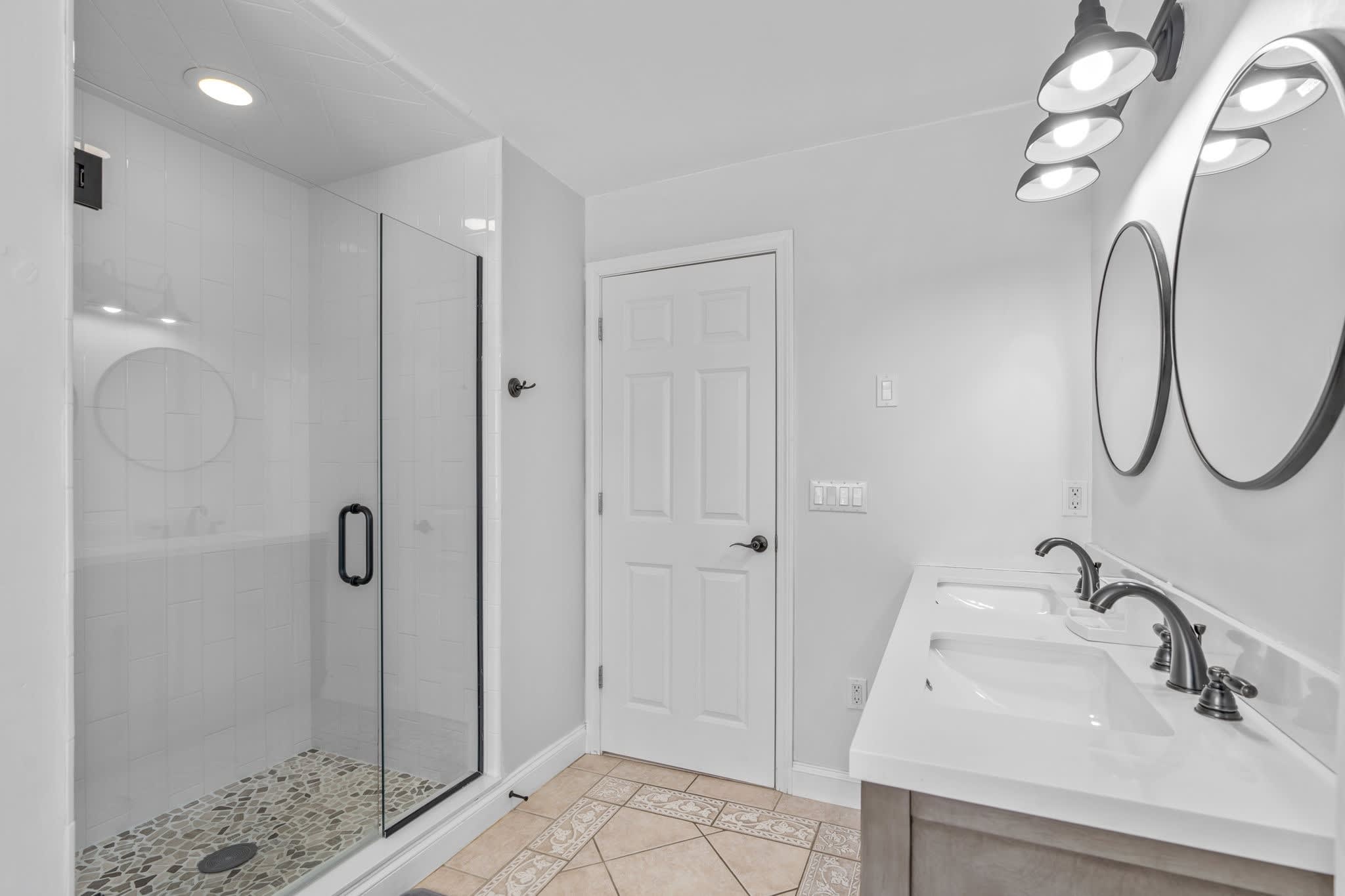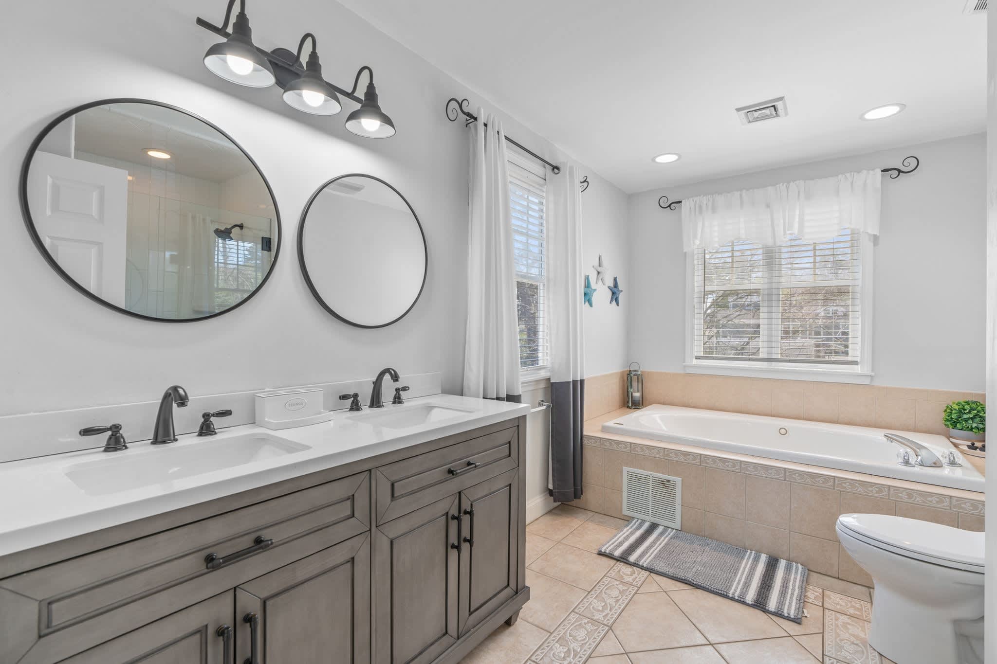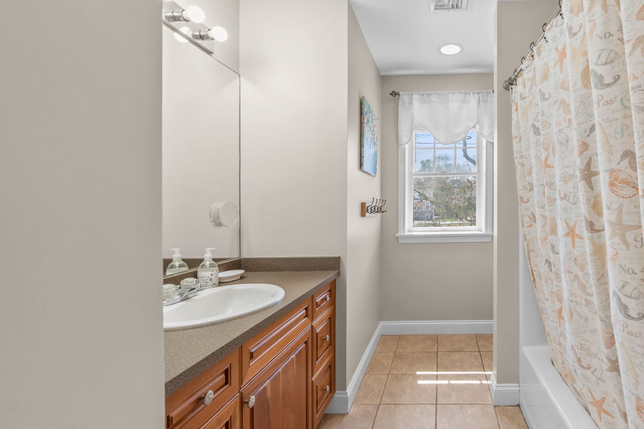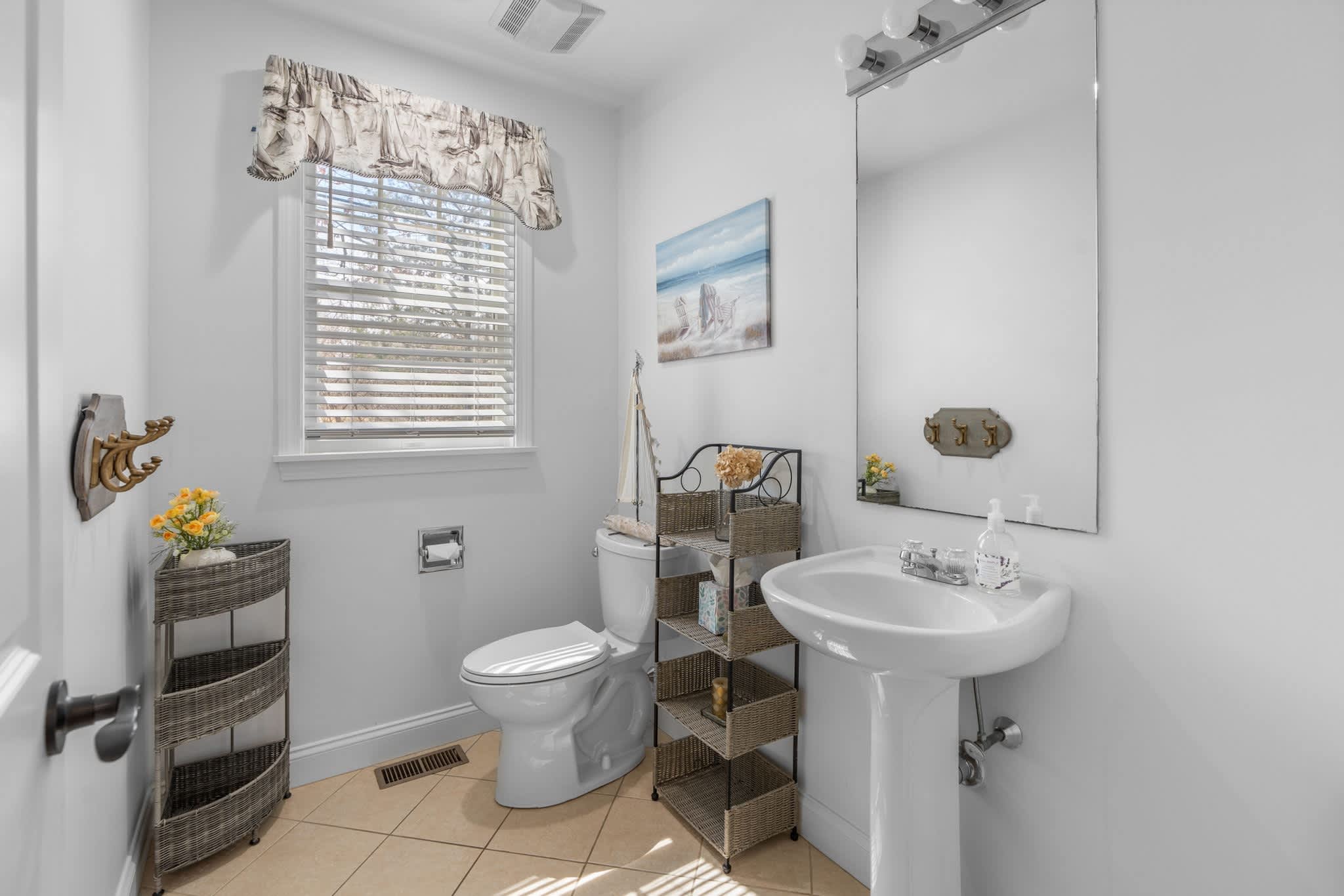 This home also includes a half bathroom and an additional full bathroom with a single vanity and a shower/tub combo.