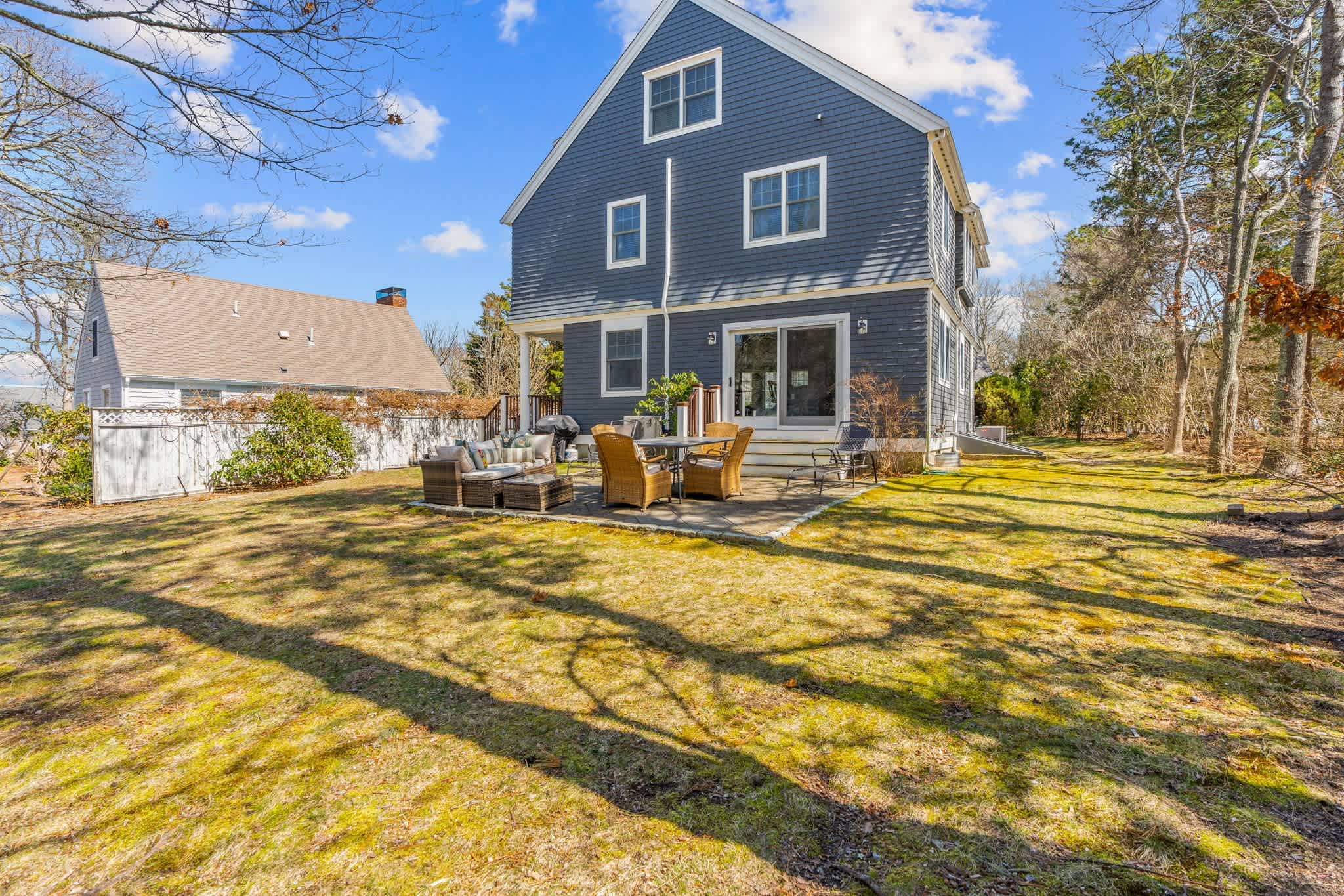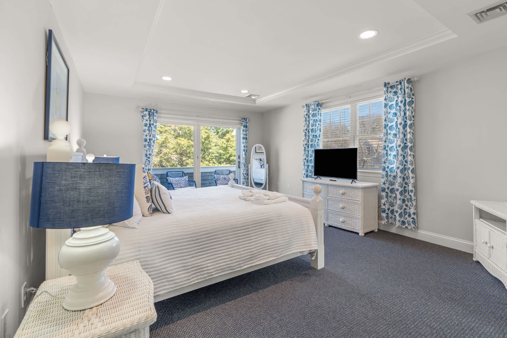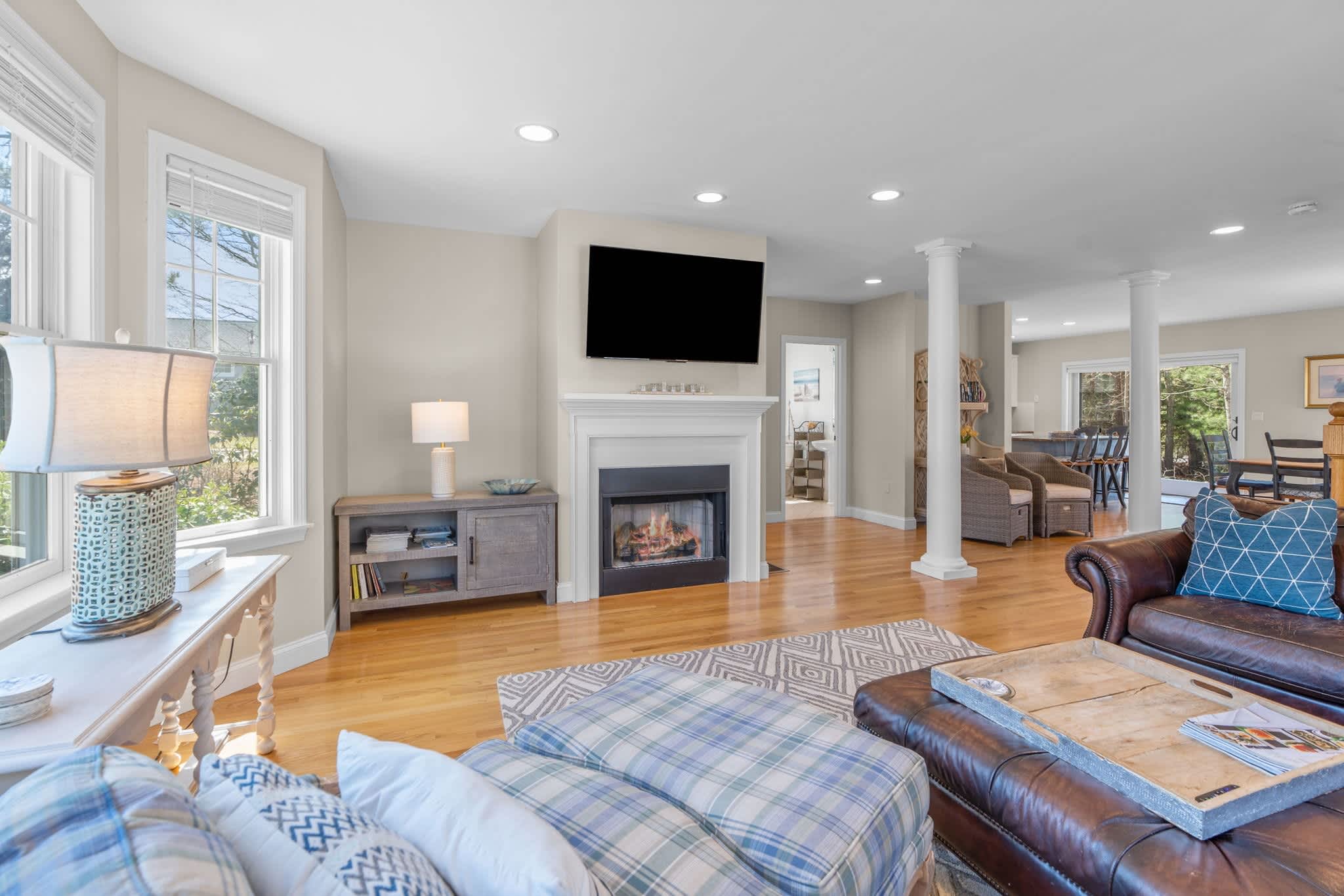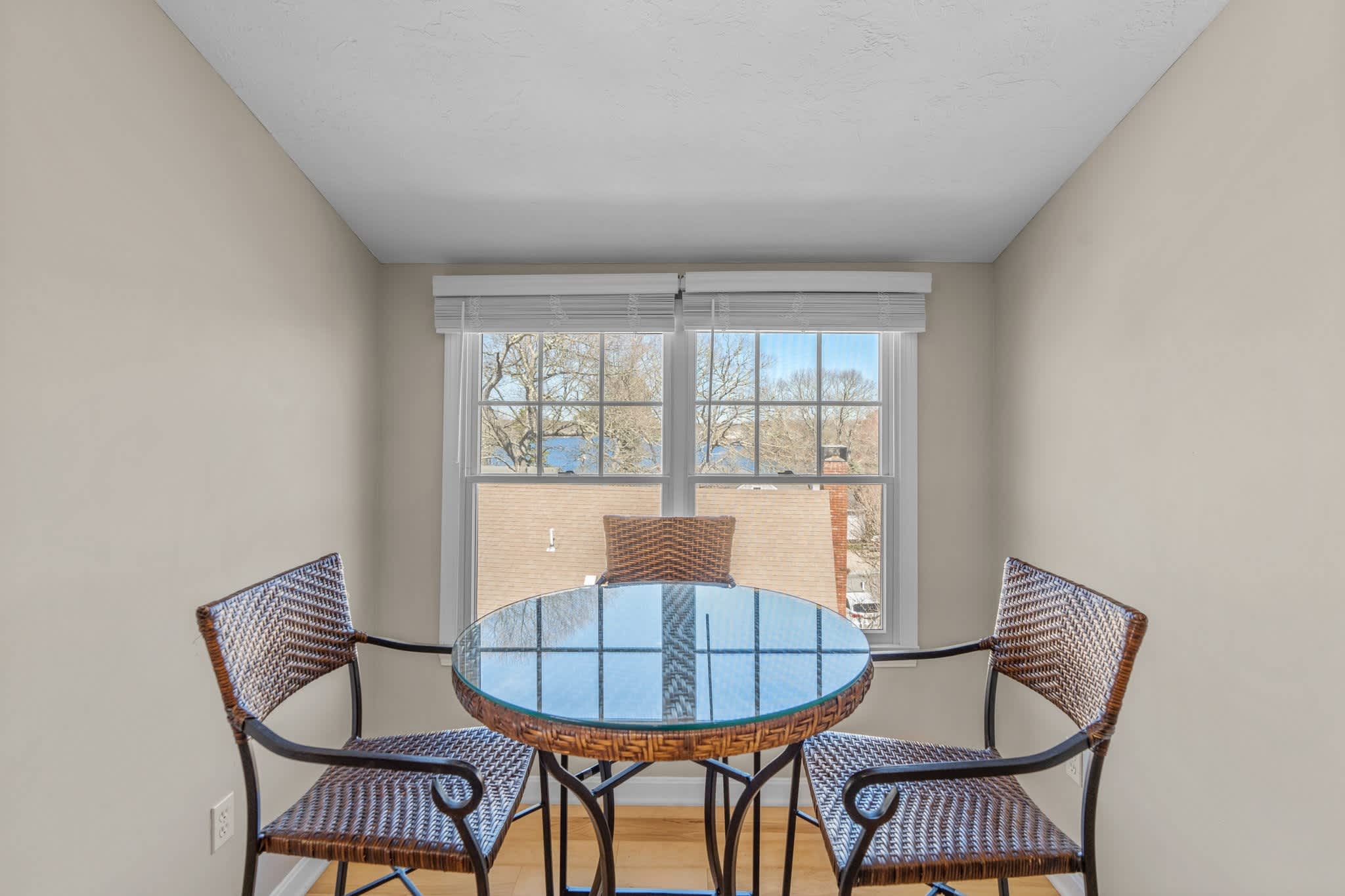 As you move through Summer by the Sea, the comforts continue. Step out to the patio, where seating and a table for four invite al fresco meals or quiet moments with your morning coffee. When it's time to unwind or have fun indoors, head up to the third-floor game room. This cozy retreat boasts two plush couches, a comfy armchair, a smart TV, and a board game table—ideal for evening competitions or relaxing with a view. And speaking of views, the expansive window offers a beautiful look out over a tranquil lake, reminding you at every turn that you’re surrounded by the natural beauty of Cape Cod.