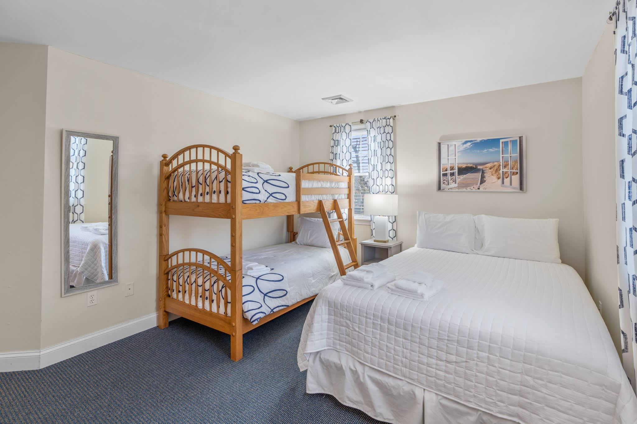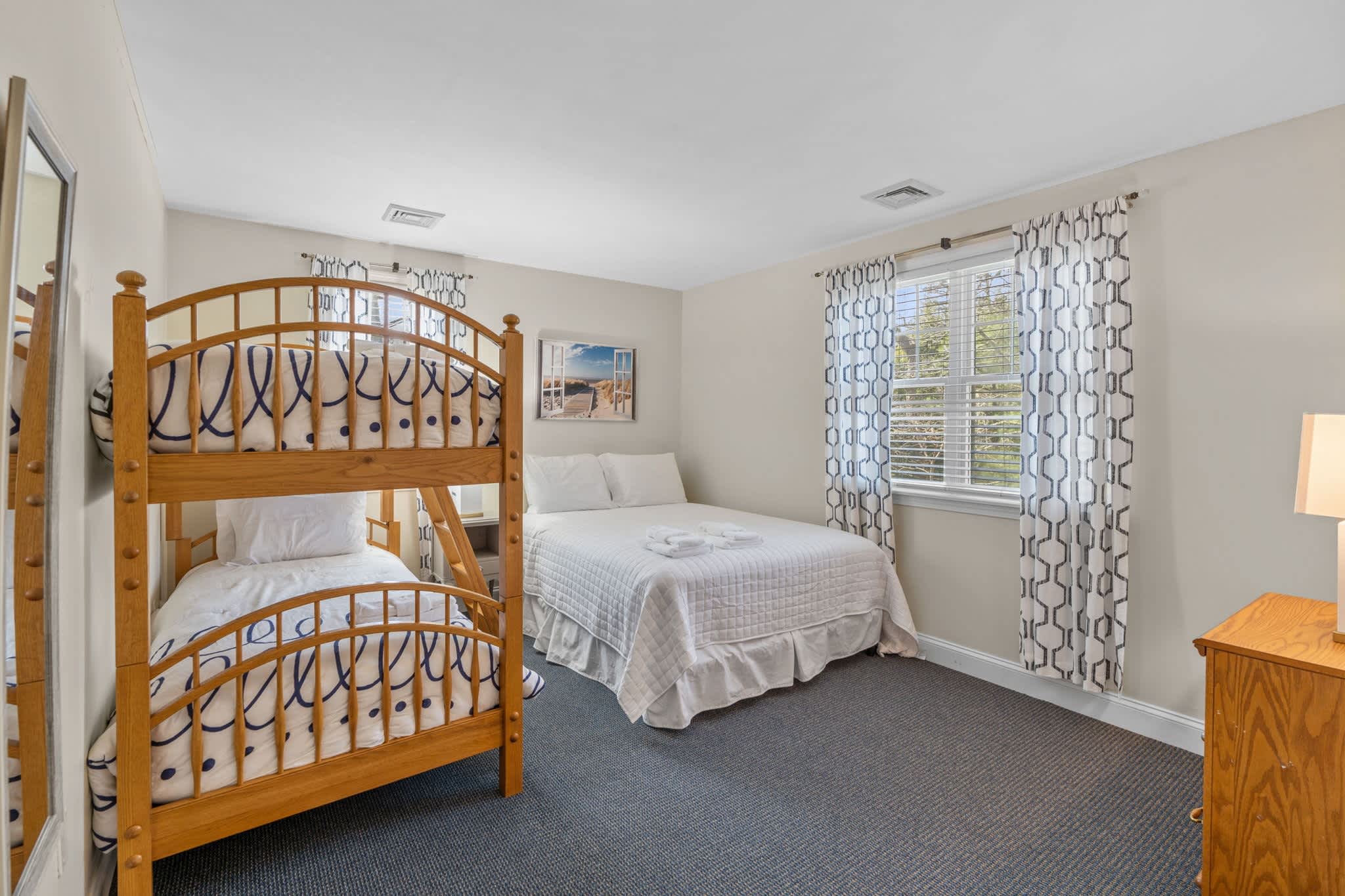 Bedroom #3 includes a queen size bed and twin-over-twin bunk beds.