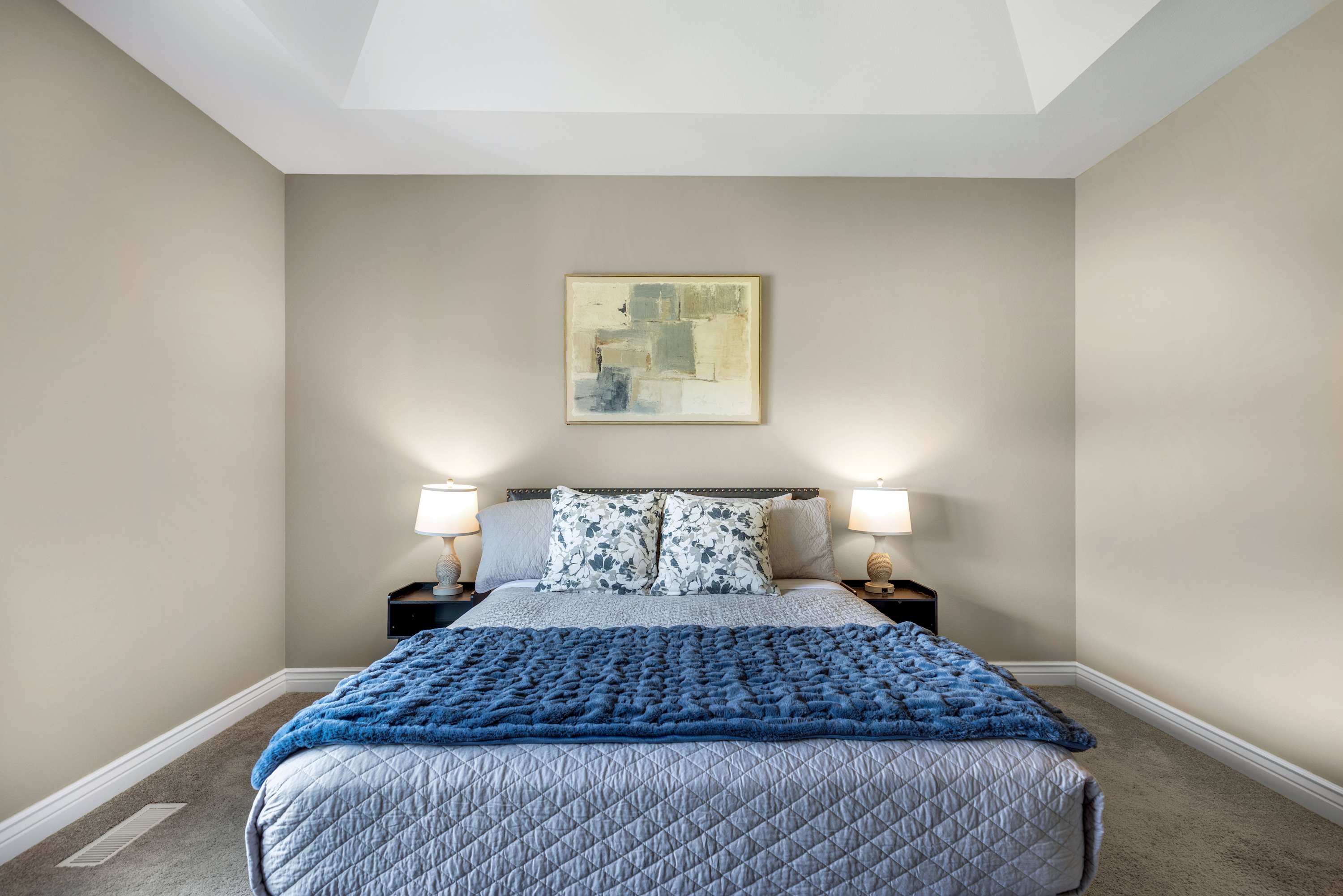 Bedroom #1 includes a queen size bed and an ensuite bathroom with a dual vanity, a soaking tub, and a walk-in shower.