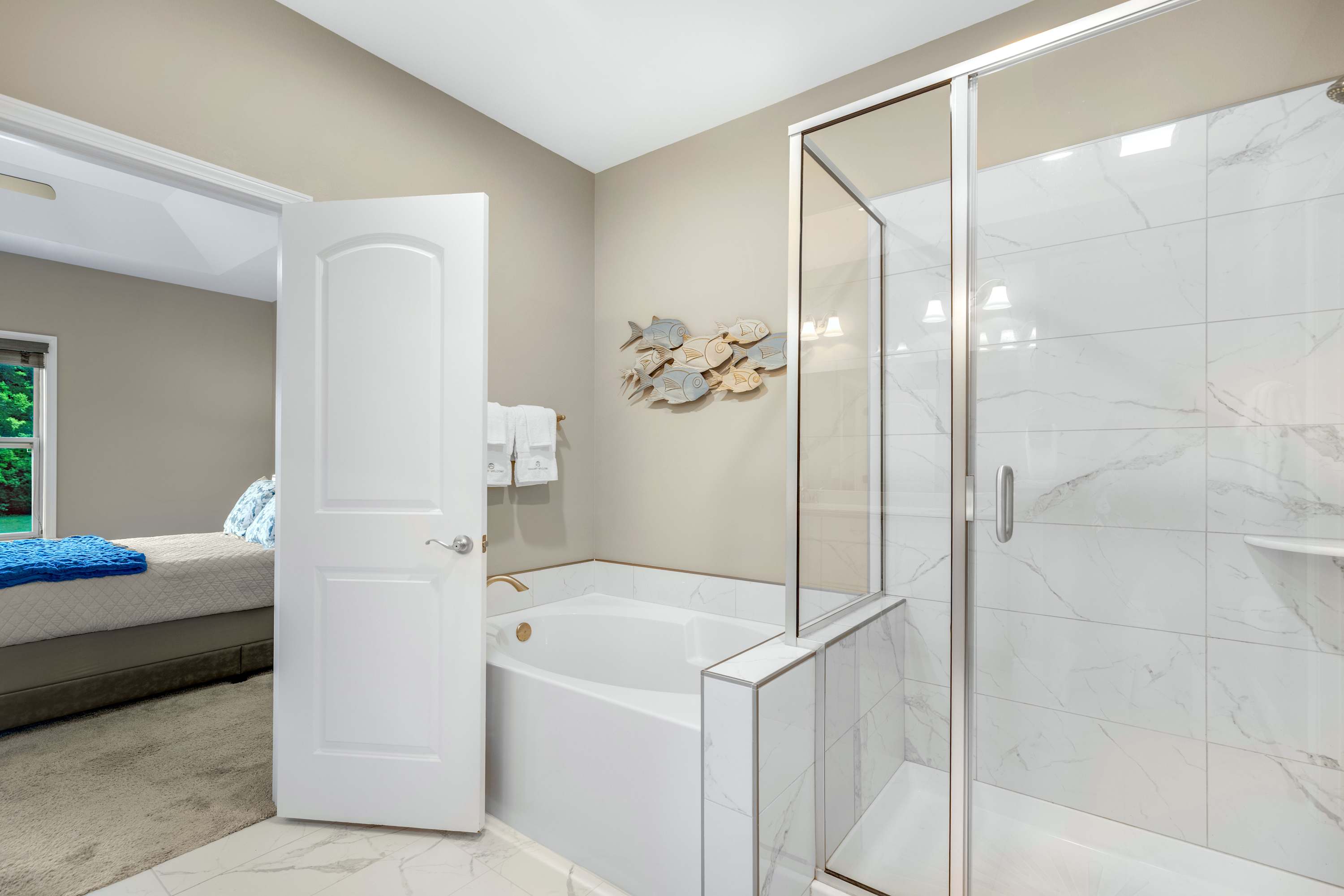 This home also includes 2 additional full bathrooms, both with a single vanity and a shower/tub combo.