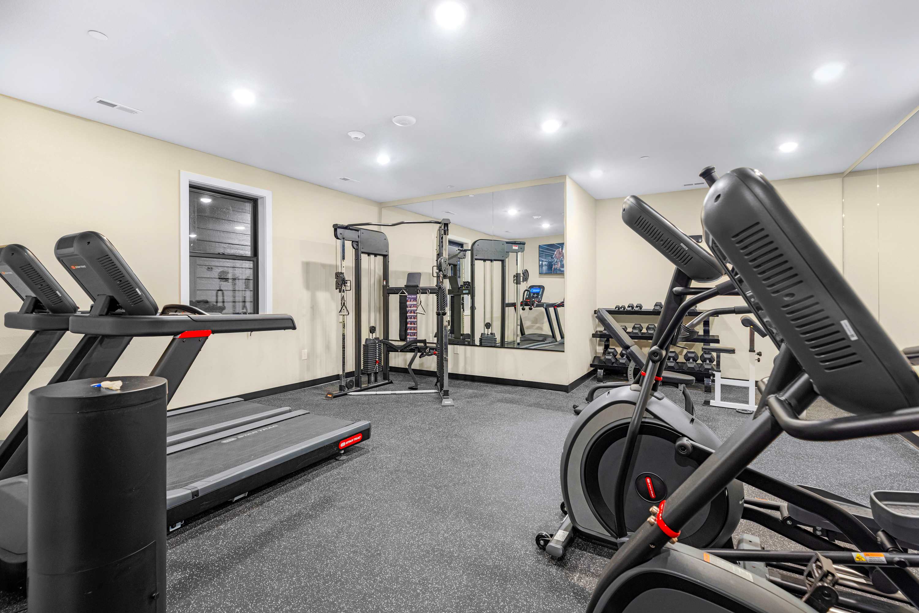 • Community amenities: pool, hot tub, gym, meeting room, commercial ice machine, gas grills, pizza oven, and fire pit.