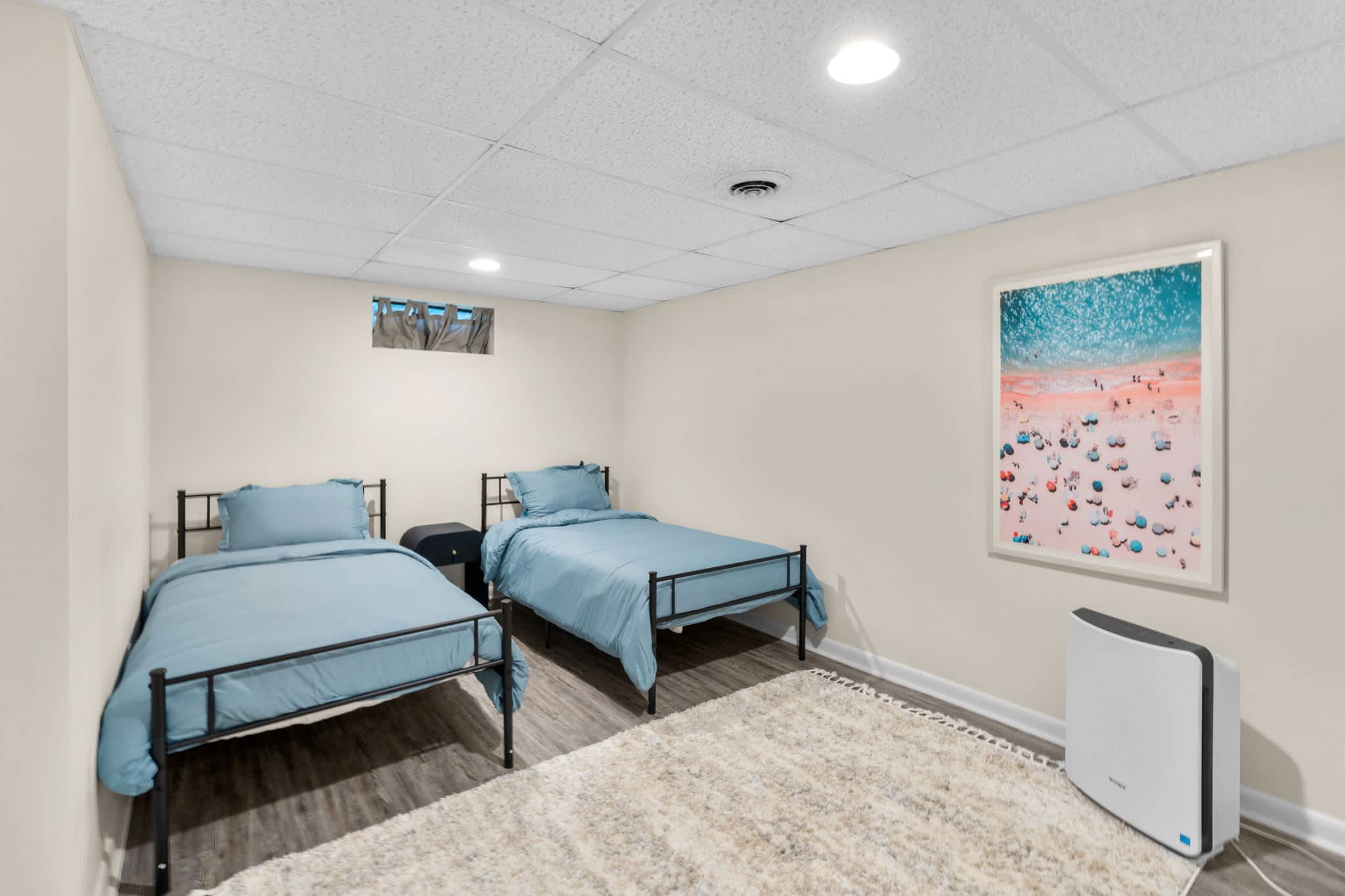 This home comfortably sleeps 6 guests between 3 private bedrooms and two bonus sleeping areas in the basement, one with with 2 twin size beds and the other with a queen size bed.