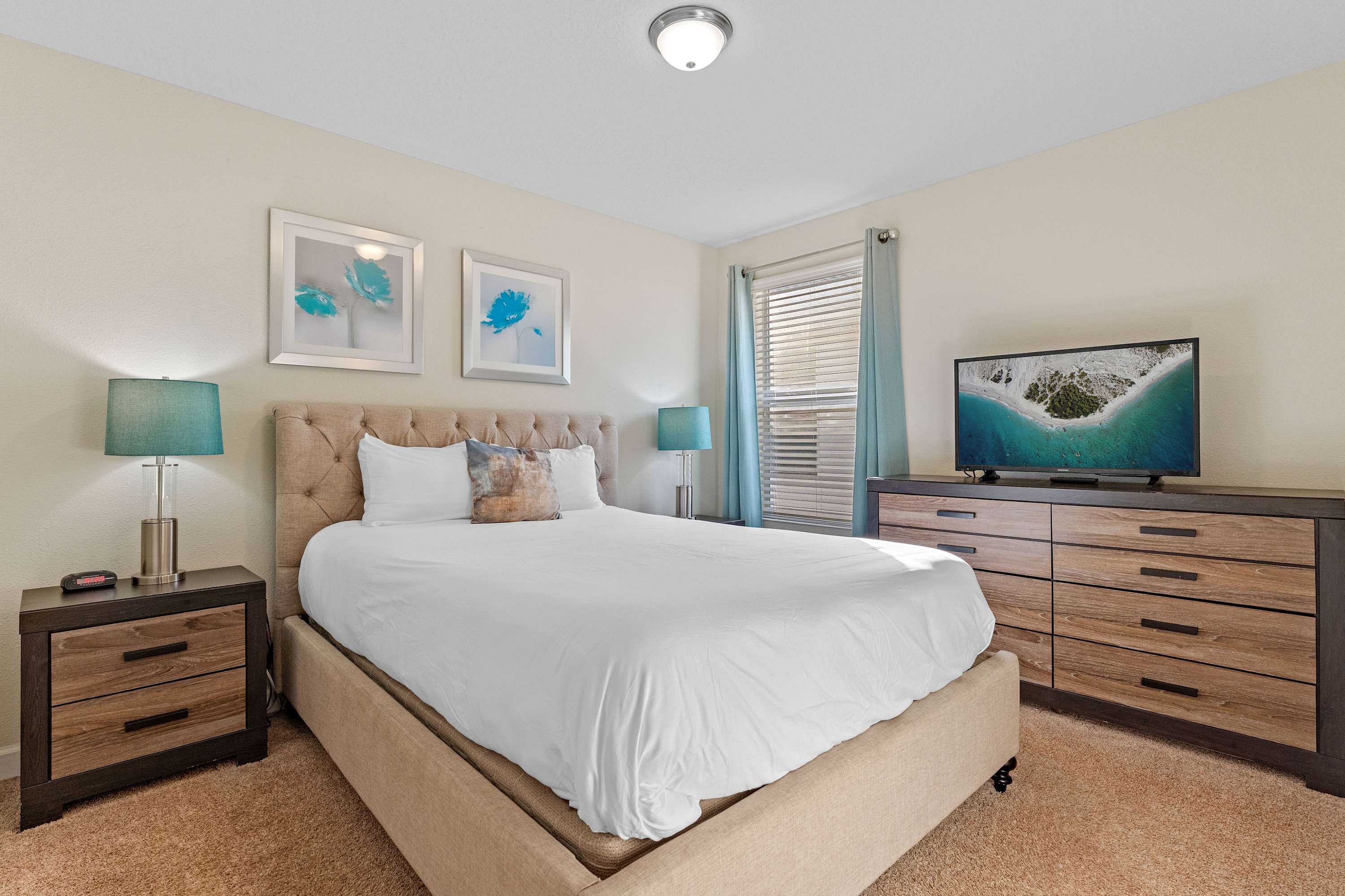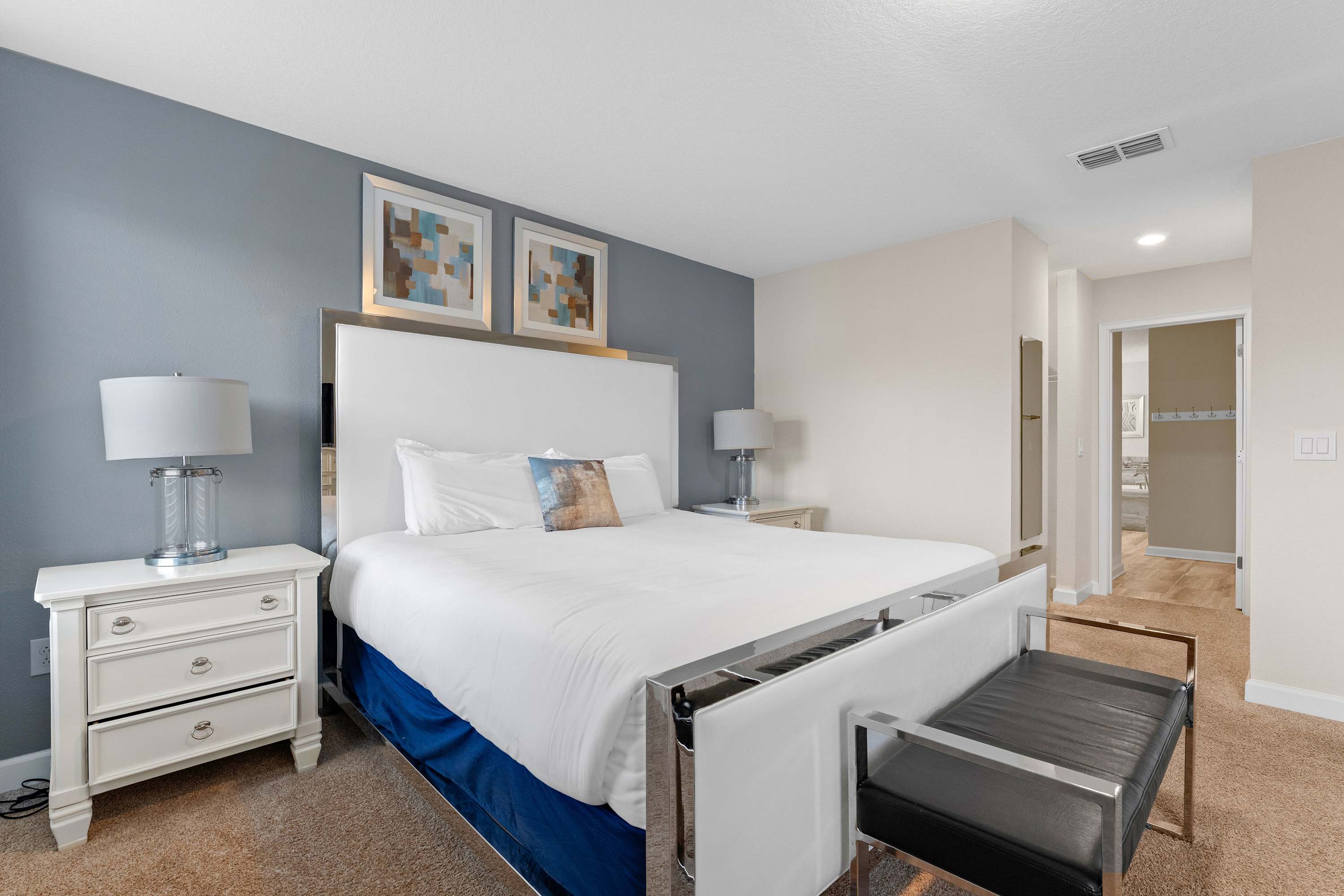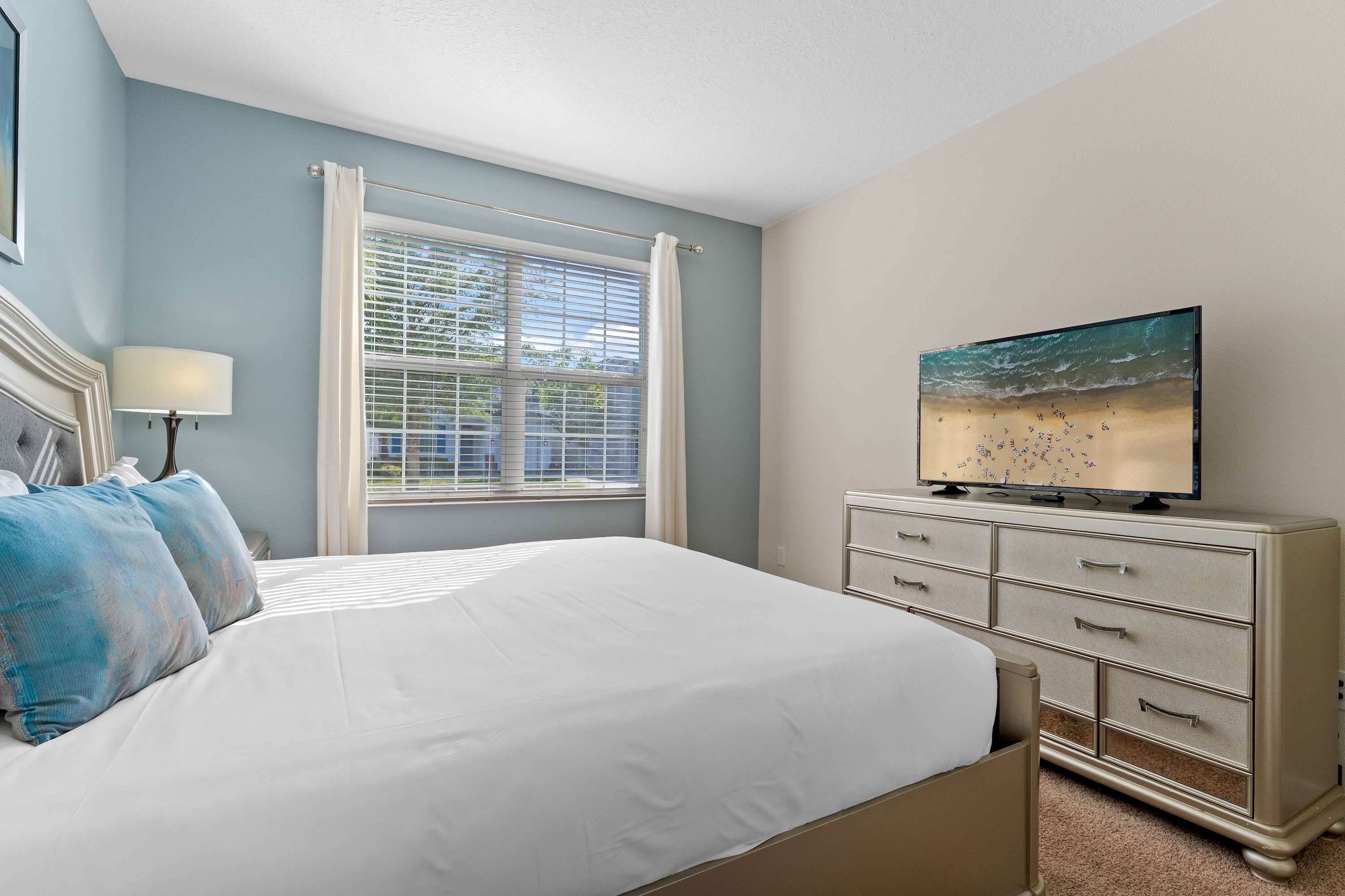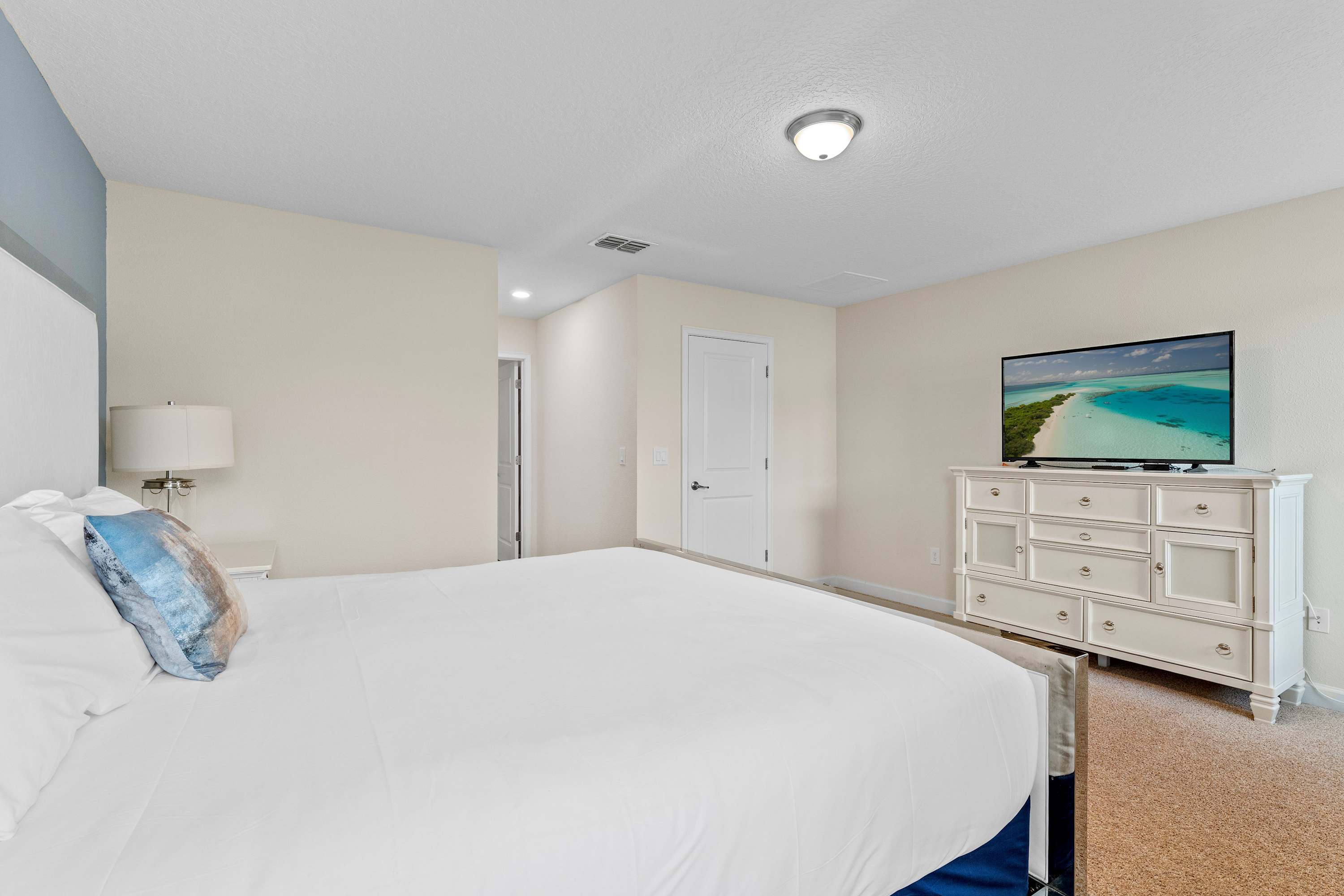 Bedroom #1 includes a king size bed and a TV.