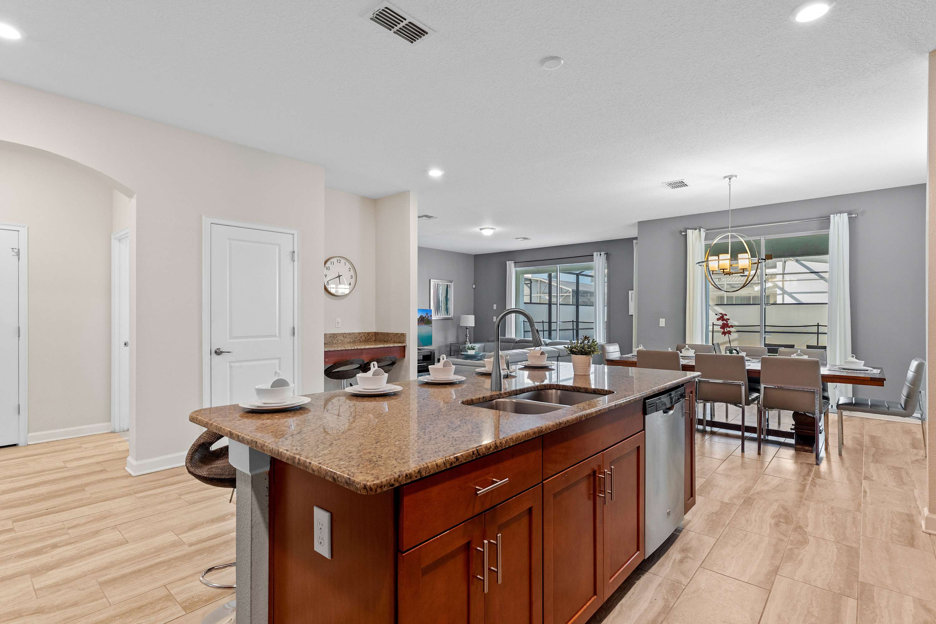 This home is advantageously located with several nearby options for dining and shopping. You’ll enjoy staying just minutes from world-renowned attractions, beautiful beaches, and challenging golf courses. The major Florida attractions are also just a skip-and-a-jump away: Magic Kingdom (7.5 miles), Epcot (7.5 miles), Hollywood Studios (7 miles), Animal Kingdom (8.5 miles), Universal Studios (14.5 miles), Legoland (35 miles), Margaritaville Resort Orlando (3.5 miles), and SeaWorld (10.5 miles)!