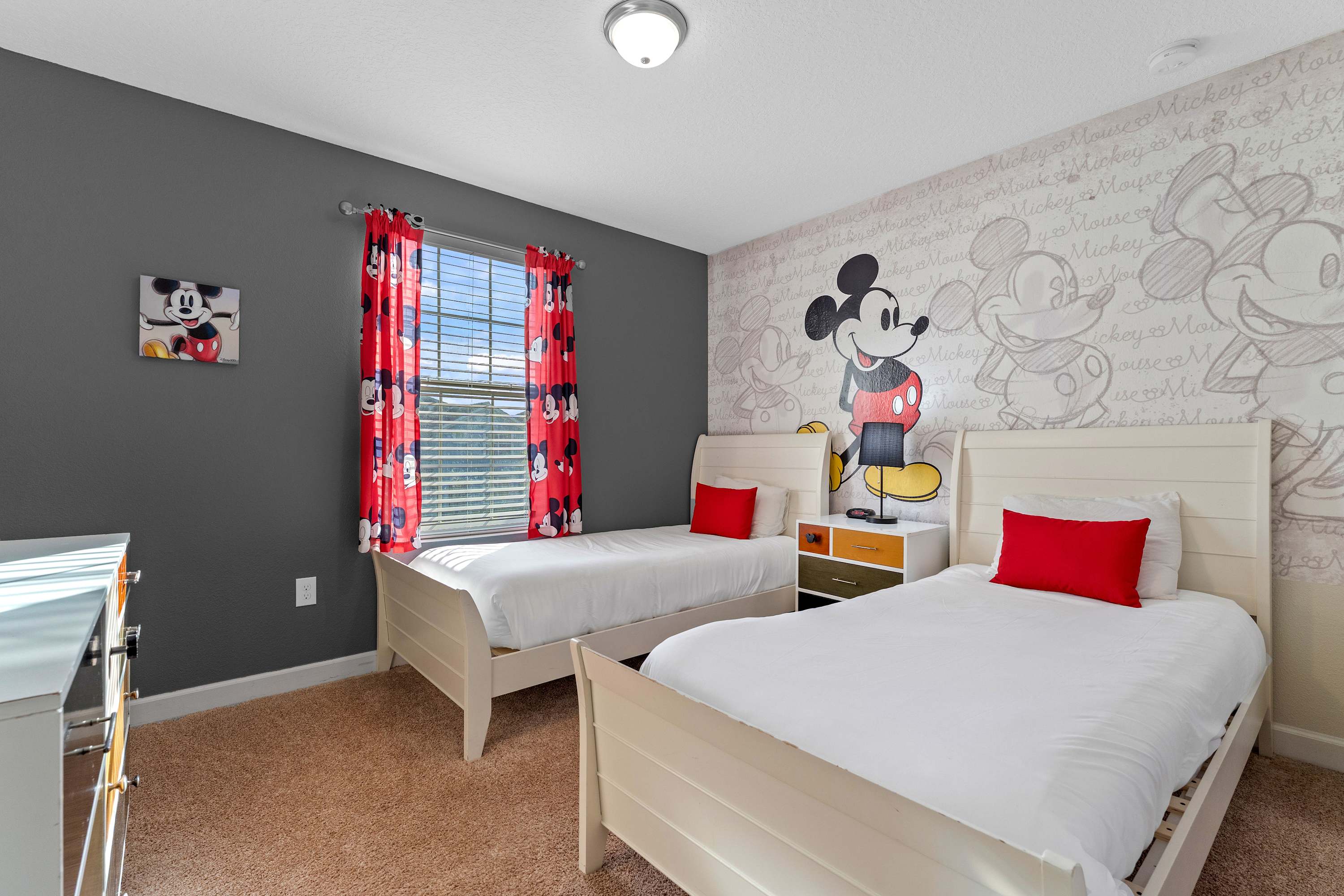 Bedroom #5 is Mickey-themed and includes 2 twin size beds and a TV.