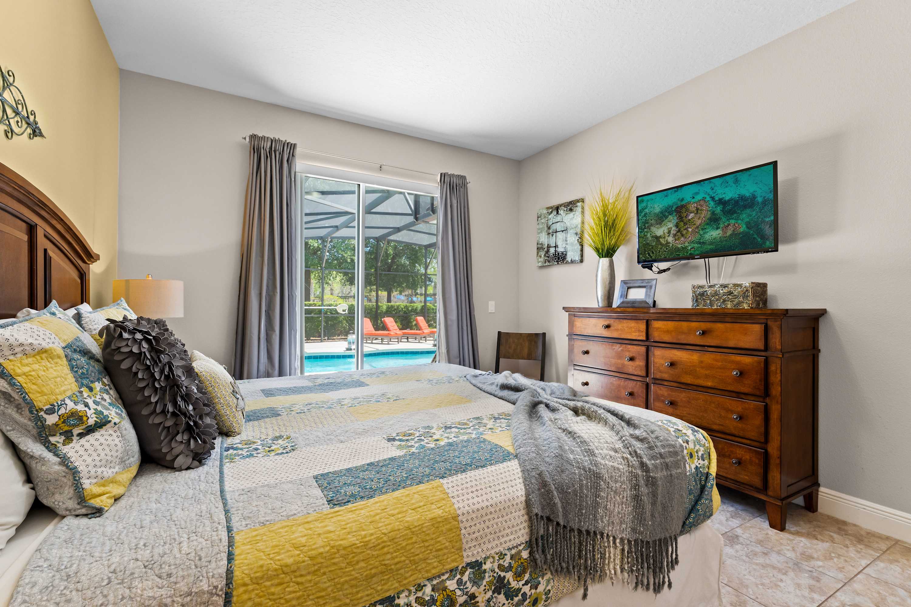 Bedroom #5 includes a queen size bed and a smart TV.