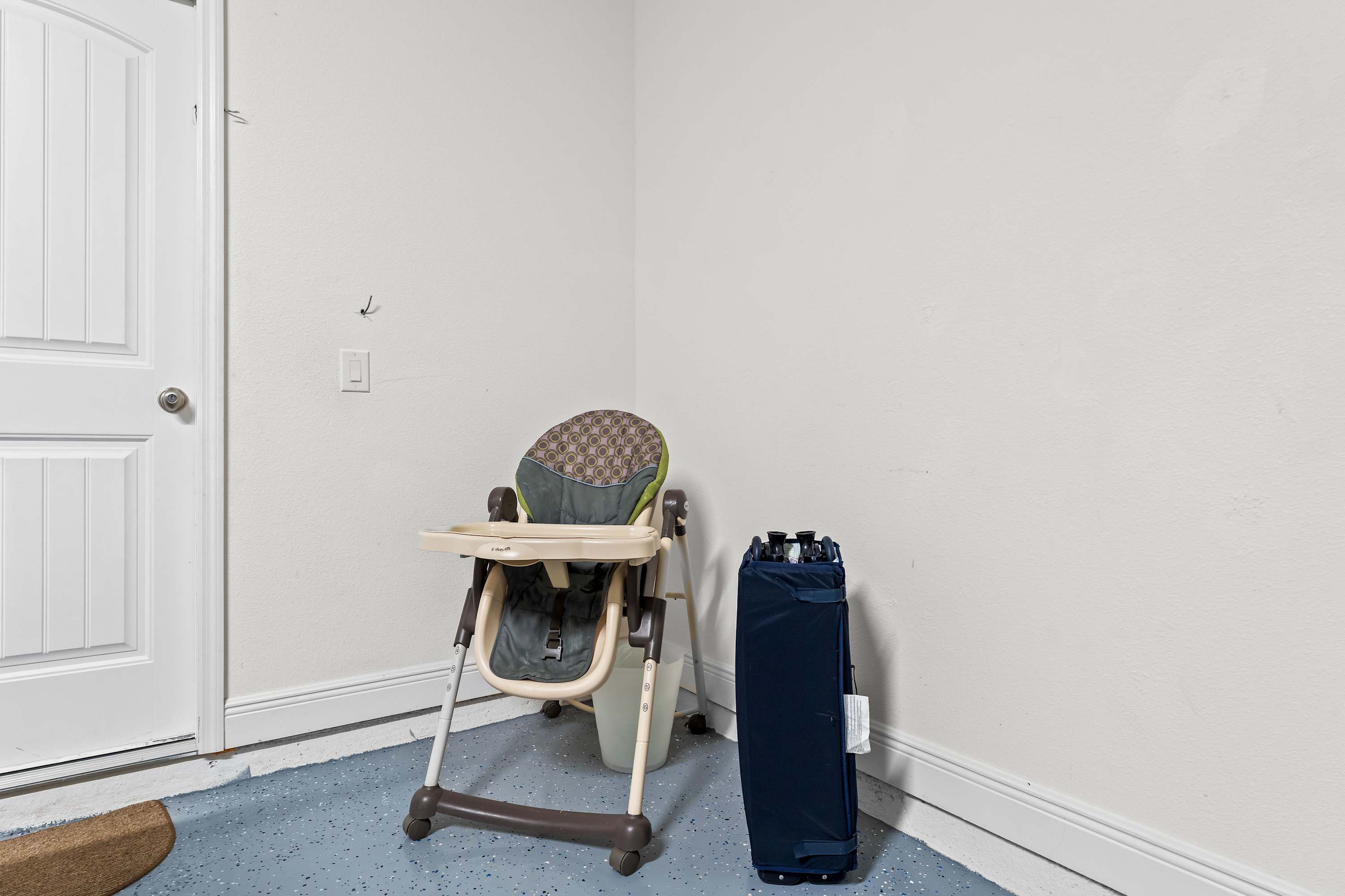 • High chair and portable crib provided.