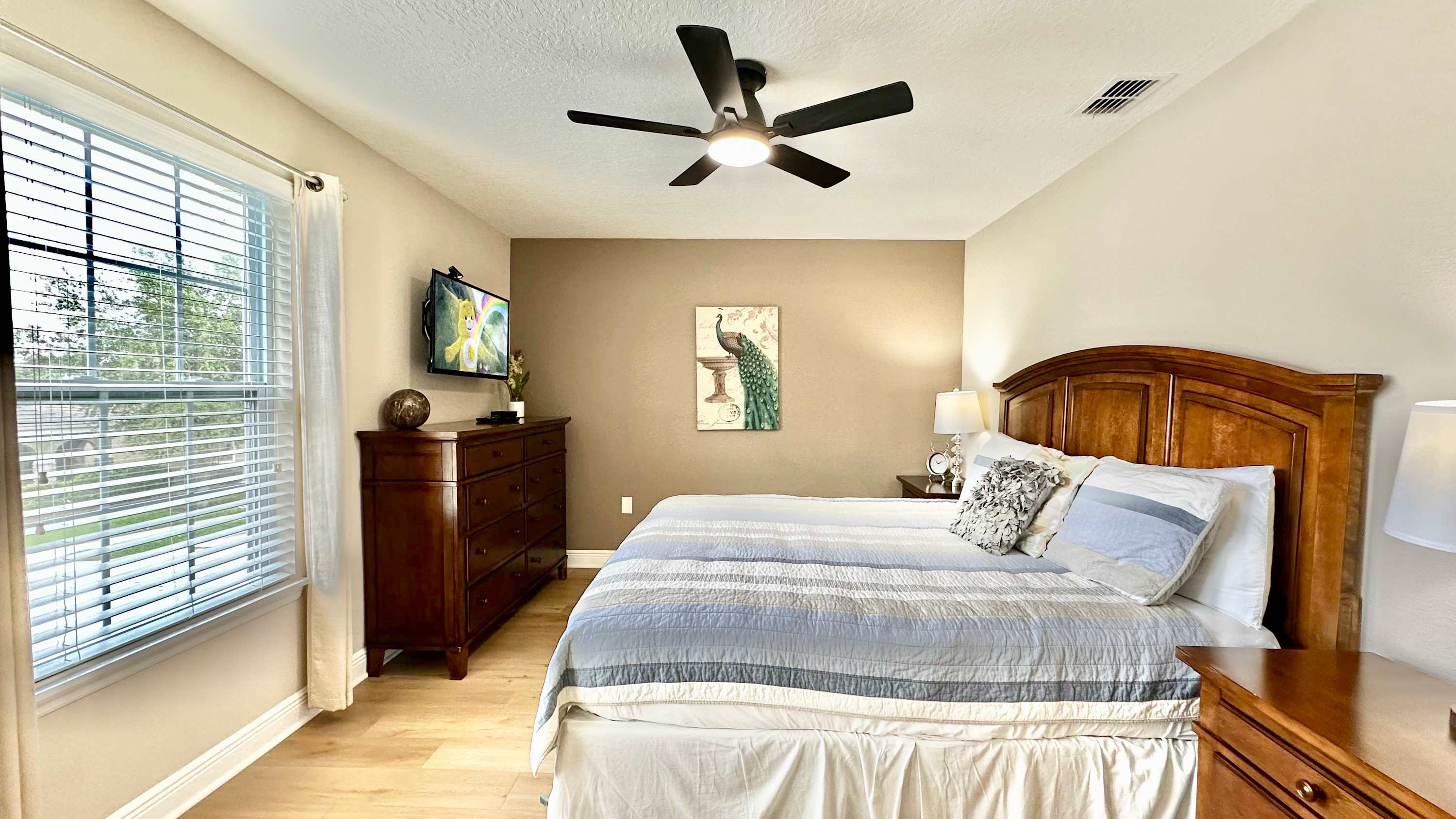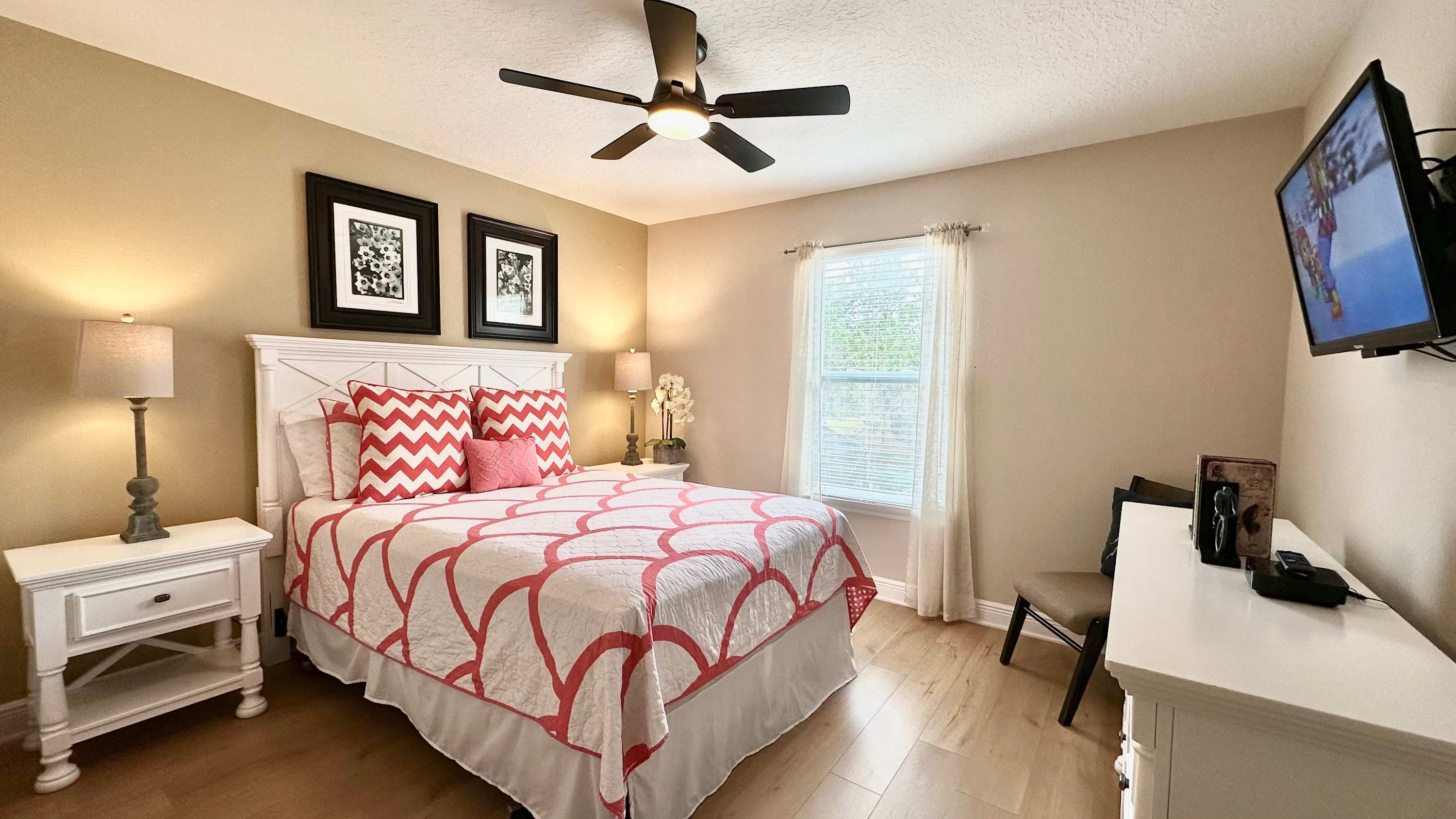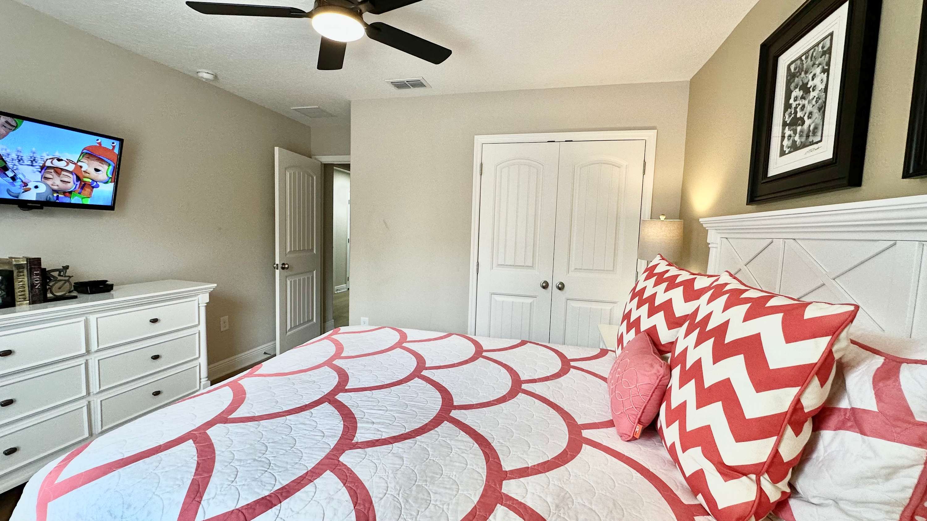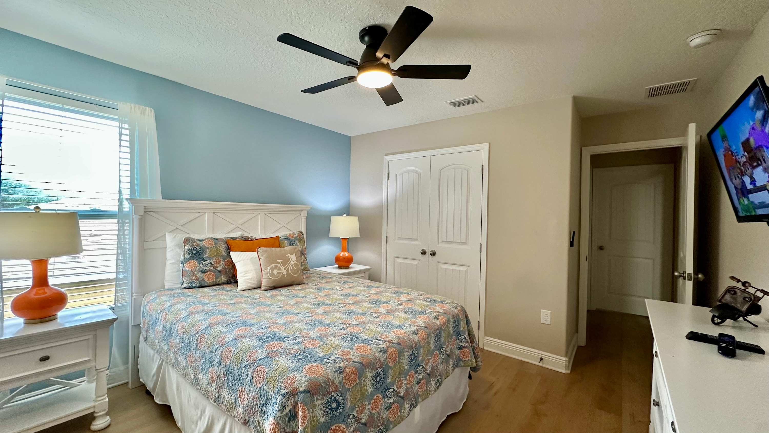 Bedroom #4 includes a queen size bed and a smart TV.