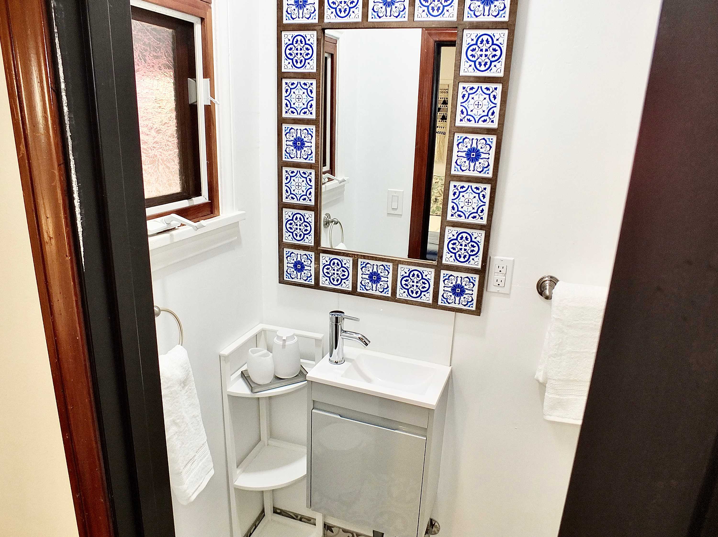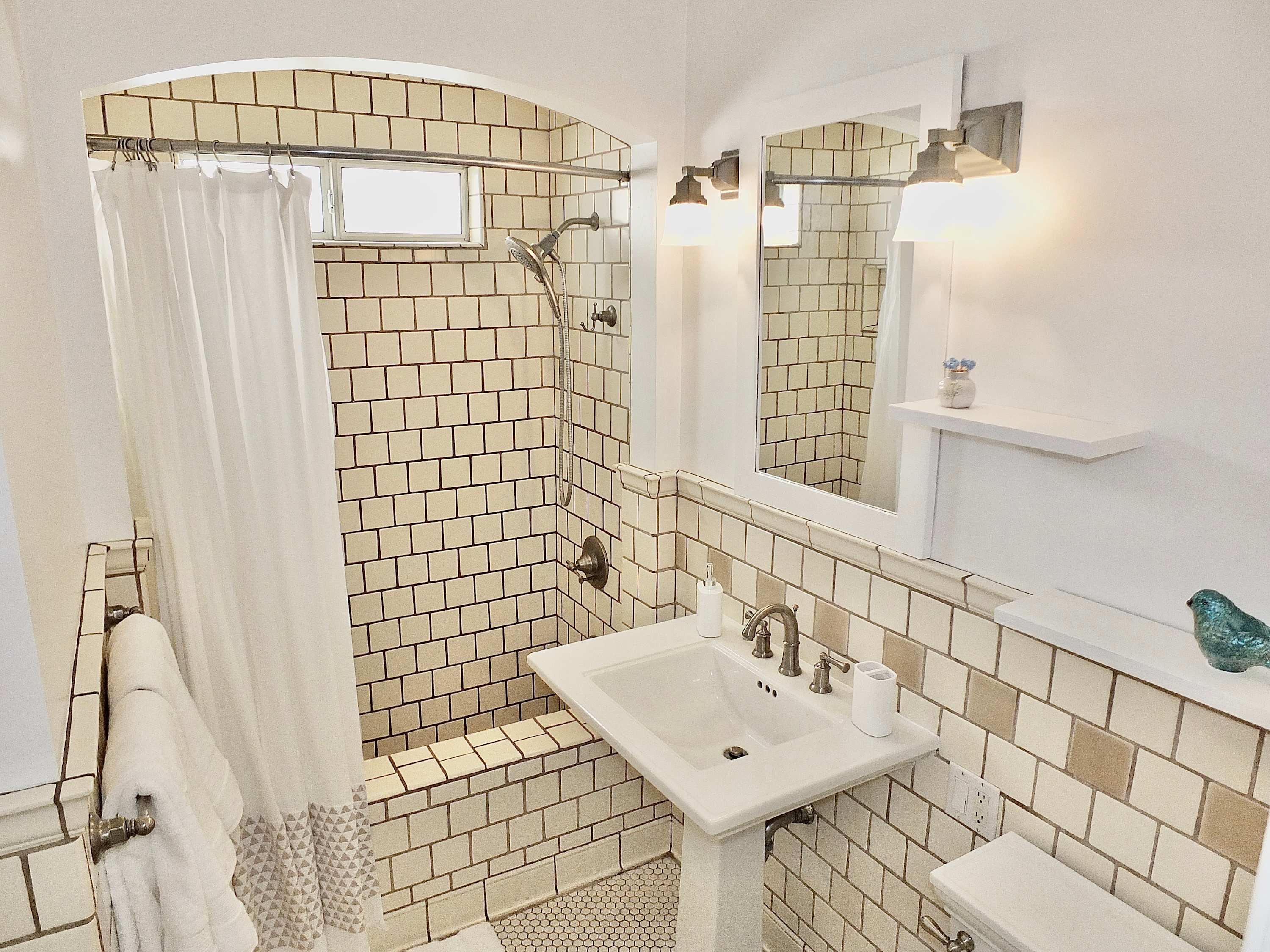 This home also includes a full bathroom with a single vanity and a walk-in shower.