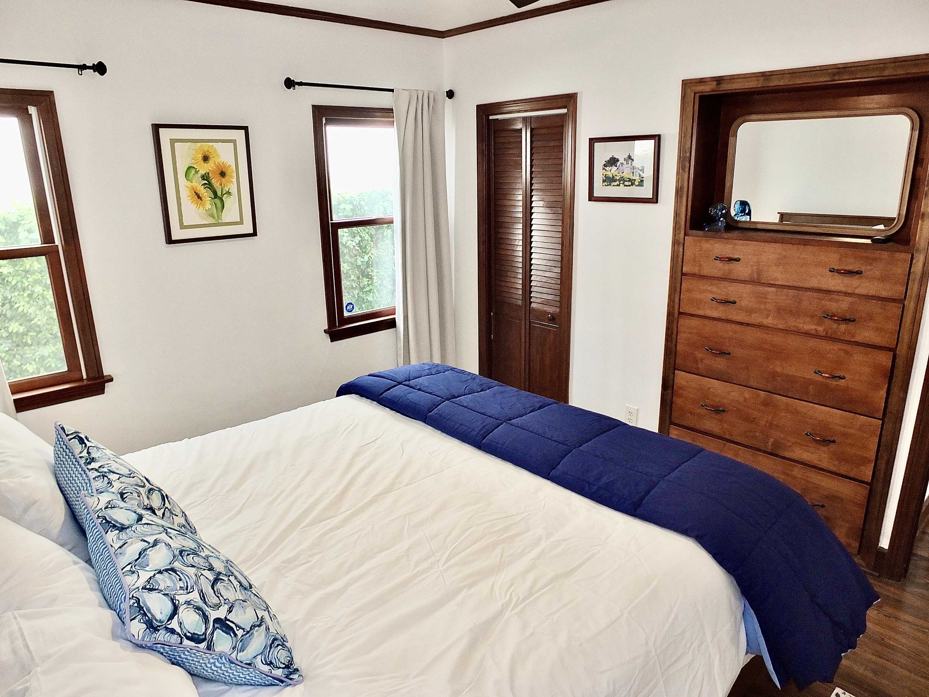 Head outside to the charming back patio, where a table for four and a grill await for alfresco meals under the stars. Beach essentials like towels, chairs, and umbrellas are provided, making your days in the sand effortless. Whether you're here to soak up the sun, explore the local scene, or simply unwind in a beautiful and well-appointed home, Belmont Shore Coastal Cottage offers the perfect balance of comfort, convenience, and coastal charm. Book your stay now and start living the Long Beach lifestyle.