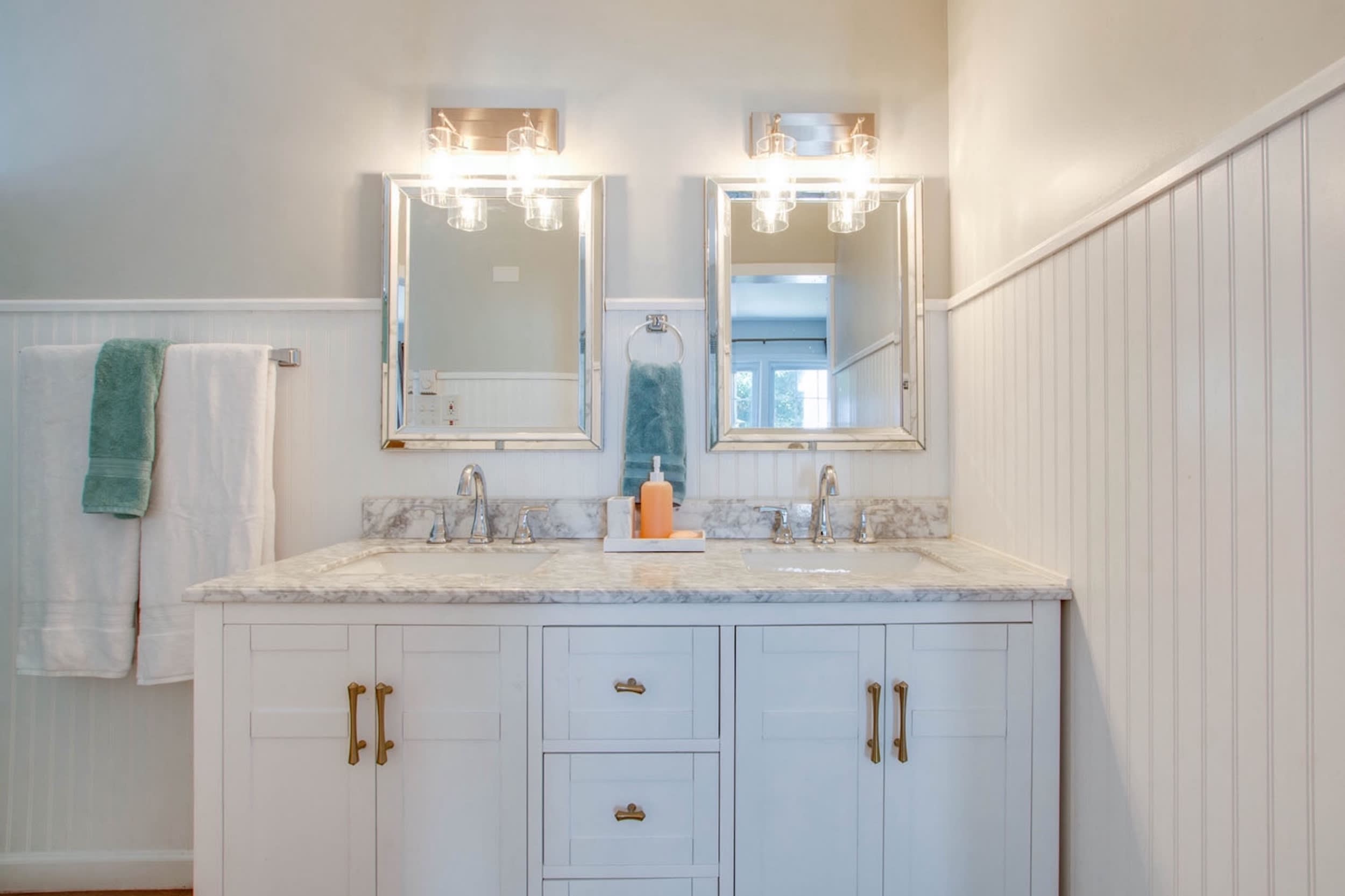 Bedroom #3 includes a king size bed, a smart TV, and an ensuite bathroom with a dual vanity and a shower/tub combo.