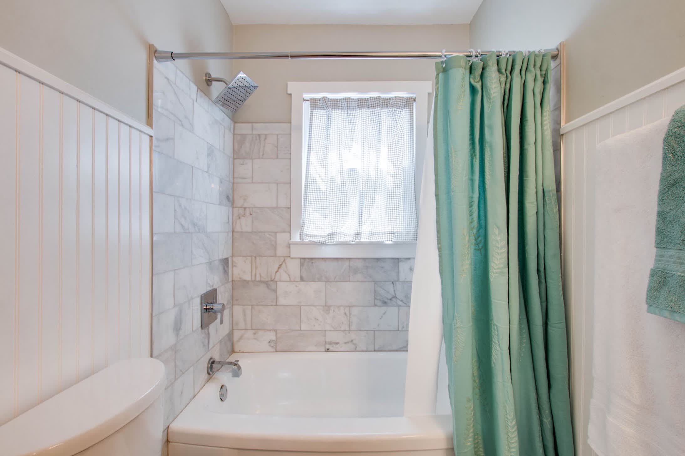This home also includes a full bathroom with a single vanity and a shower/tub combo.
