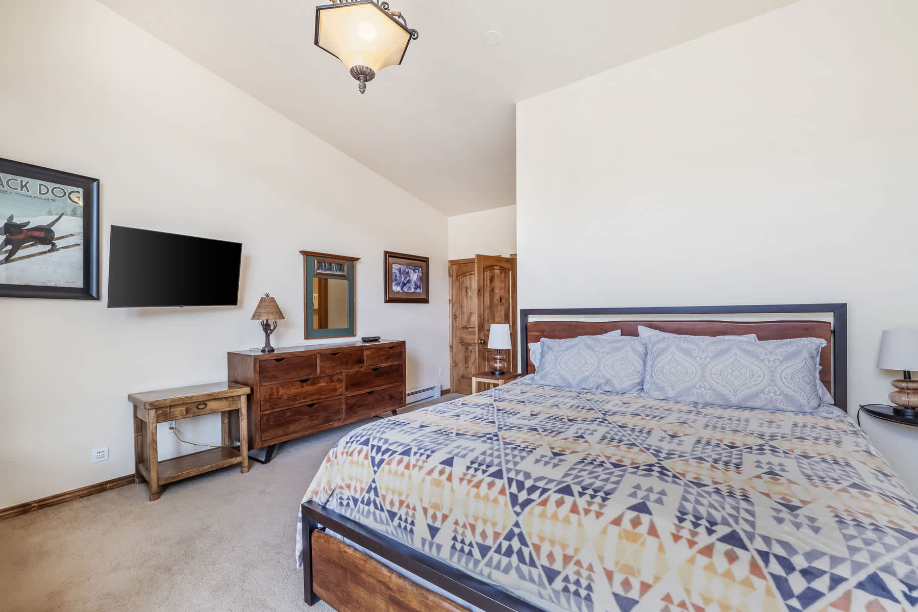 Bedroom #3 includes a king size bed and a smart TV and a full ensuite bathroom with a single vanity and shower/tub combo (second floor).