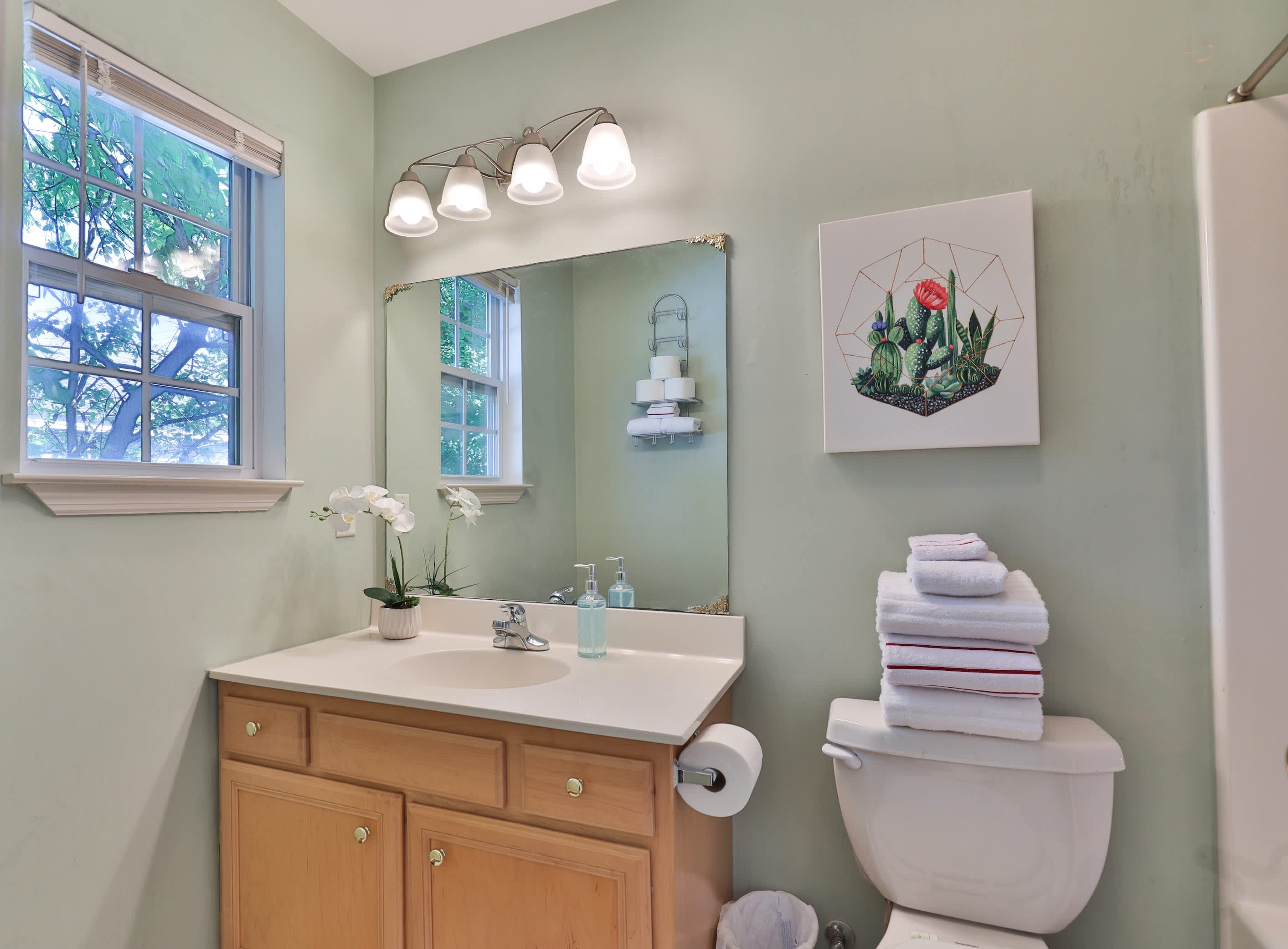 This home also includes a full bathroom with a single vanity and a shower/tub combo.