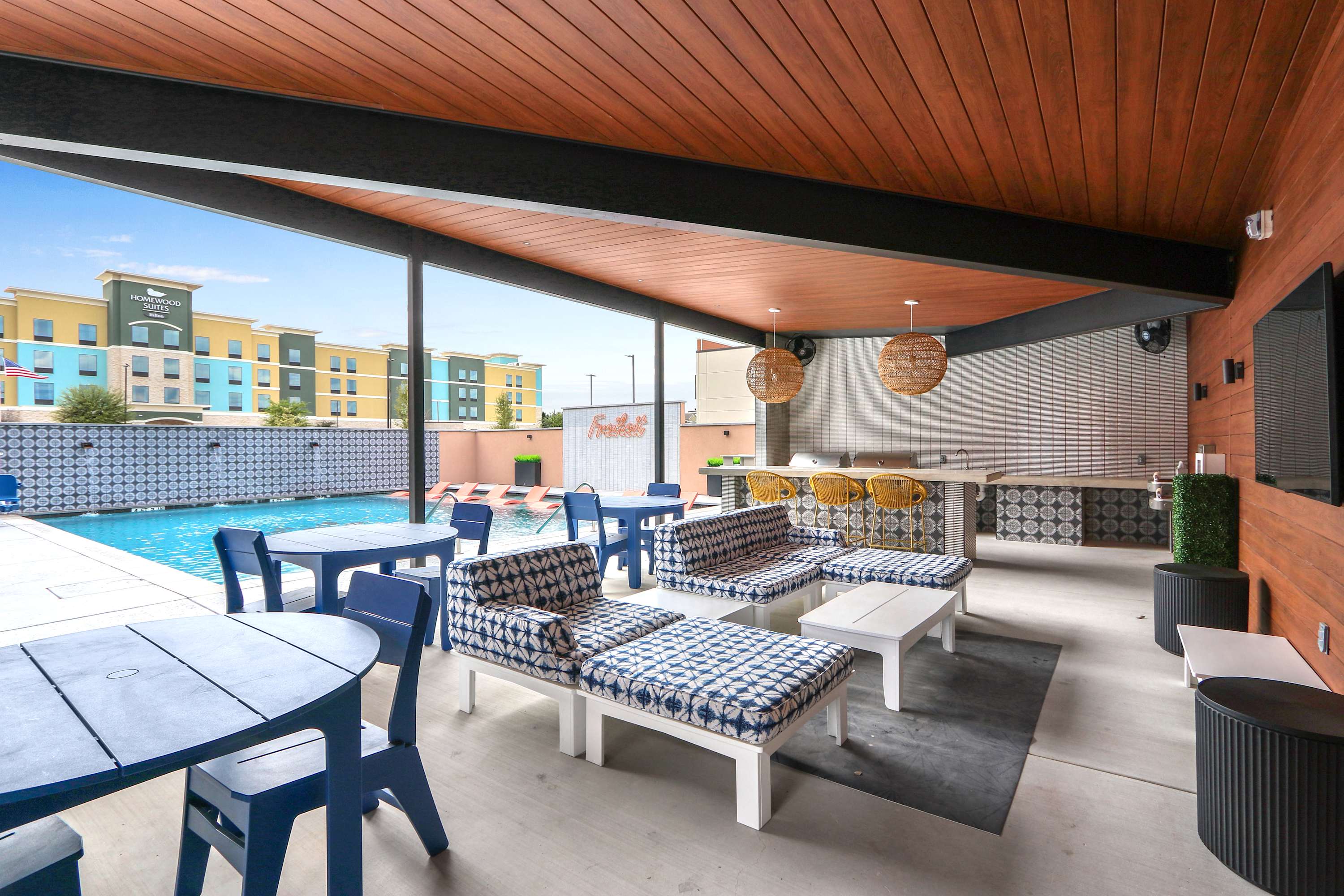 Welcome to Creekside Modern at The Mercer in New Braunfels, a stylish resort-style community in the heart of Freiheit Village. From the moment you arrive, you’ll feel like you’re on vacation every day. Lounge by the pool, grill with friends at the outdoor entertainment area, or play a few games before unwinding in the covered lounge. The gated community also offers a private dog run for your furry friend, all within walking distance of local shops, restaurants, and entertainment.
