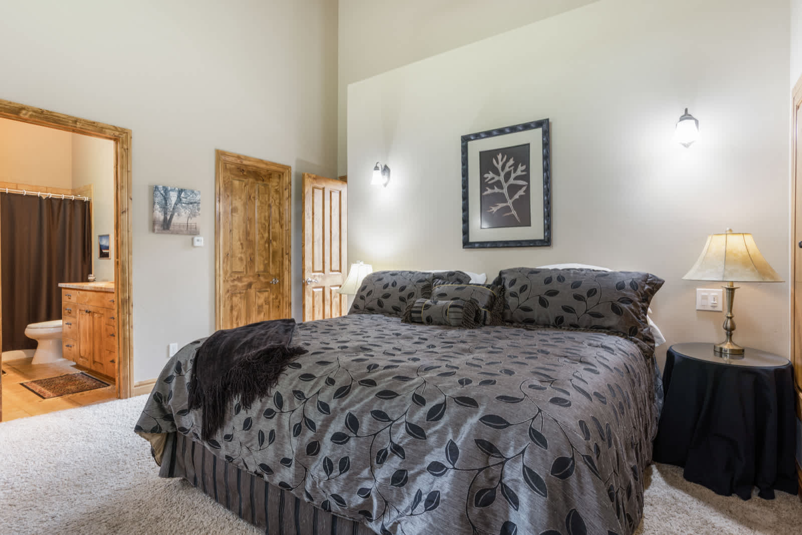 Bedroom #1 includes a king size bed and an ensuite bathroom with a dual vanity, a soaking tub, and a walk-in shower.