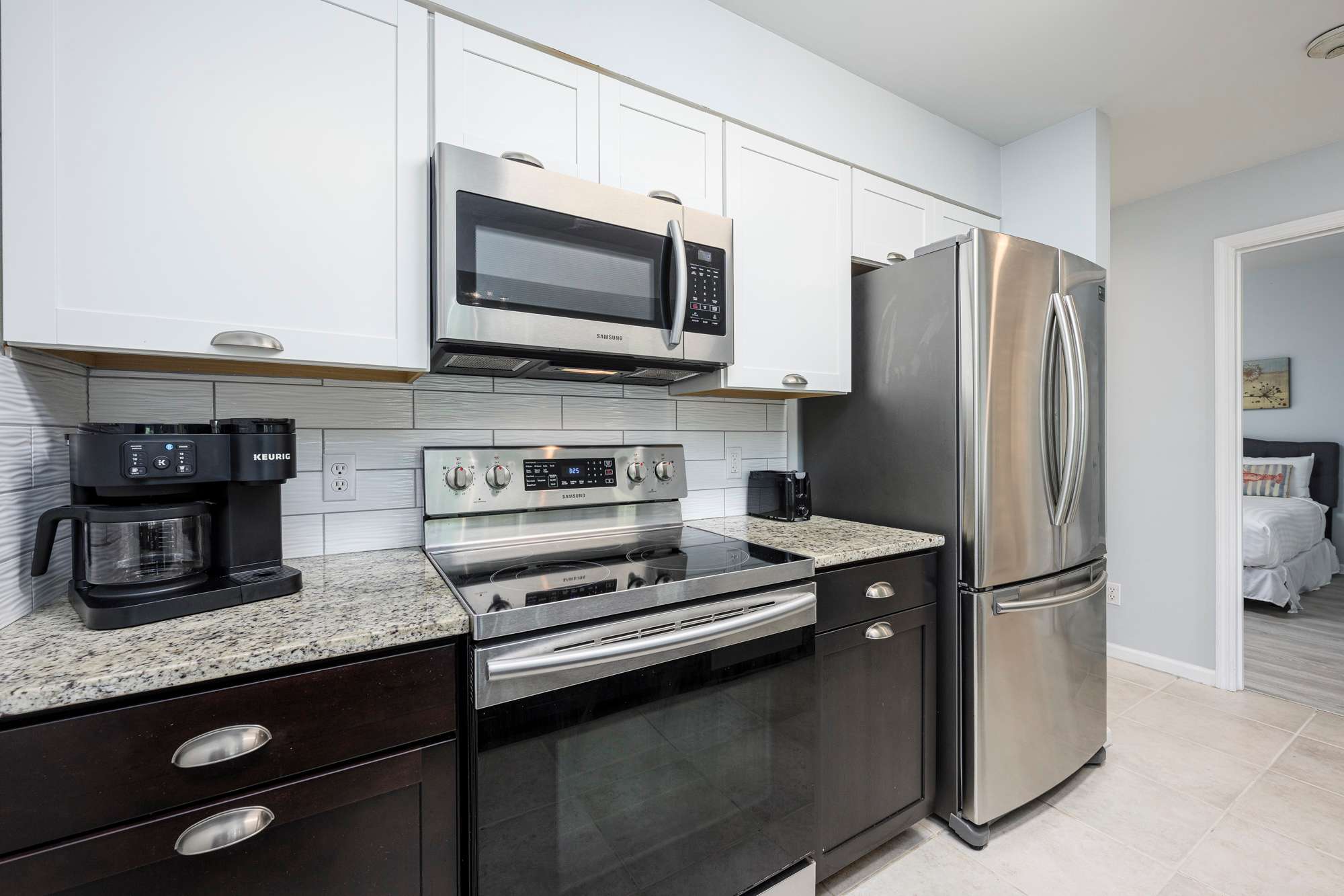 Guests have access to a community pool, perfect for cooling off or relaxing after a day at the beach. The on‑site fitness center makes it easy to stay active during your stay, and shared charcoal grills are available for outdoor cooking and casual meals. These amenities add comfort and flexibility, giving guests great options for both relaxation and recreation throughout their visit.