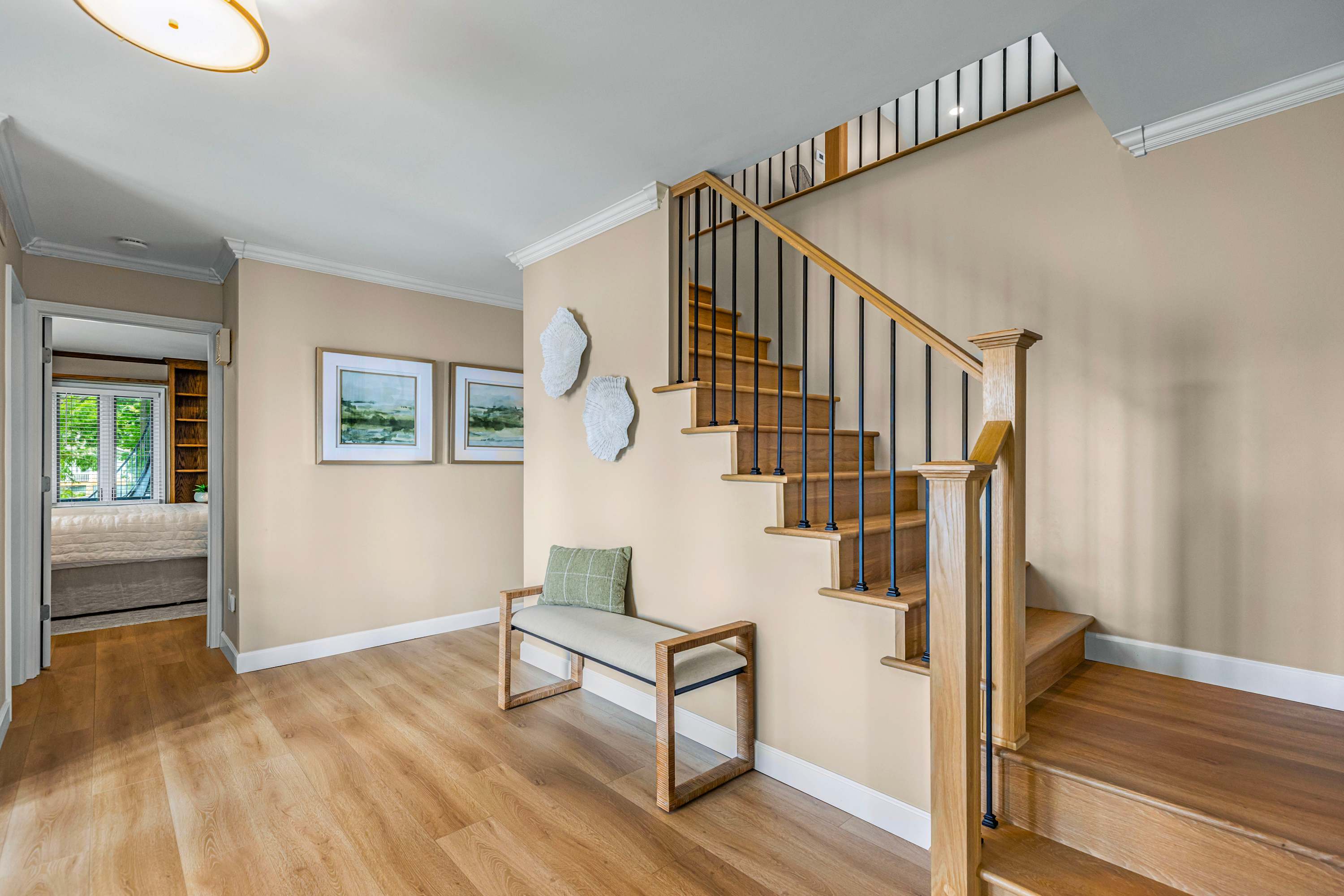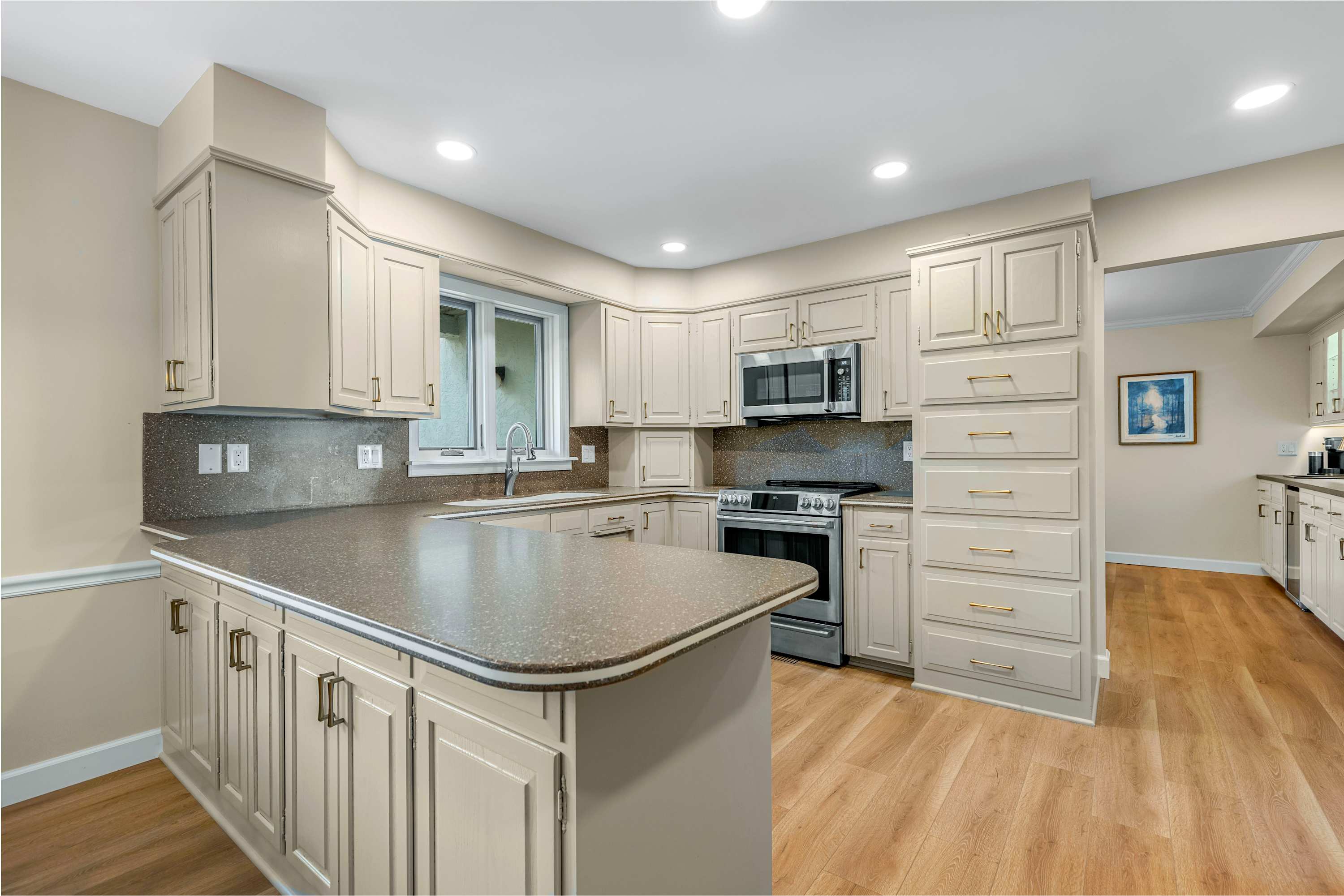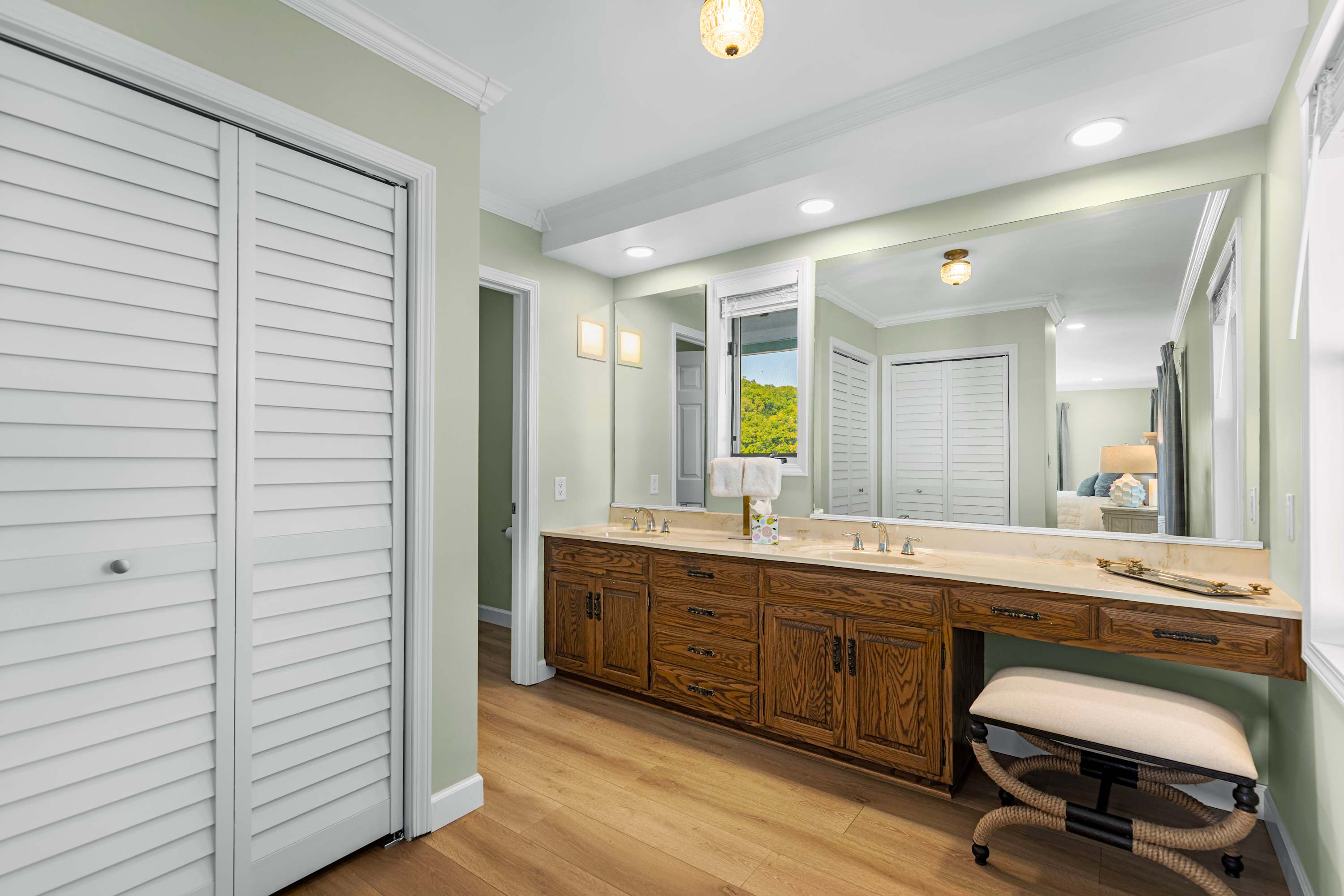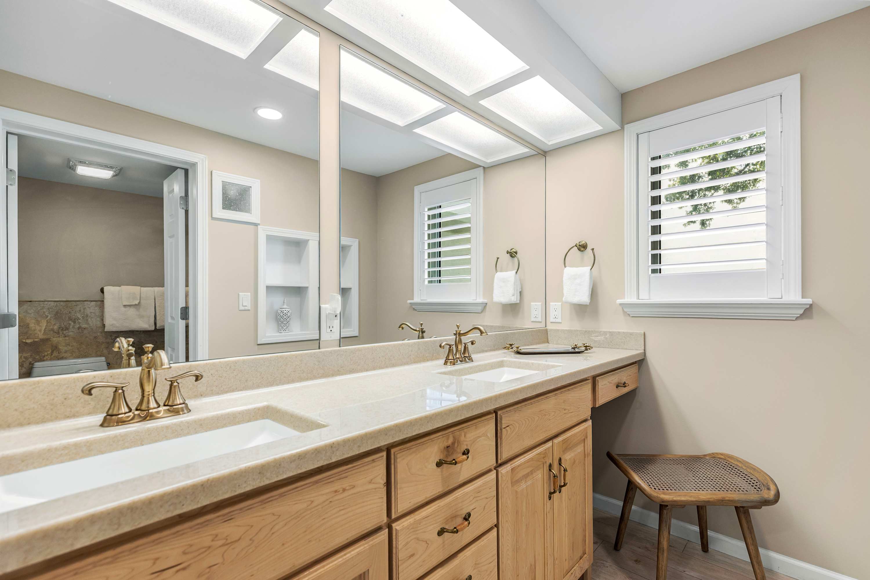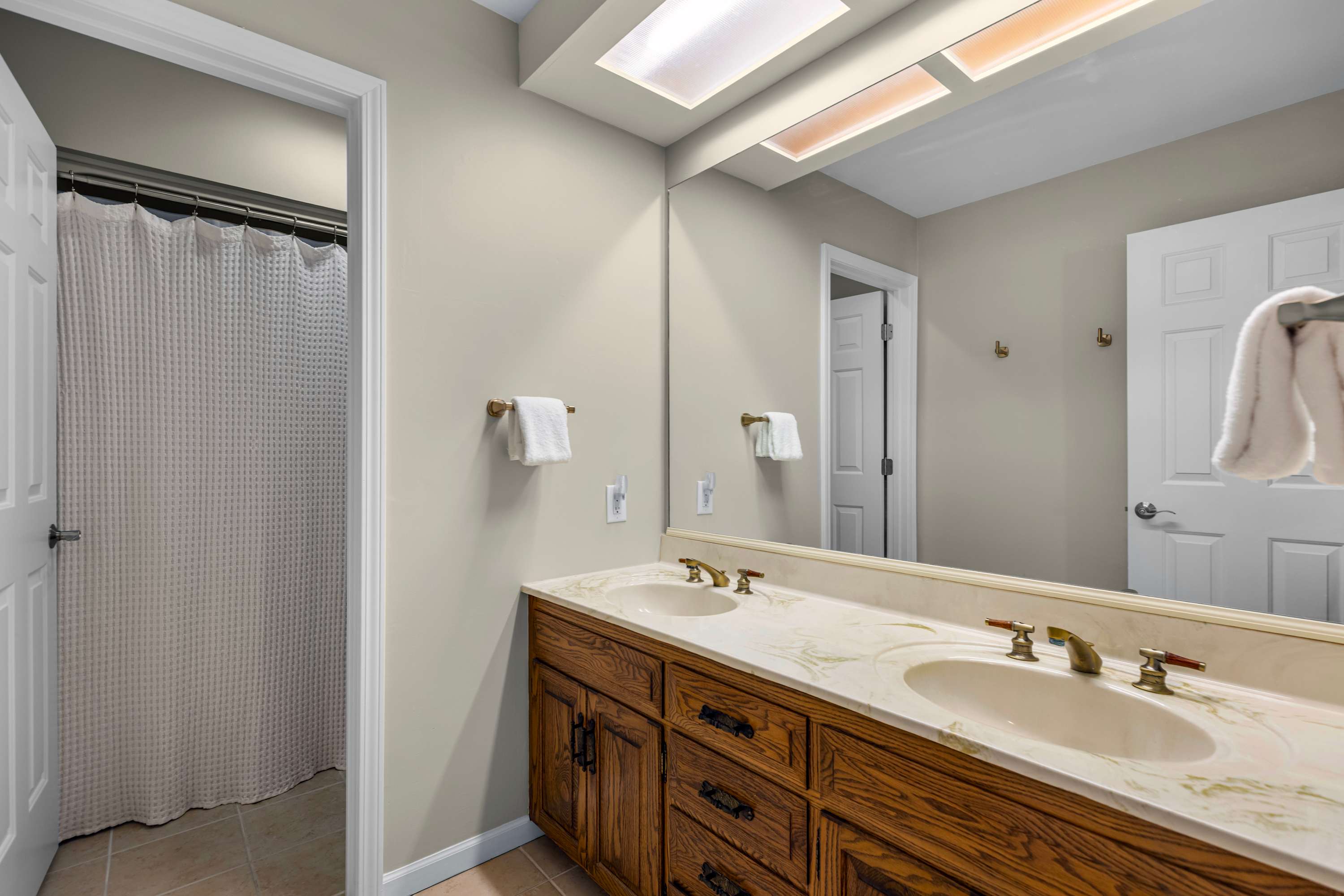 This home also includes 2 half bathrooms with single vanities and an additional full bathroom with a dual vanity and a shower/tub combo.