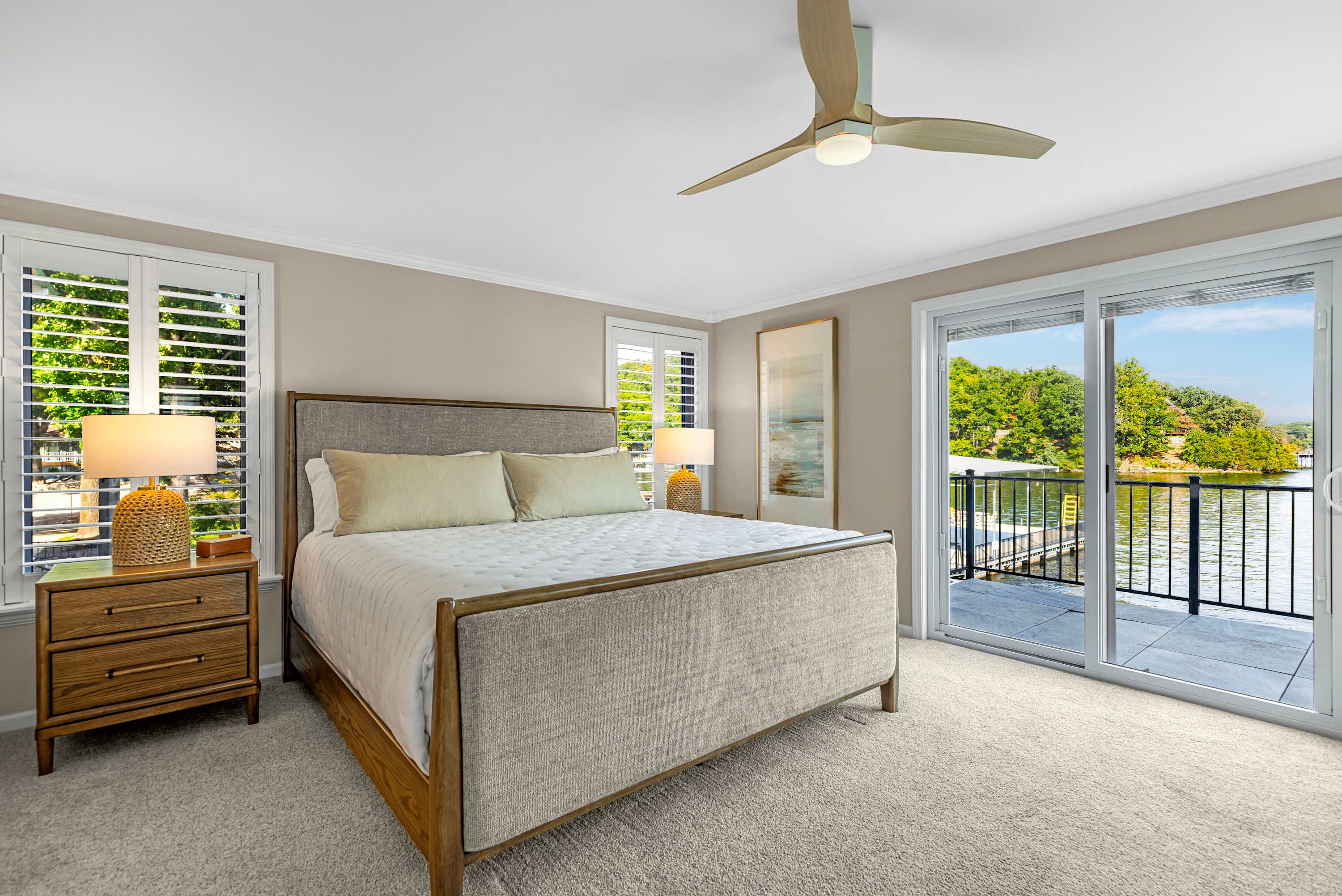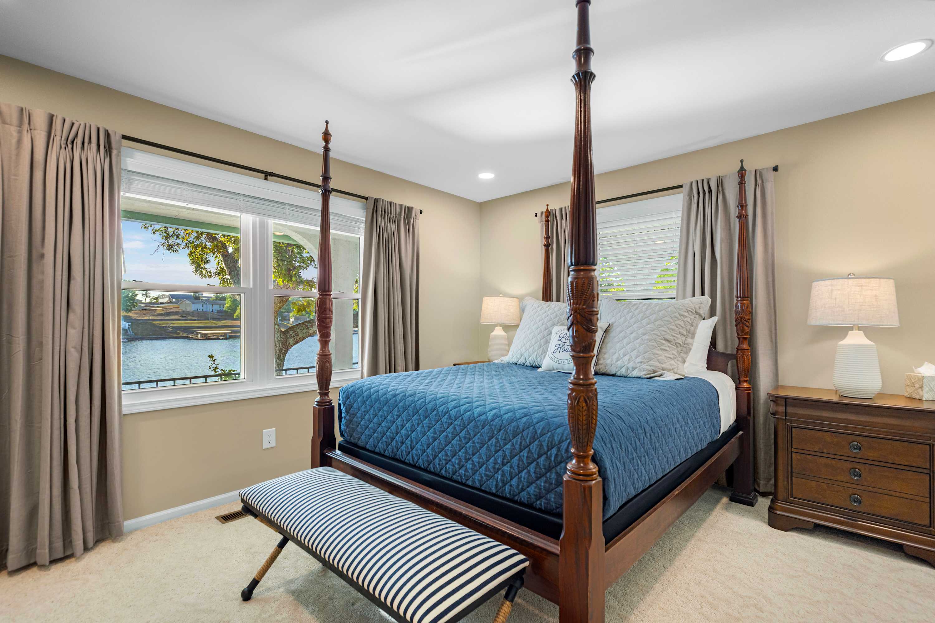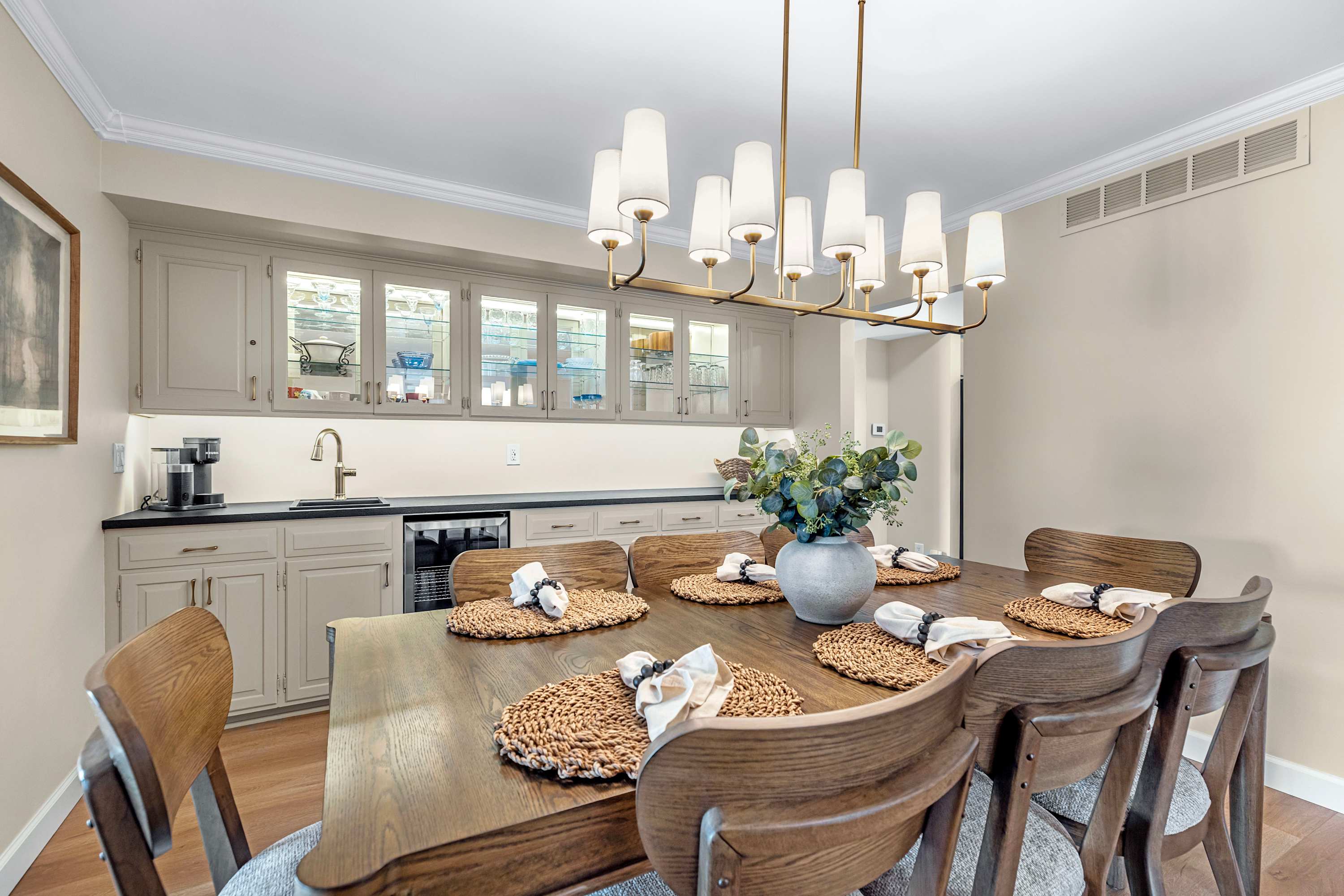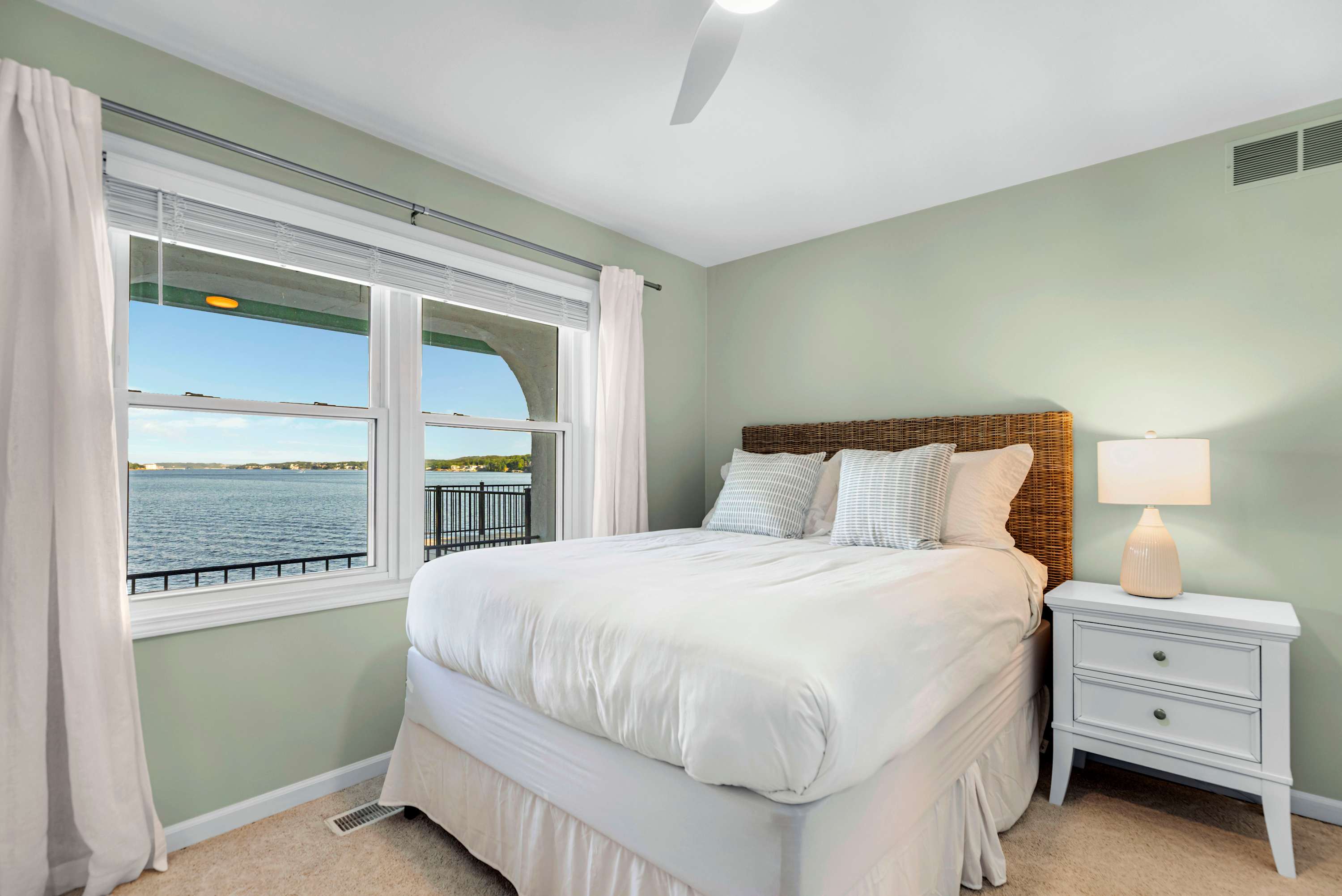 Step inside to a warm, light-filled living room where two cozy couches, a sitting area for two, and a smart TV above the fireplace invite you to unwind after a day on the water. The open-concept kitchen offers plenty of space, complete with stainless steel appliances, both Keurig and drip coffee options, and a charming corner table for six with bench seating. Gather in the formal dining room, where a wet bar and a table for eight set the scene for memorable meals. For even more entertainment, the game room is packed with fun—shuffleboard, foosball, arcade games, board games, a smart TV, and seating for six. A separate basement space with a sectional and smart TV offers another cozy hangout zone.
