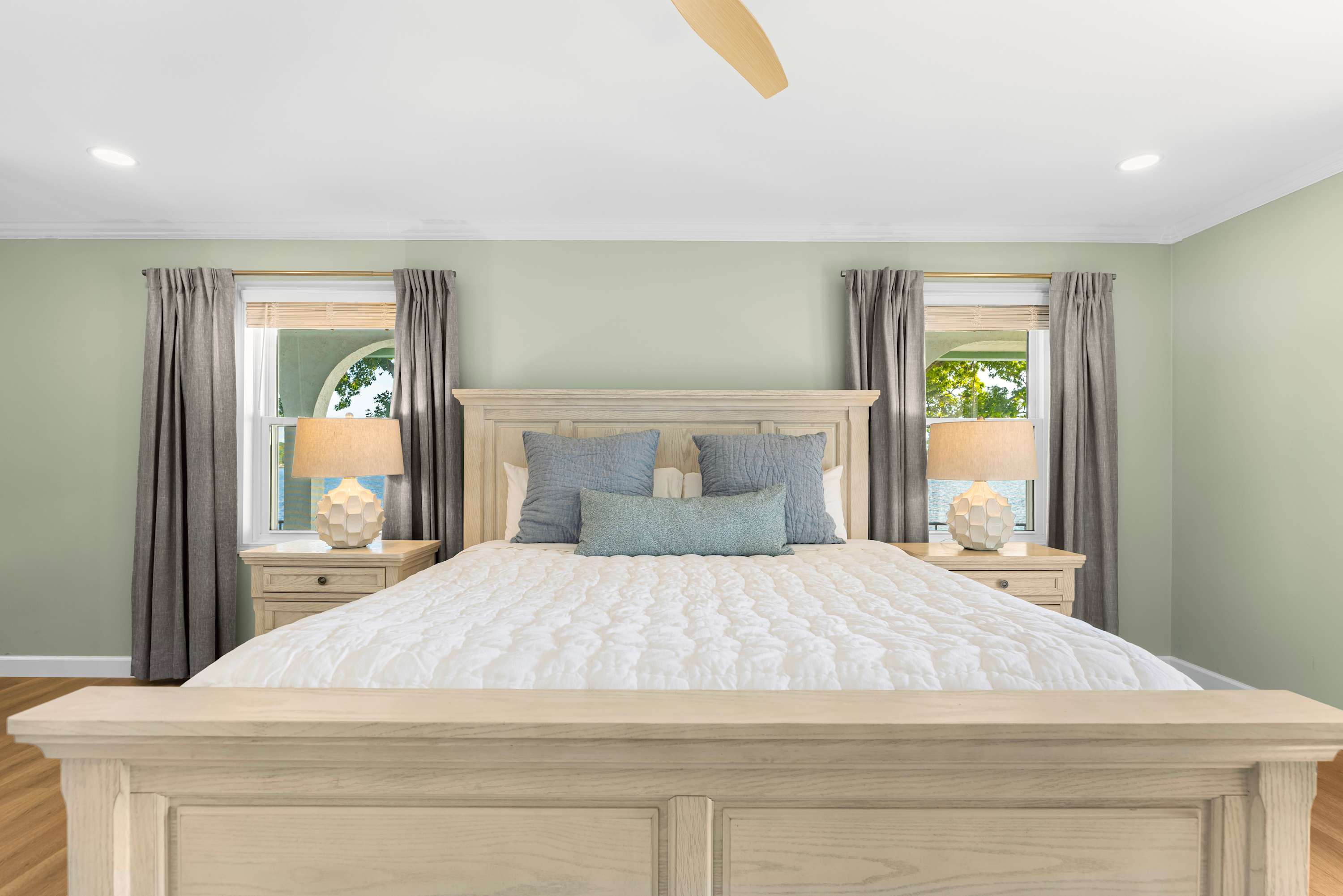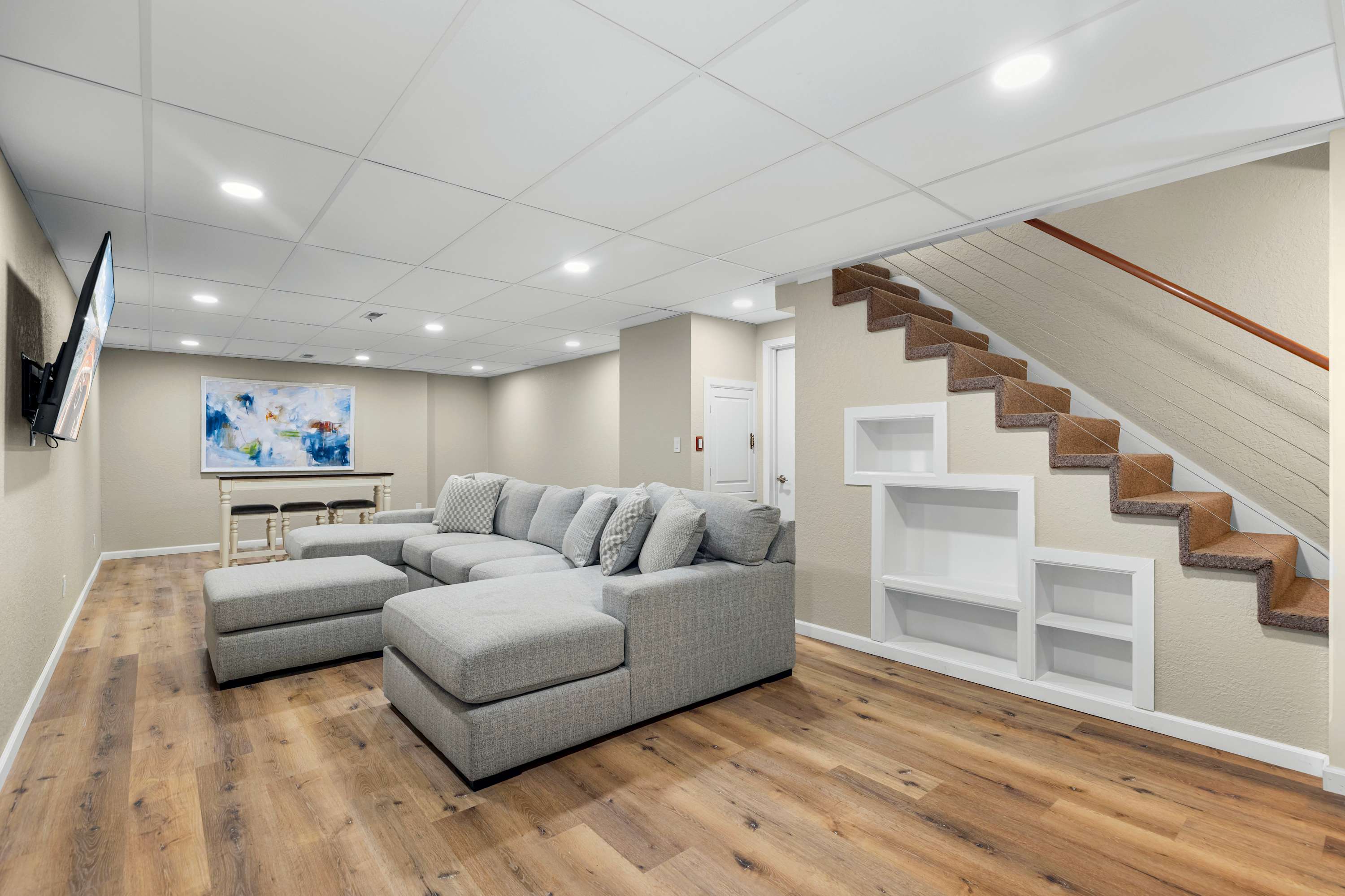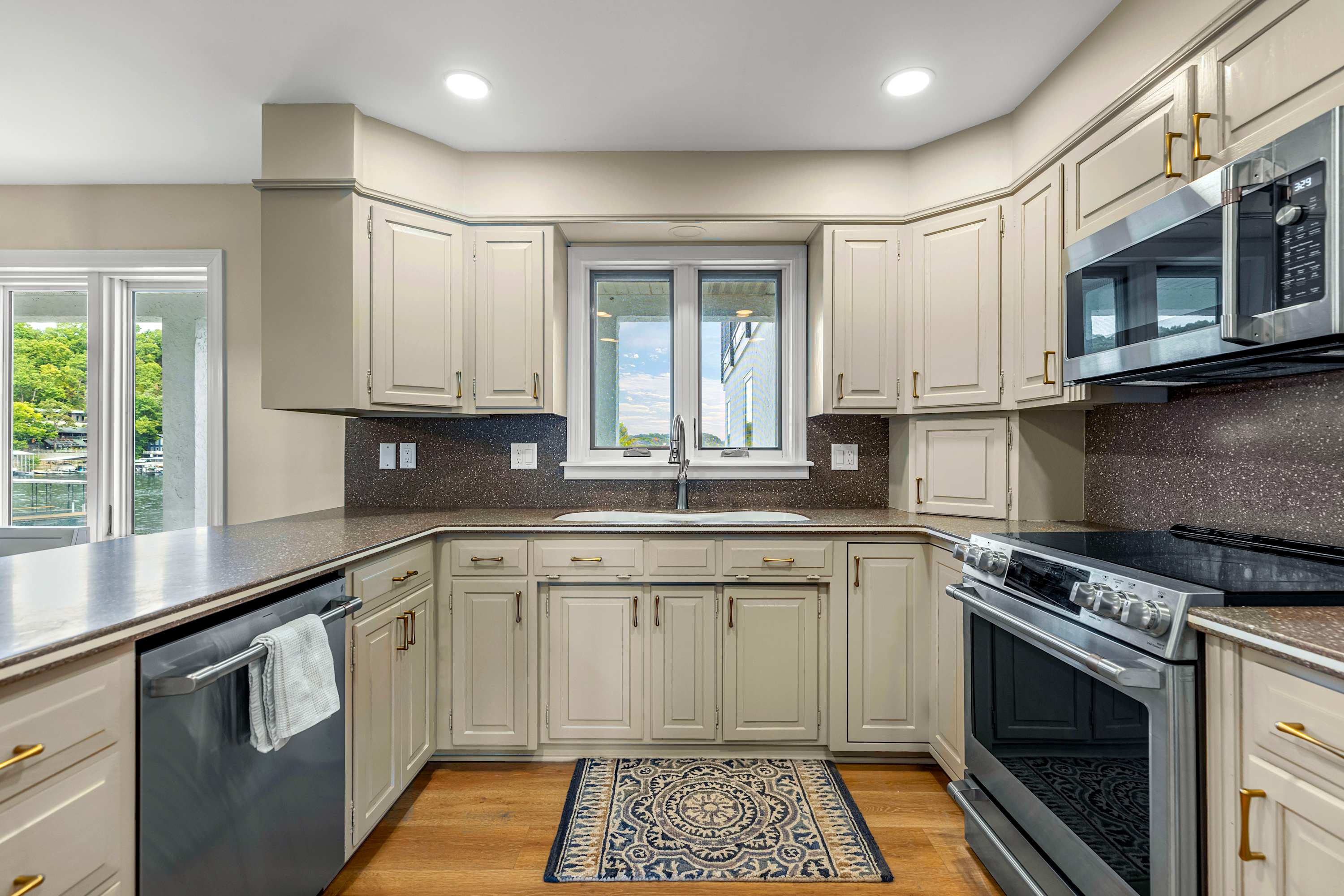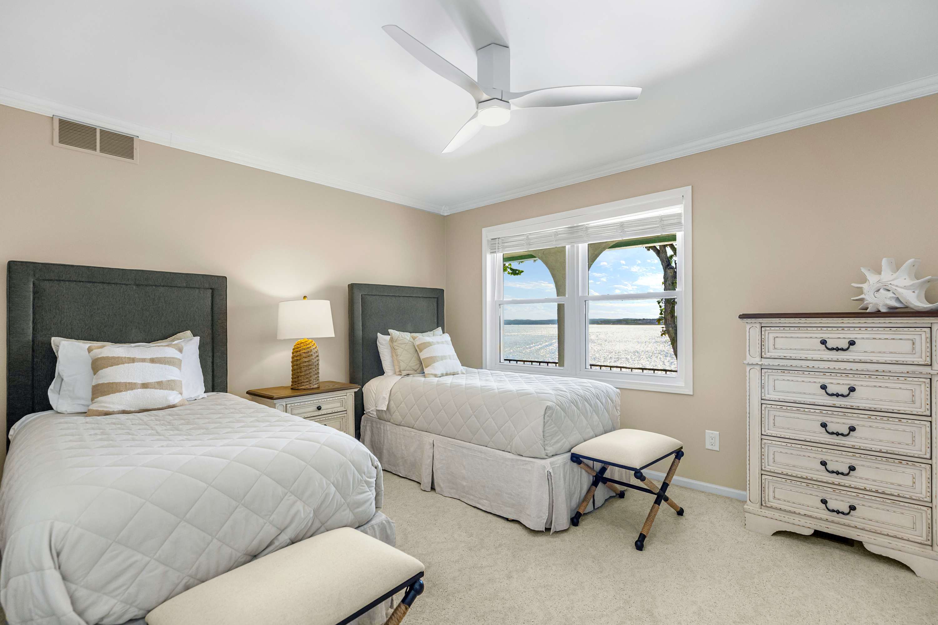 Step inside to a warm, light-filled living room where two cozy couches, a sitting area for two, and a smart TV above the fireplace invite you to unwind after a day on the water. The open-concept kitchen offers plenty of space, complete with stainless steel appliances, both Keurig and drip coffee options, and a charming corner table for six with bench seating. Gather in the formal dining room, where a wet bar and a table for eight set the scene for memorable meals. For even more entertainment, the game room is packed with fun—shuffleboard, foosball, arcade games, board games, a smart TV, and seating for six. A separate basement space with a sectional and smart TV offers another cozy hangout zone.