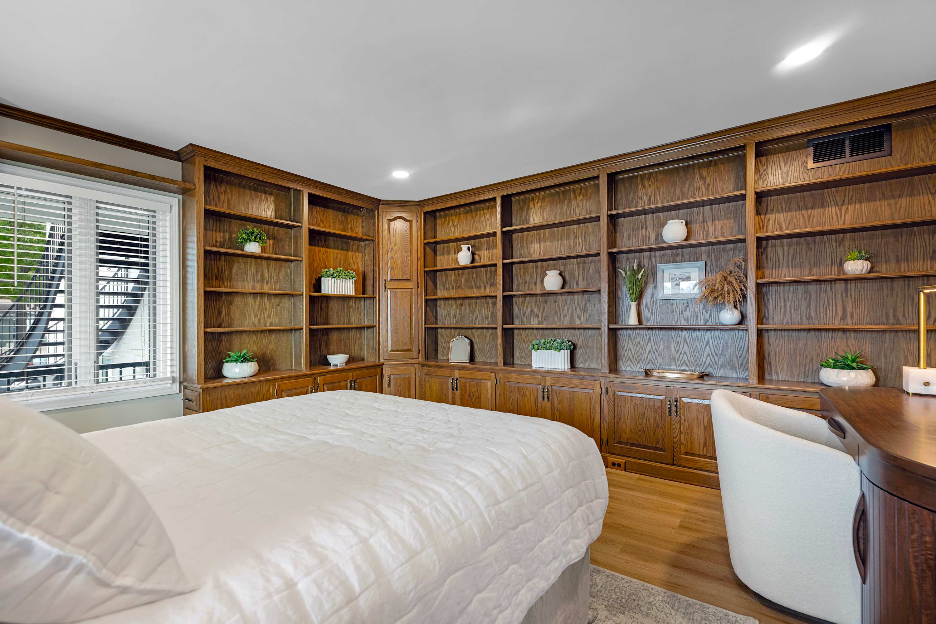 Bedroom #6 includes a queen size bed and a Jack-and-Jill bathroom (shared with the hallway) with a single vanity and a walk-in shower.