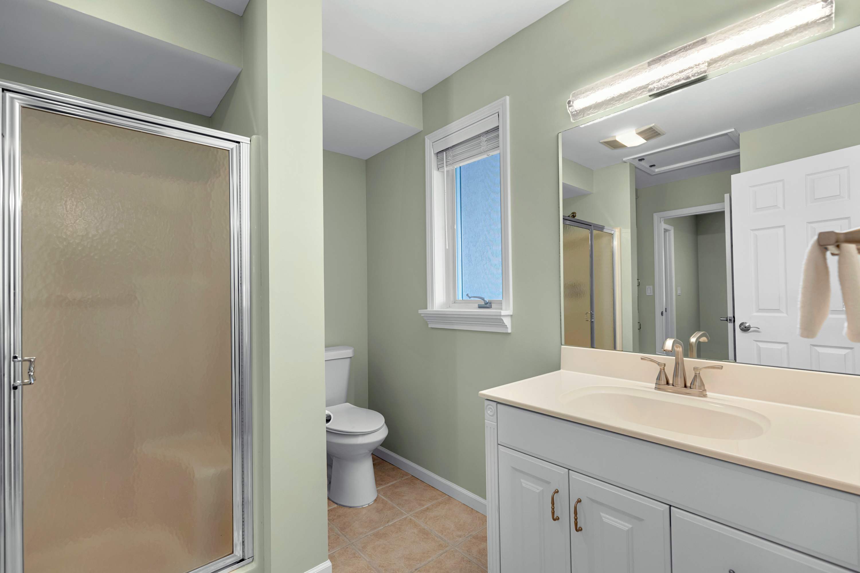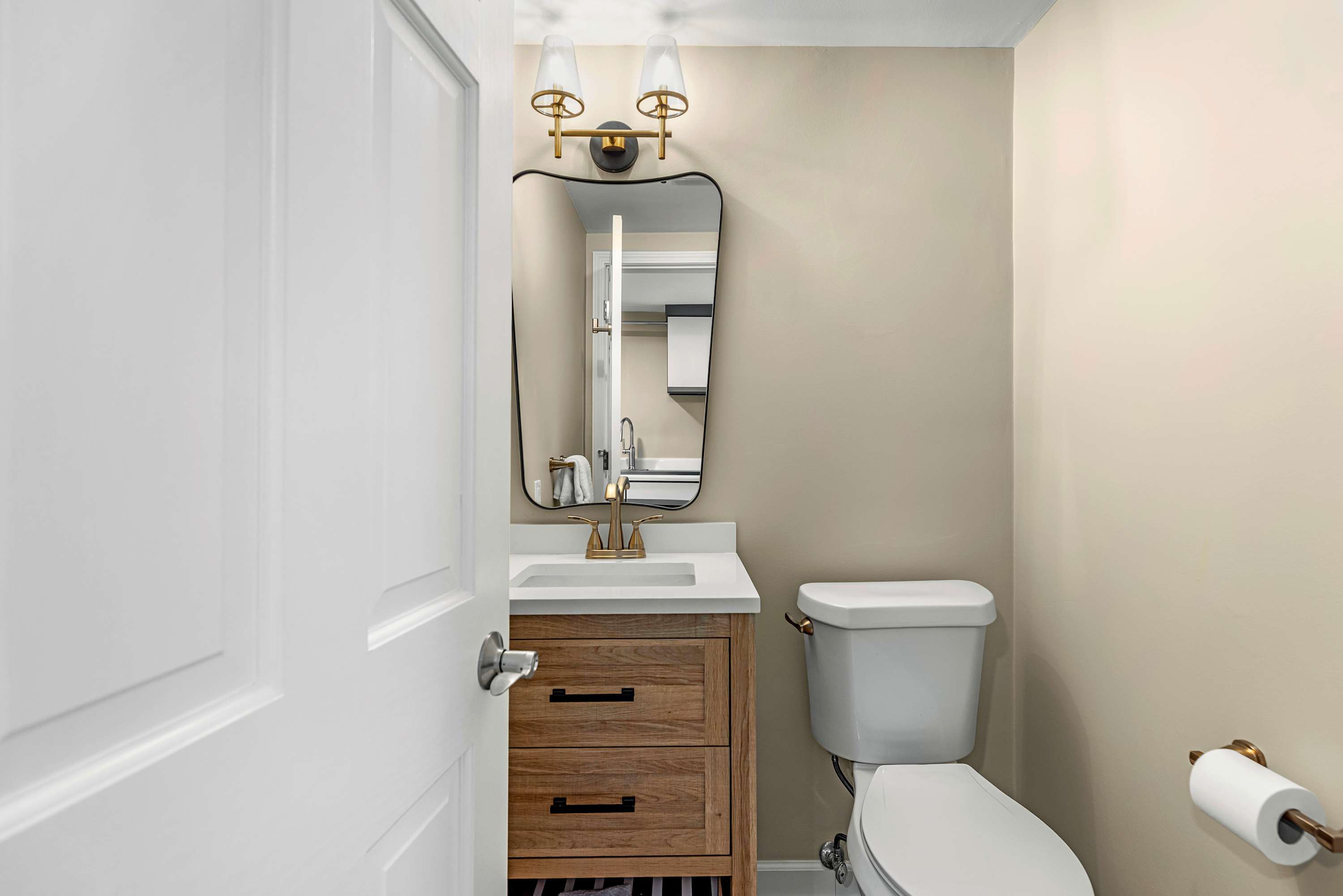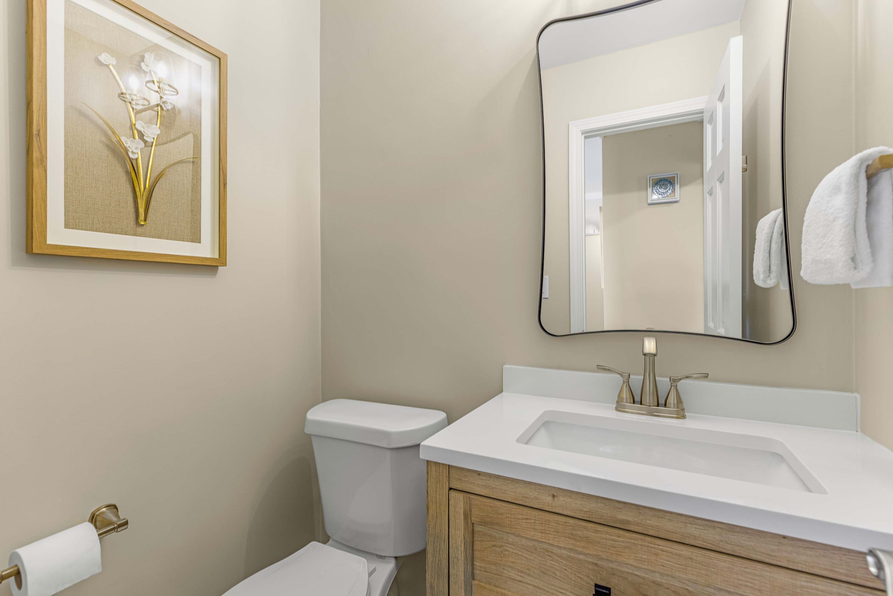 This home includes a half bathroom and an additional full bathroom with a single vanity and a shower/tub combo.