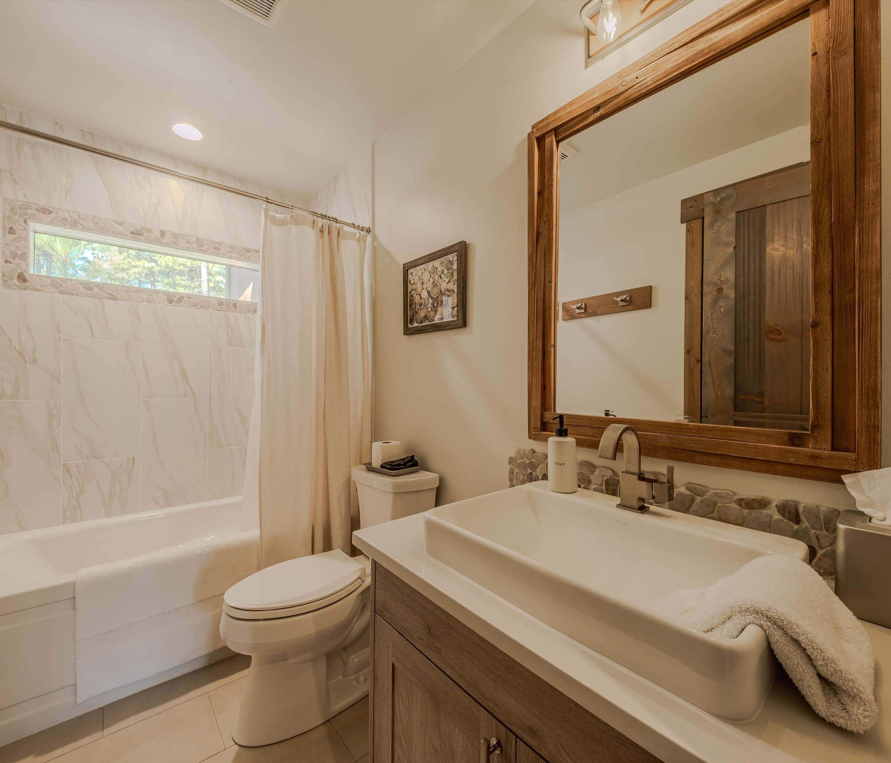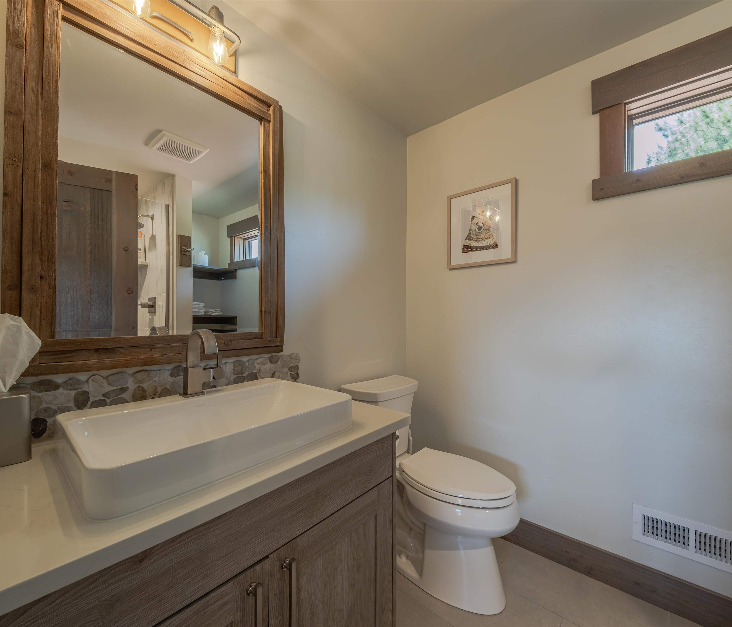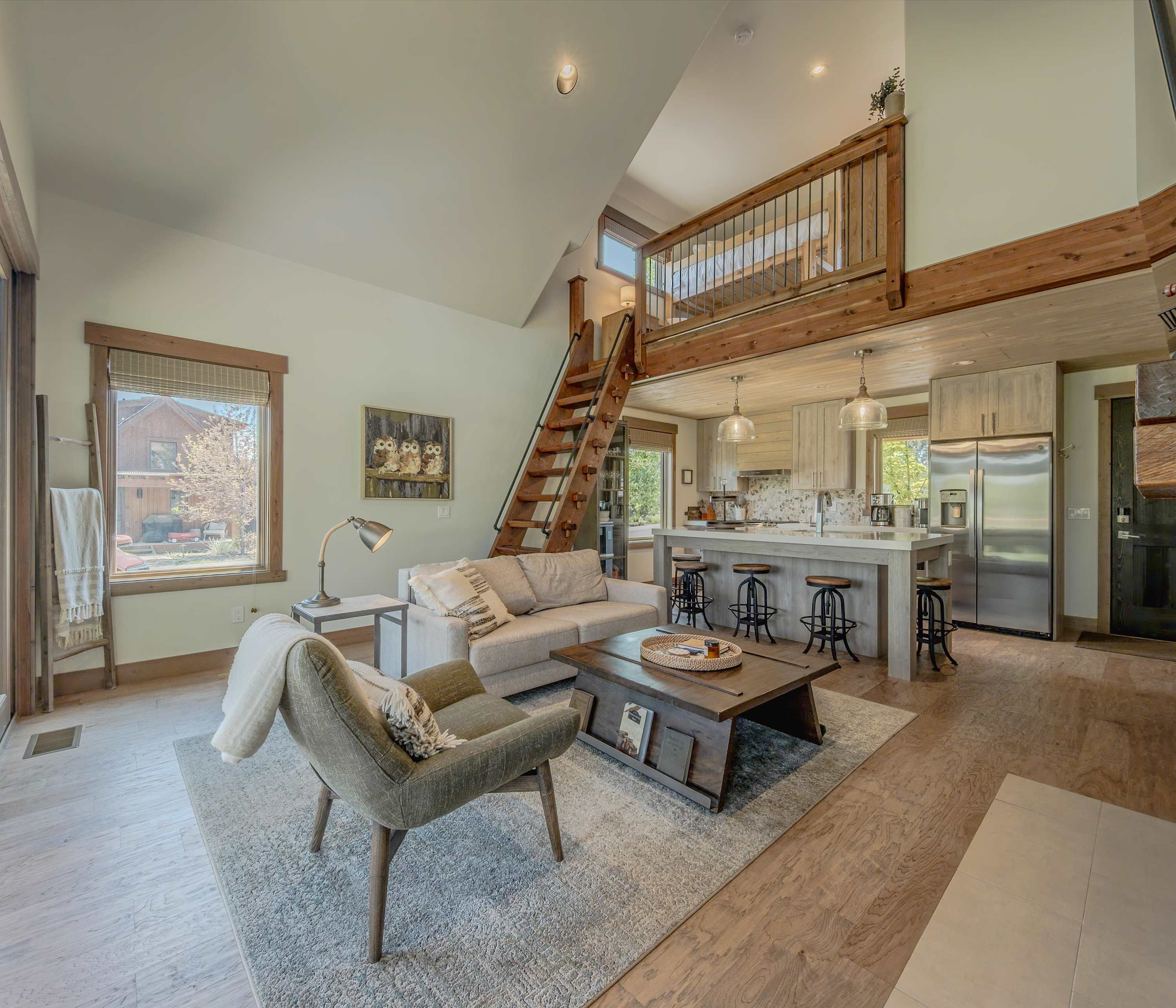 This home comfortably sleeps 7 guests between 2 private bedrooms and twin-over-queen bunk beds in the loft.