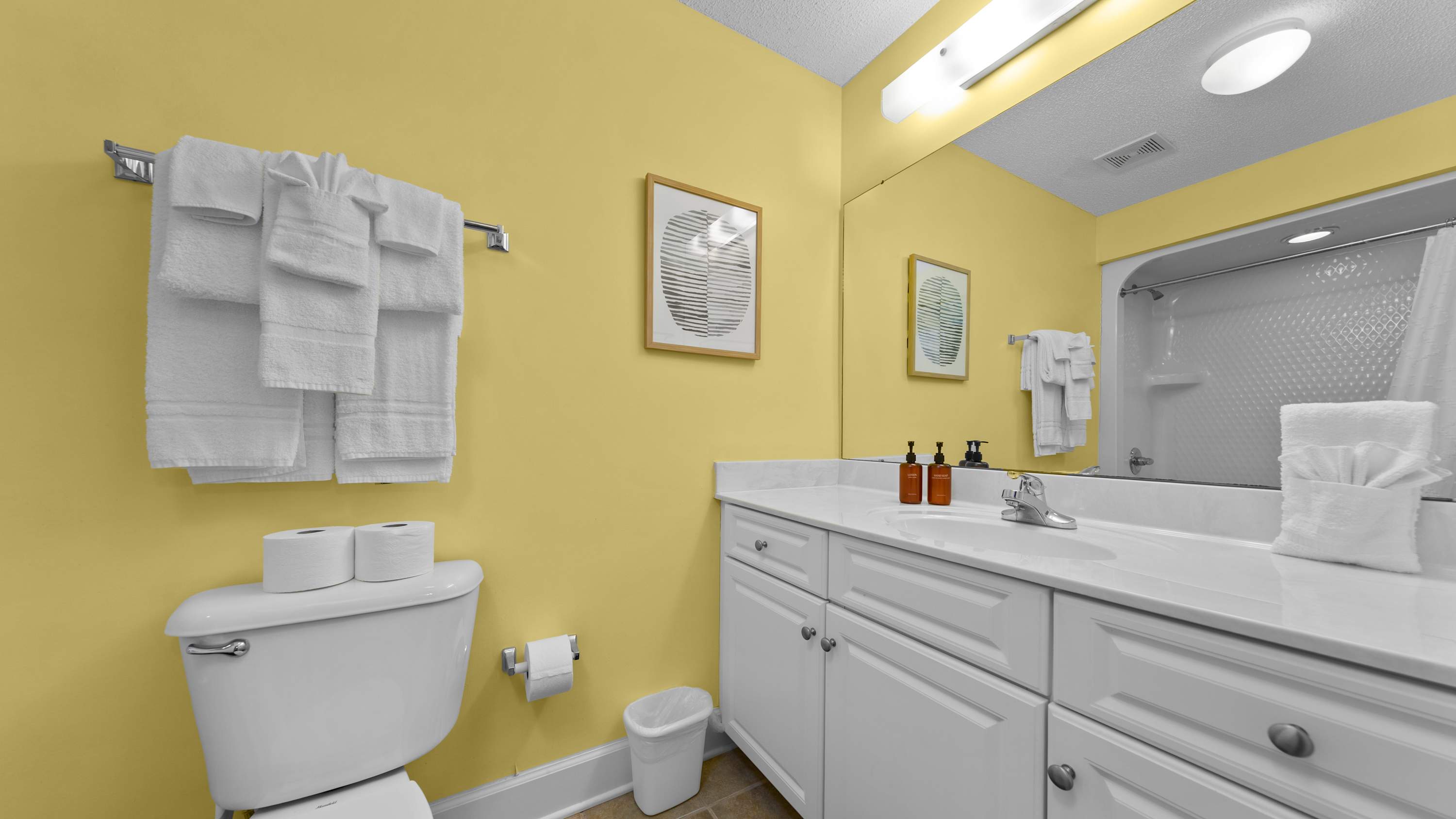 Three full private bathrooms keeps the door-knocking and shower time-keeping at bay! Primp before dinner, wash up after a day on the beach, and get ready for bed without bumping elbows or negotiating time slots.
