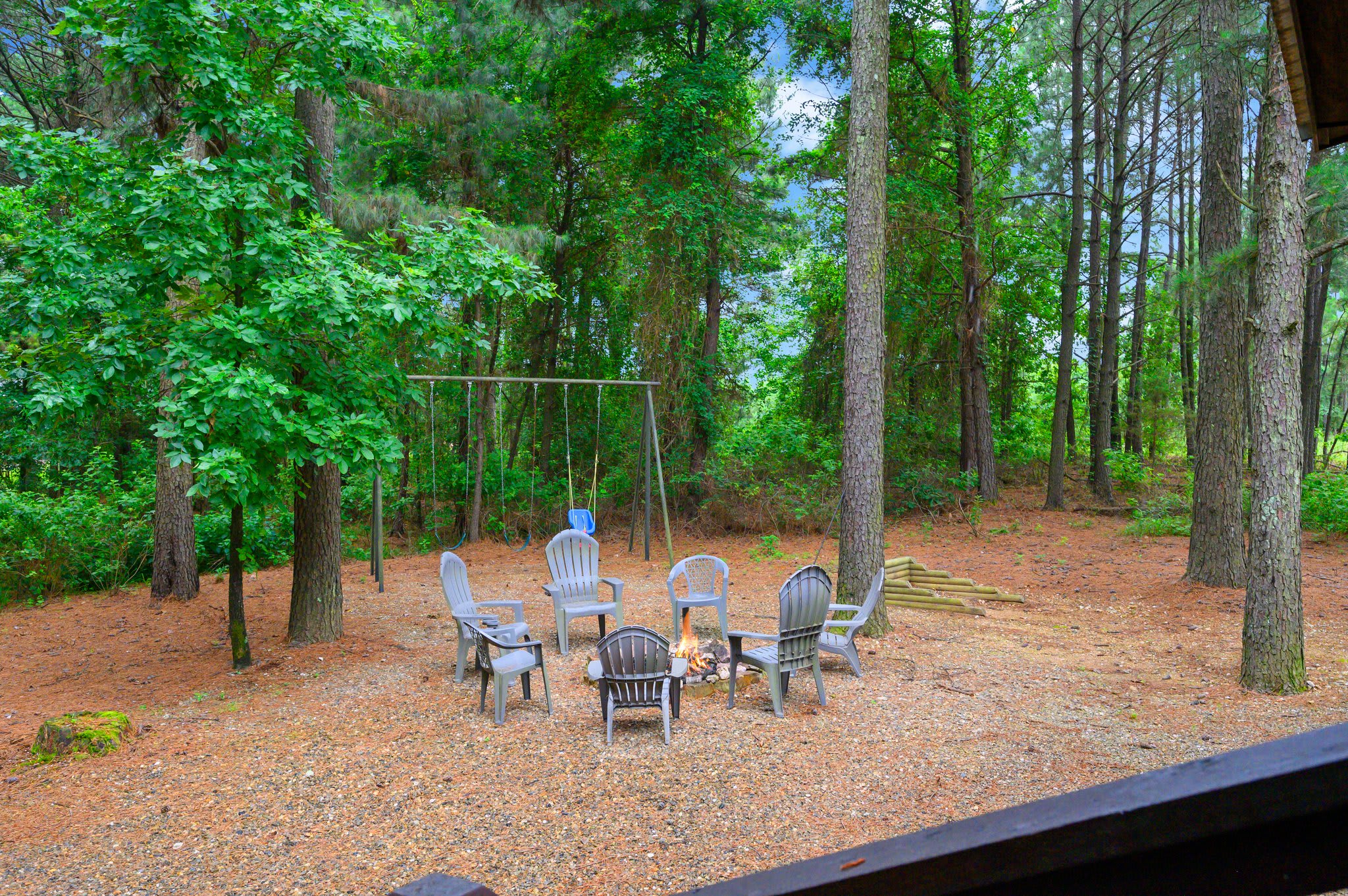 Beyond the deck, the yard becomes its own playground, featuring a swing set for the kids, a horseshoe pit for friendly competition, and a firepit perfect for late-night s’mores and stories. Whether you’re here for the peaceful surroundings or the endless entertainment, Heartland Retreat has all the charm and comfort to make your stay unforgettable.