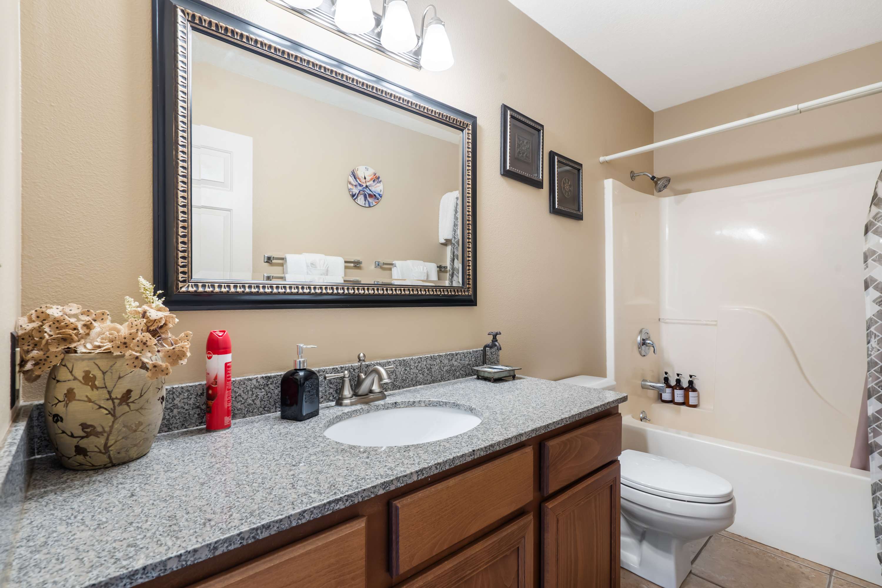 This home also includes a full bathroom with a single vanity and a shower/tub combo.