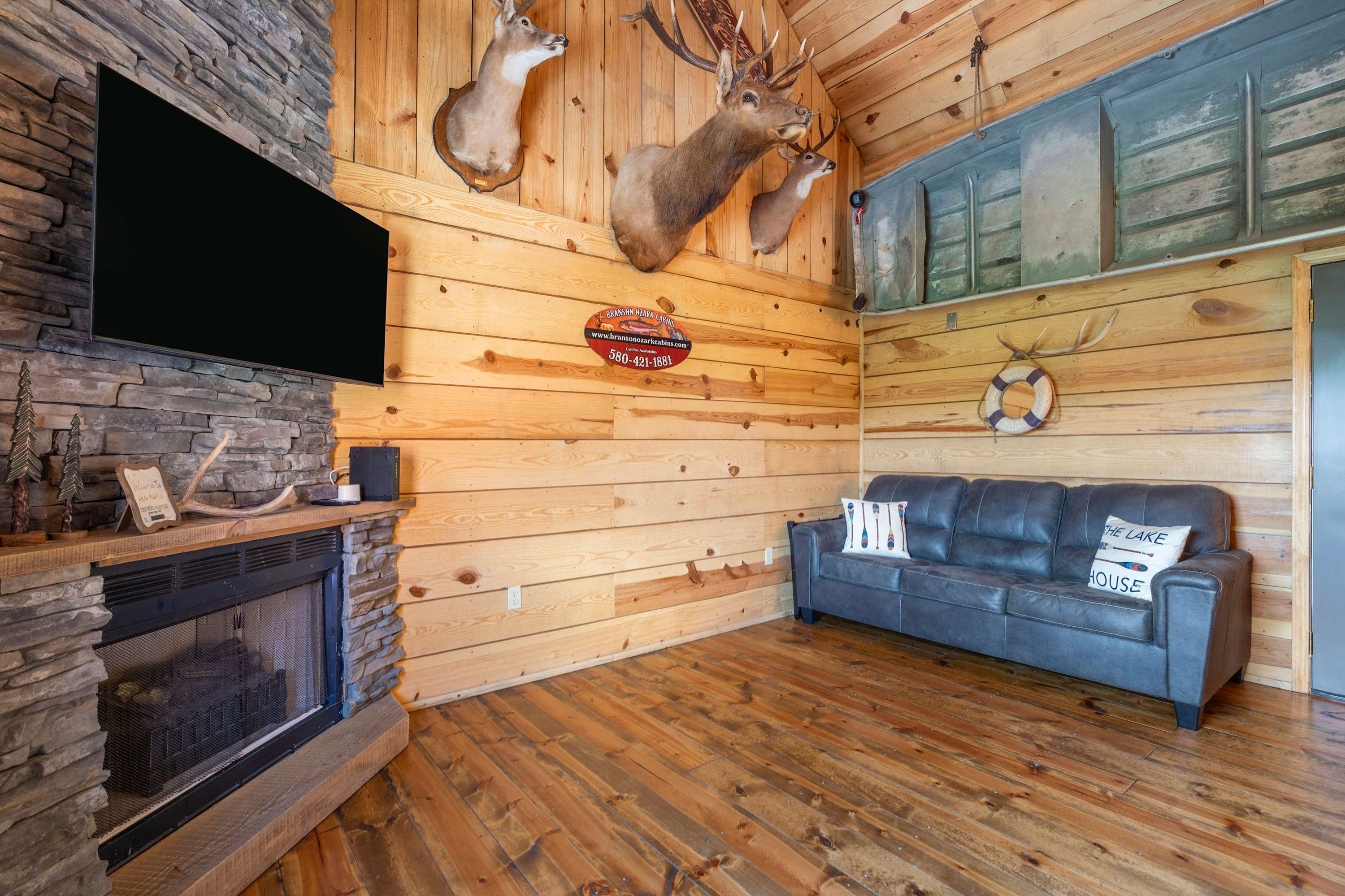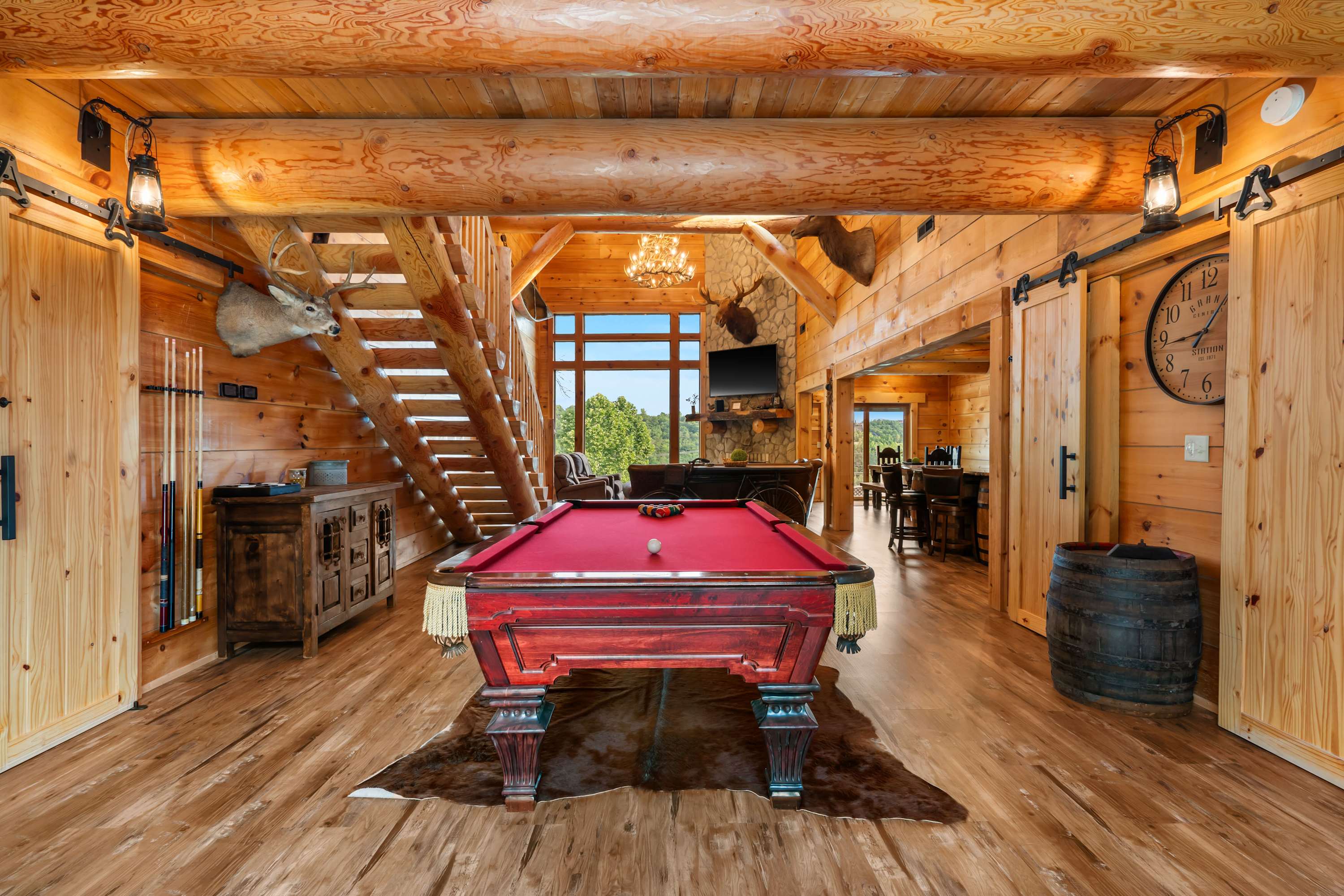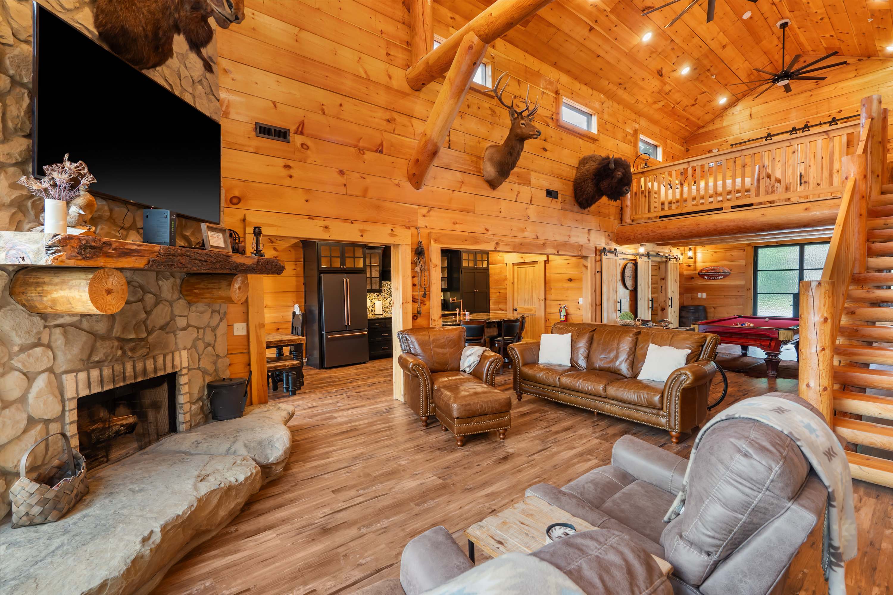 •. This home is a combined rental of three separate cabins: Antlers Point, Antlers Lodge, & Buffalo Lodge. Smaller groups are encouraged to book one of these individual units for their getaway.