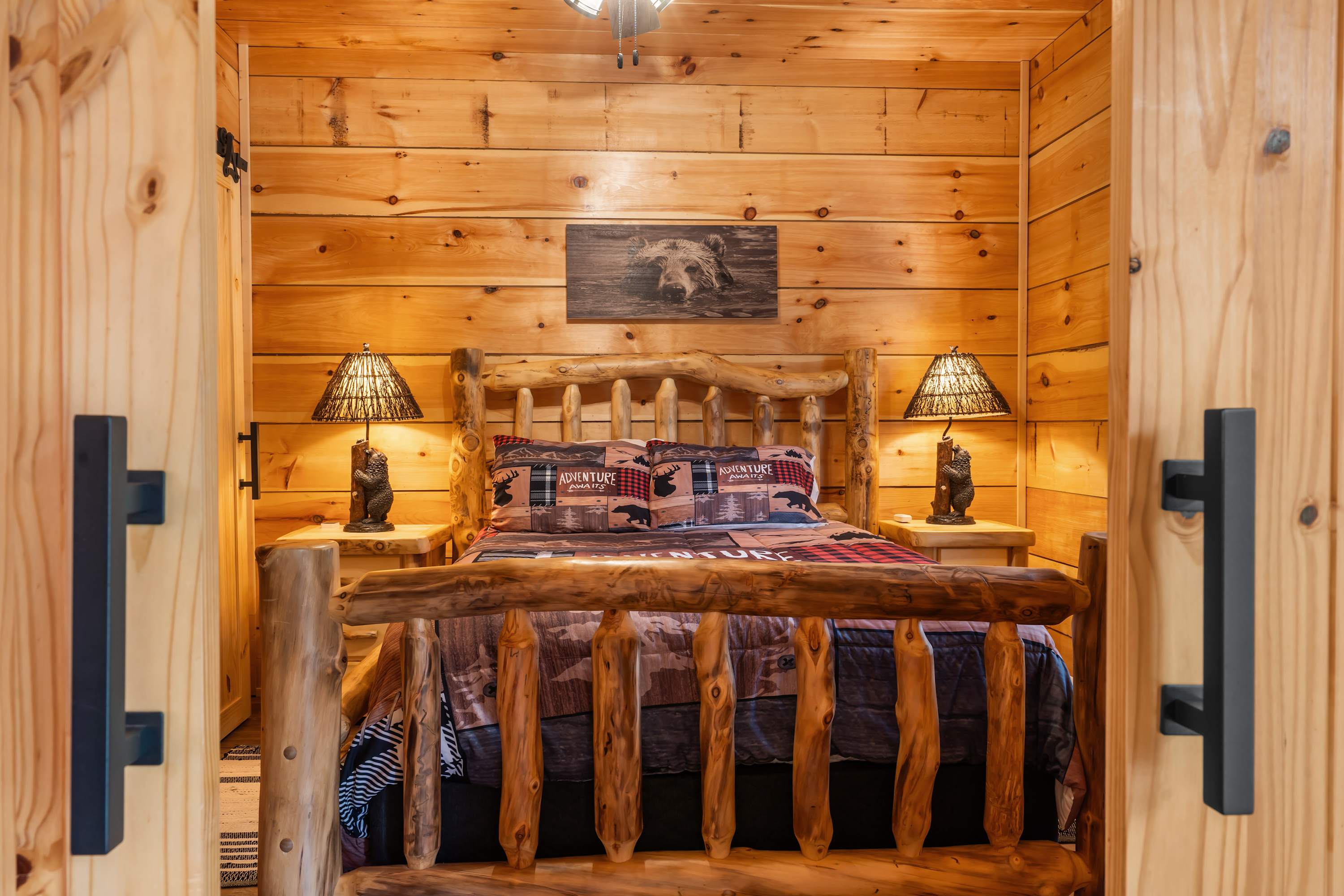Buffalo Lodge (#154) comfortably sleeps 8 guests between 3 private bedrooms and a queen-size sleeper sofa in the living room.