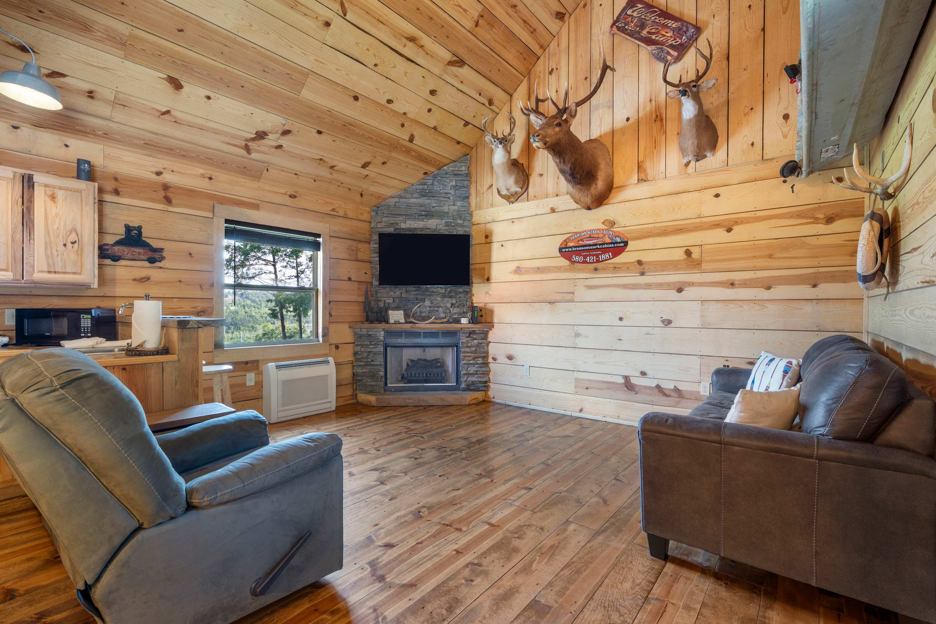 Antlers Point (#146) comfortably sleeps 4 guests between an open-concept bedroom and a queen-size sleeper sofa in the living room.