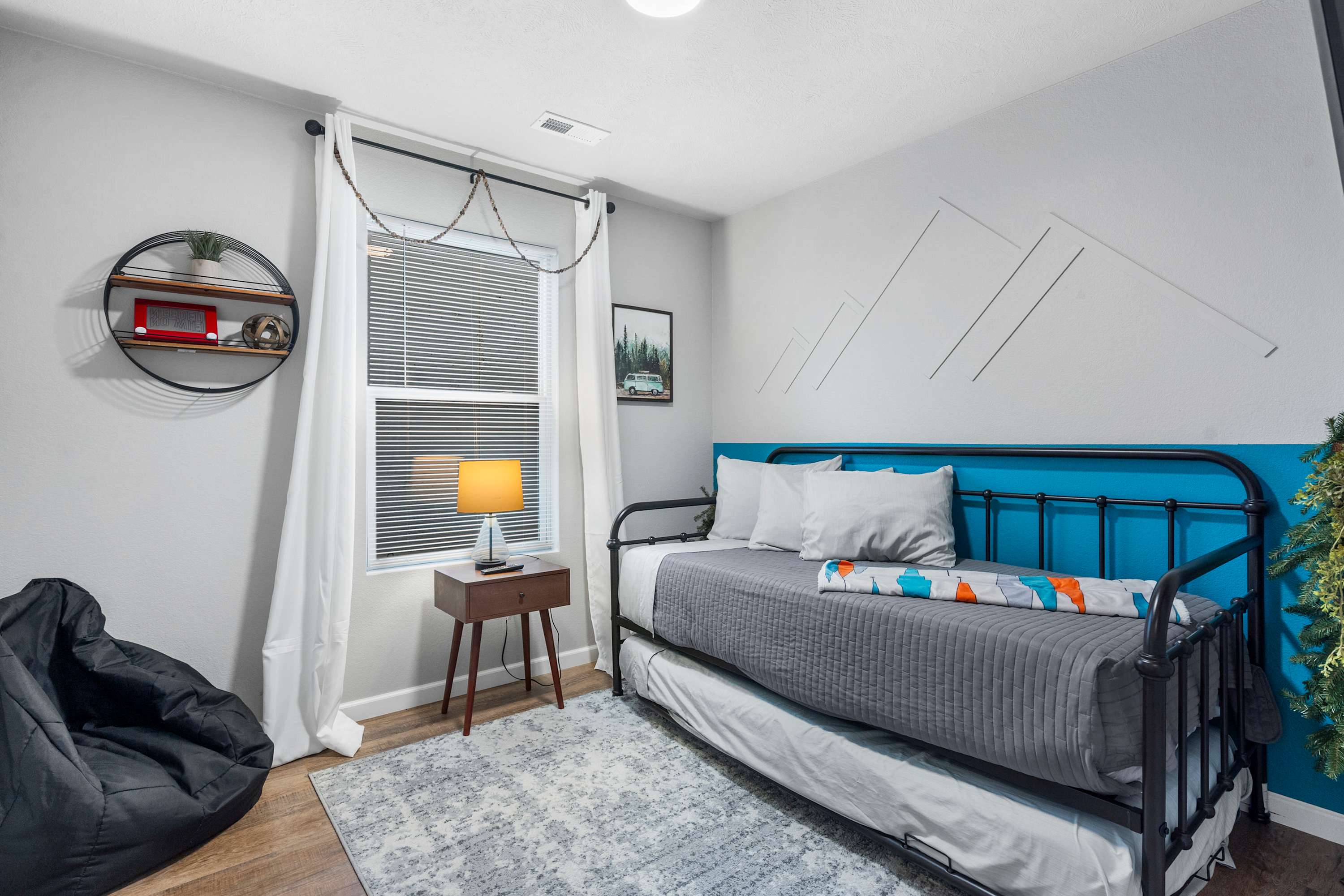 Bedroom #2 includes a twin size bed, a twin size trundle, and a smart TV.