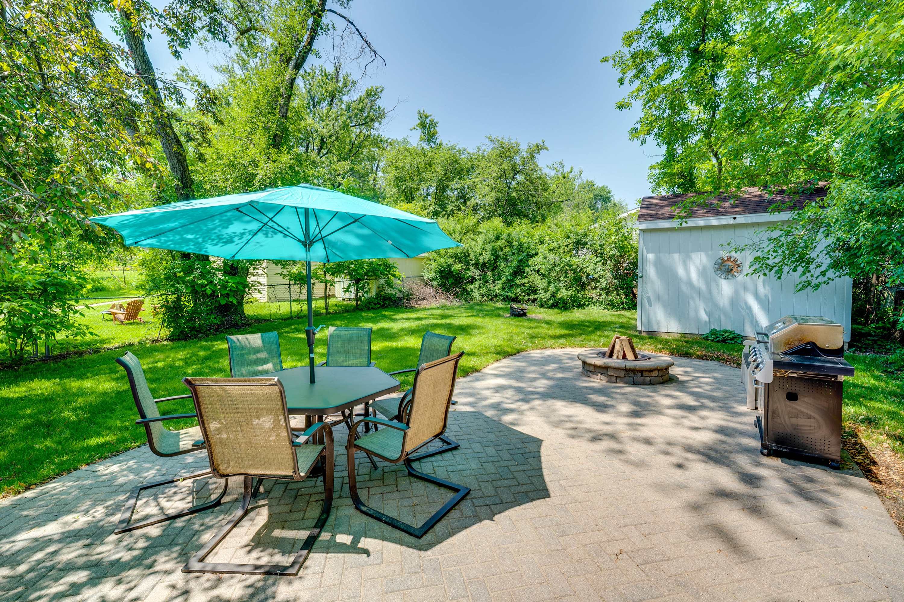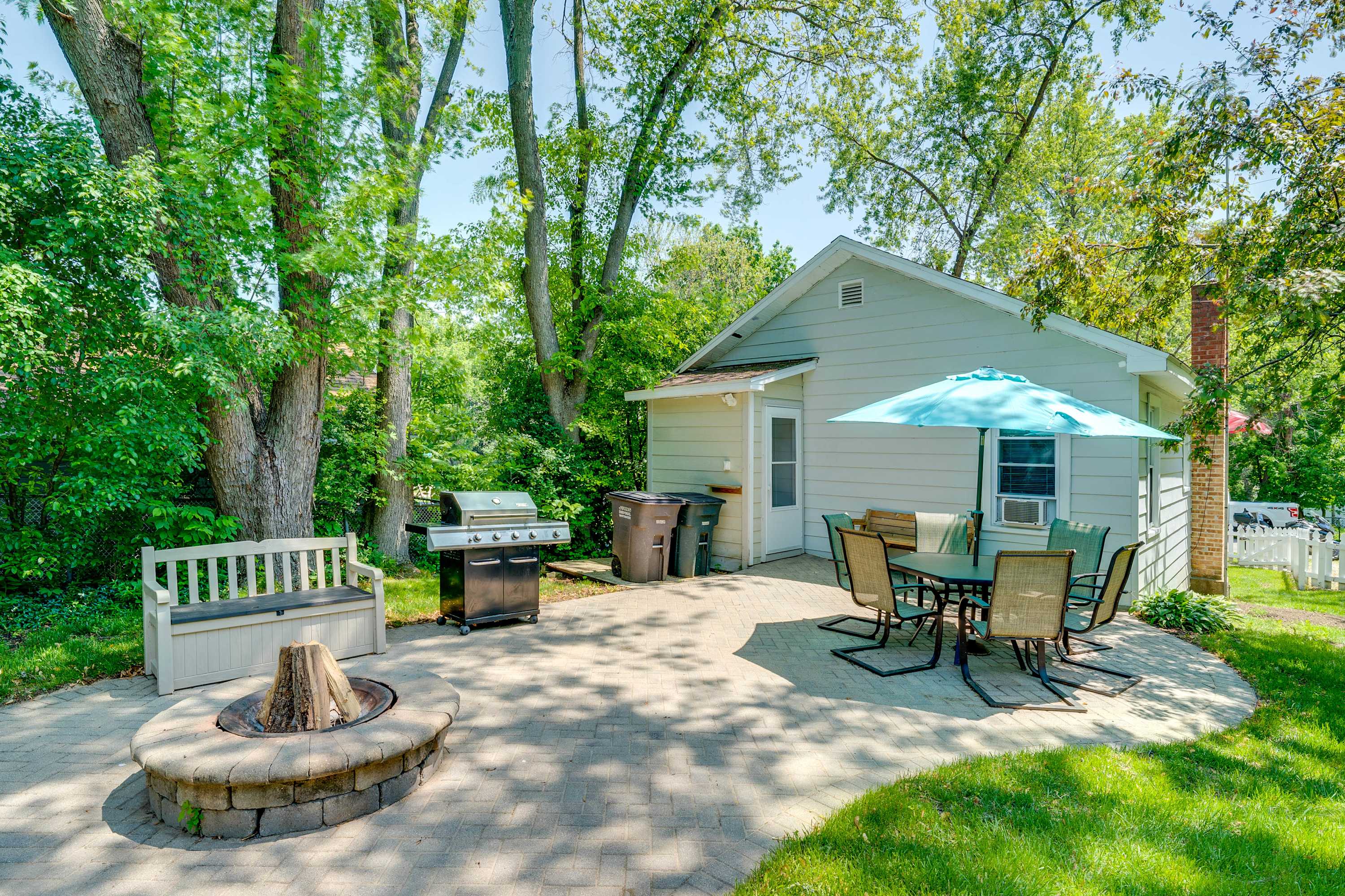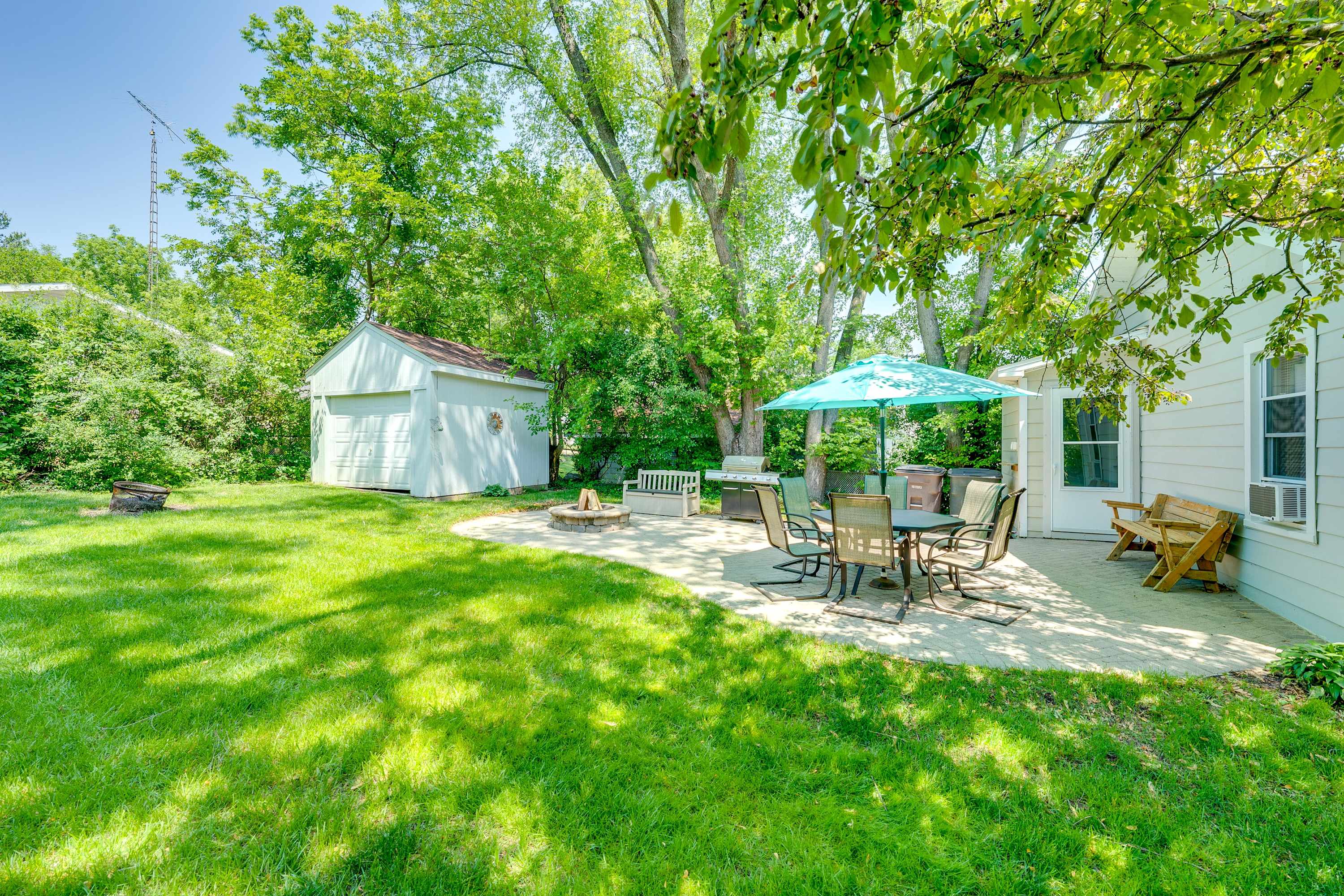 Start your mornings on the front patio, sipping coffee as the neighborhood slowly comes to life. Inside, the living room welcomes you with a warm, inviting vibe—featuring a comfy couch, a love seat, an accent chair, and a fireplace that adds a touch of cozy charm. A smart TV is ready for movie nights or catching up on your favorite shows. The kitchen, while compact, is thoughtfully equipped with everything you need to prepare home-cooked meals, and the adjacent dining table seats four for shared meals or game nights. Out back, the private patio is perfect for evenings under the stars—gather around the firepit, grill dinner, and enjoy al fresco dining at the table for six. With lake access nearby and all the comforts of home, this Lake Geneva retreat is your perfect getaway.