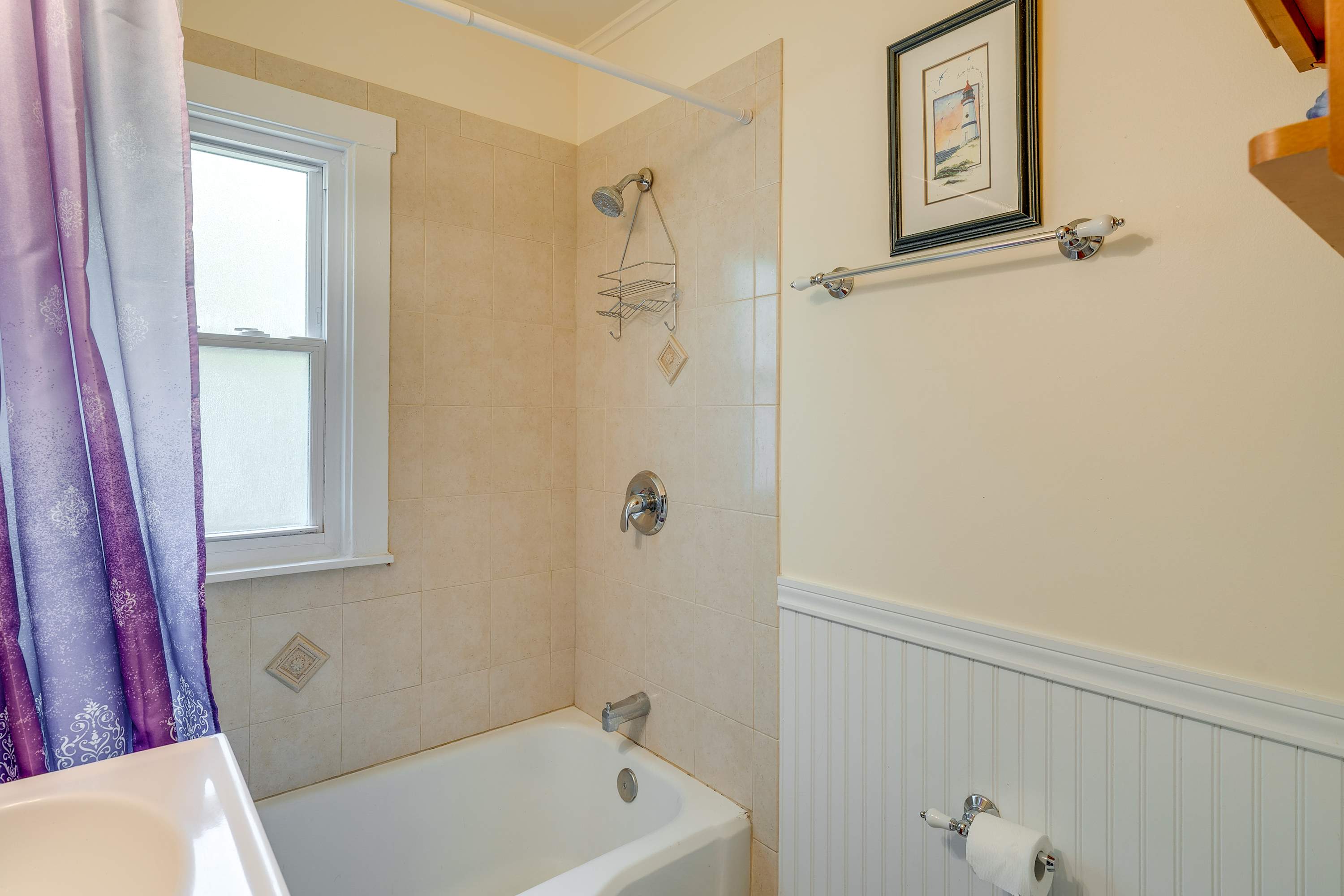 This home includes a full bathroom with a single vanity and a shower/tub combo.