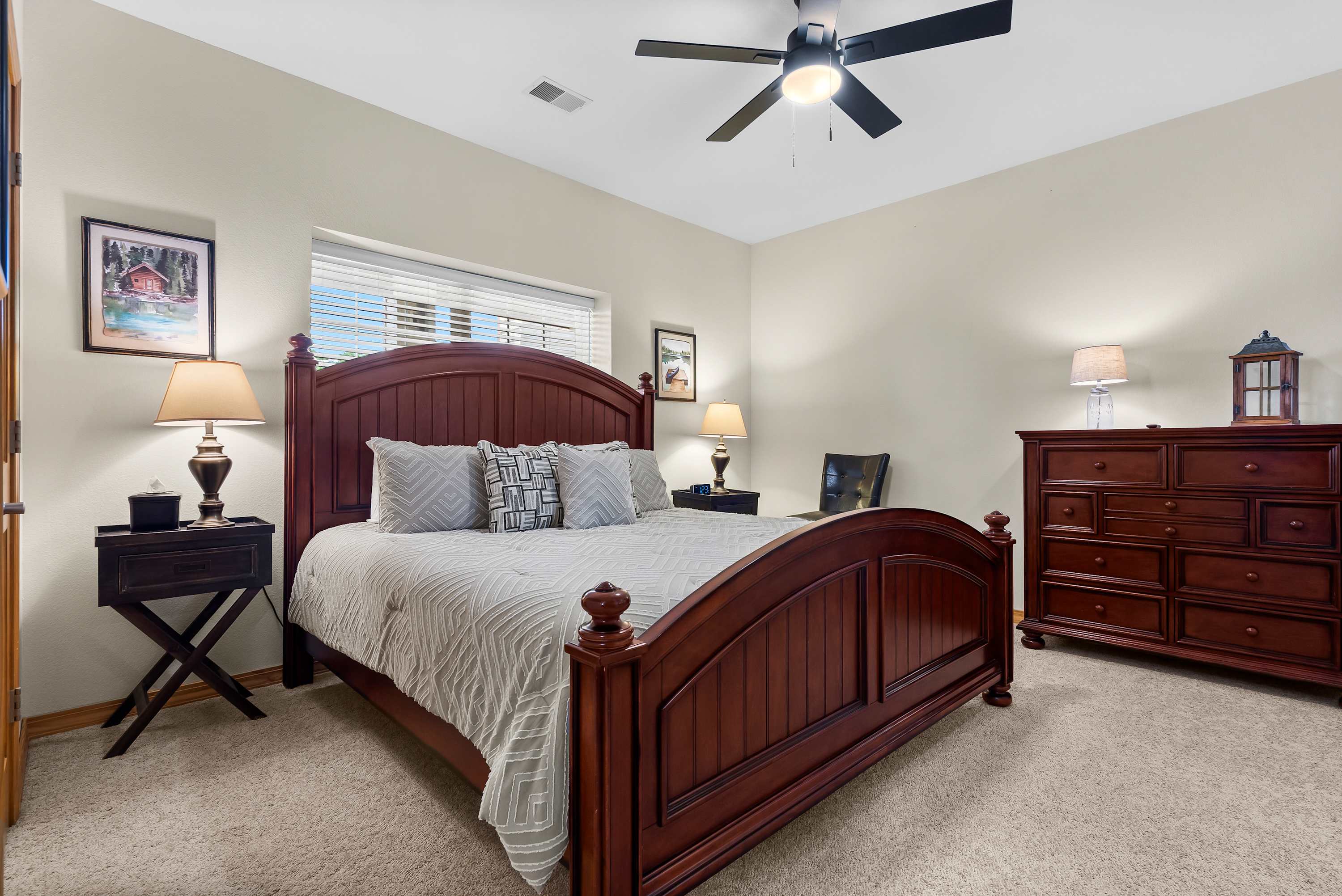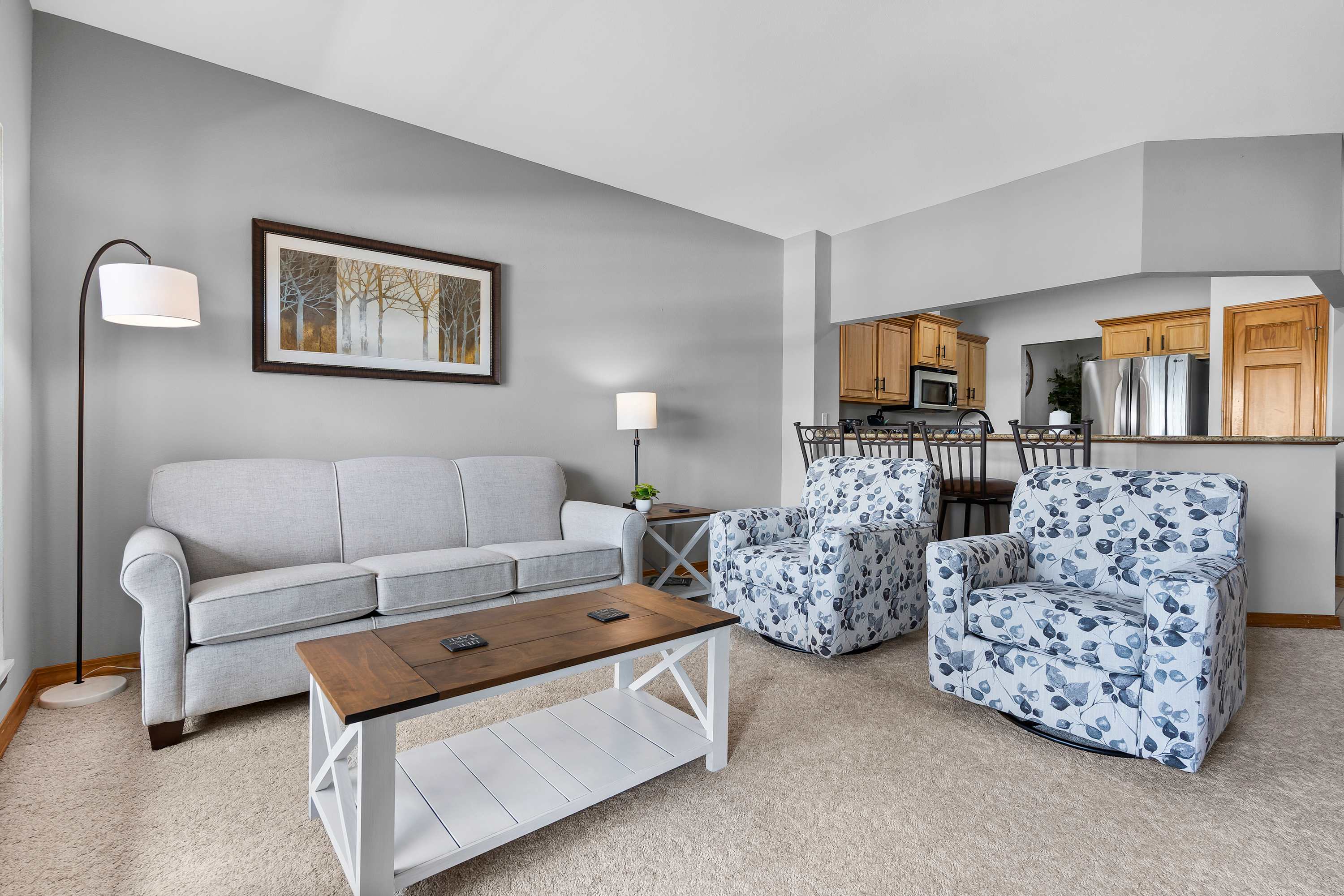 This home comfortably sleeps 6 guests between 2 private bedrooms and a queen-size sleeper sofa in the living room.