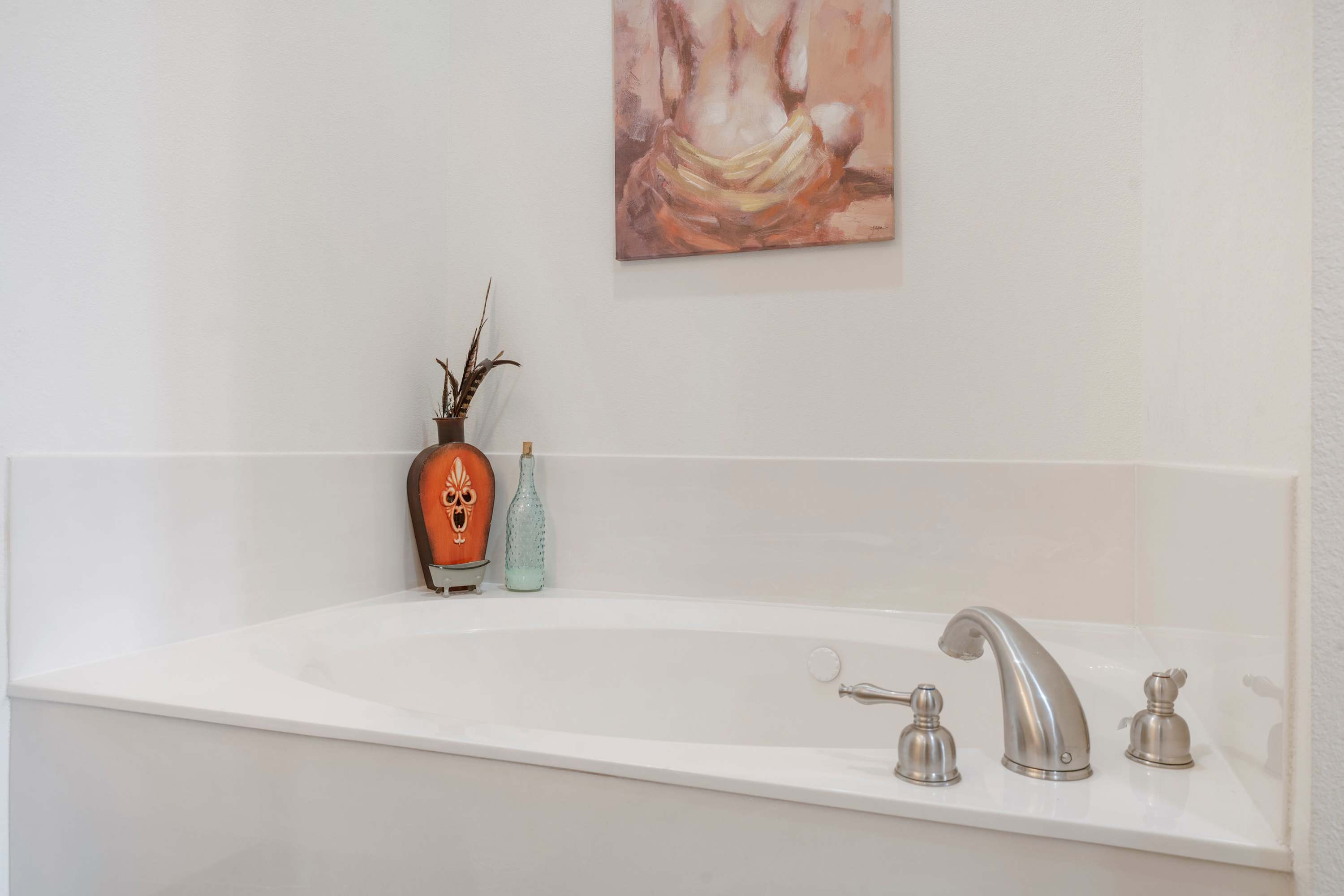 Bedroom #2 includes a king-size bed, a smart TV, deck access, and an ensuite bathroom with a dual vanity, a jetted soaking tub, and a walk-in shower.