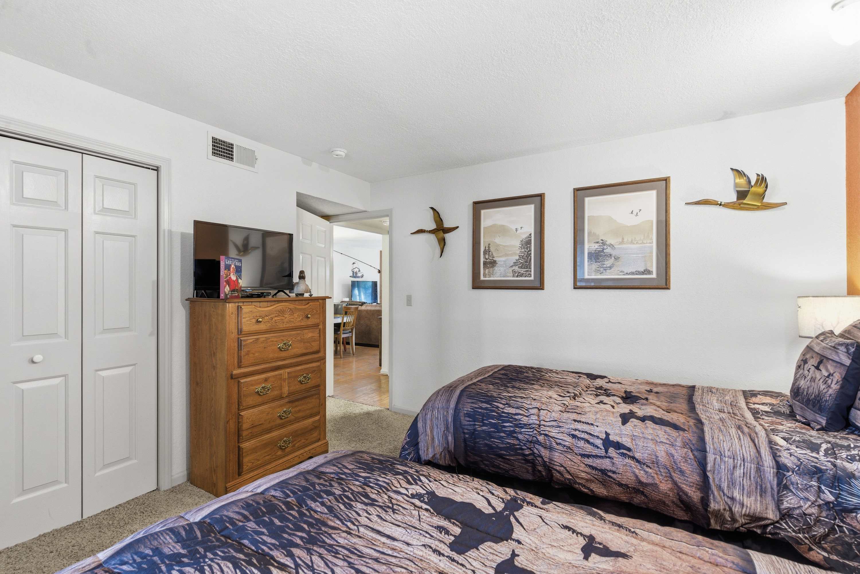 Bedroom #1 includes 2 twin size beds that can convert to a king size bed and a TV.