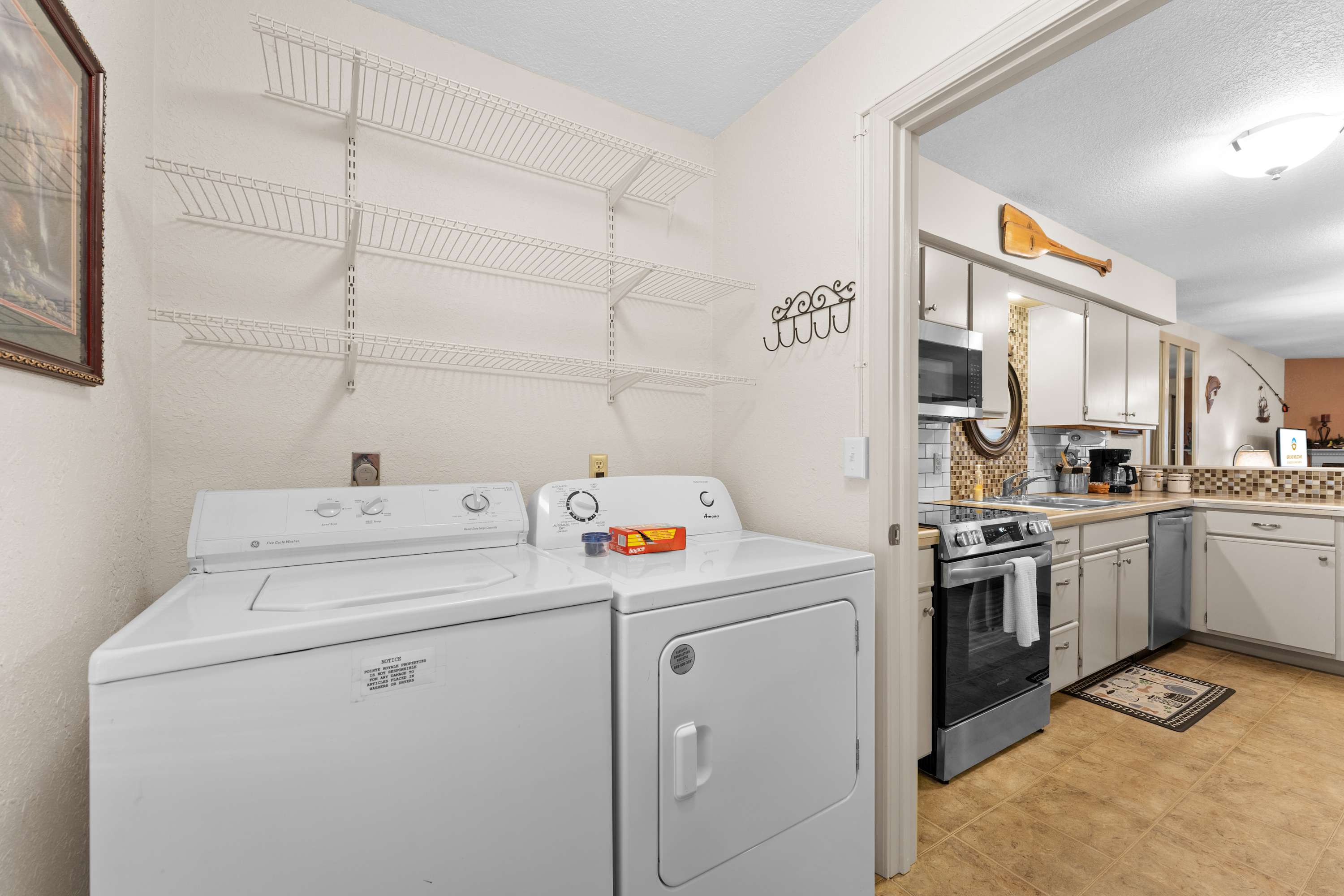 • Washer and dryer in home.