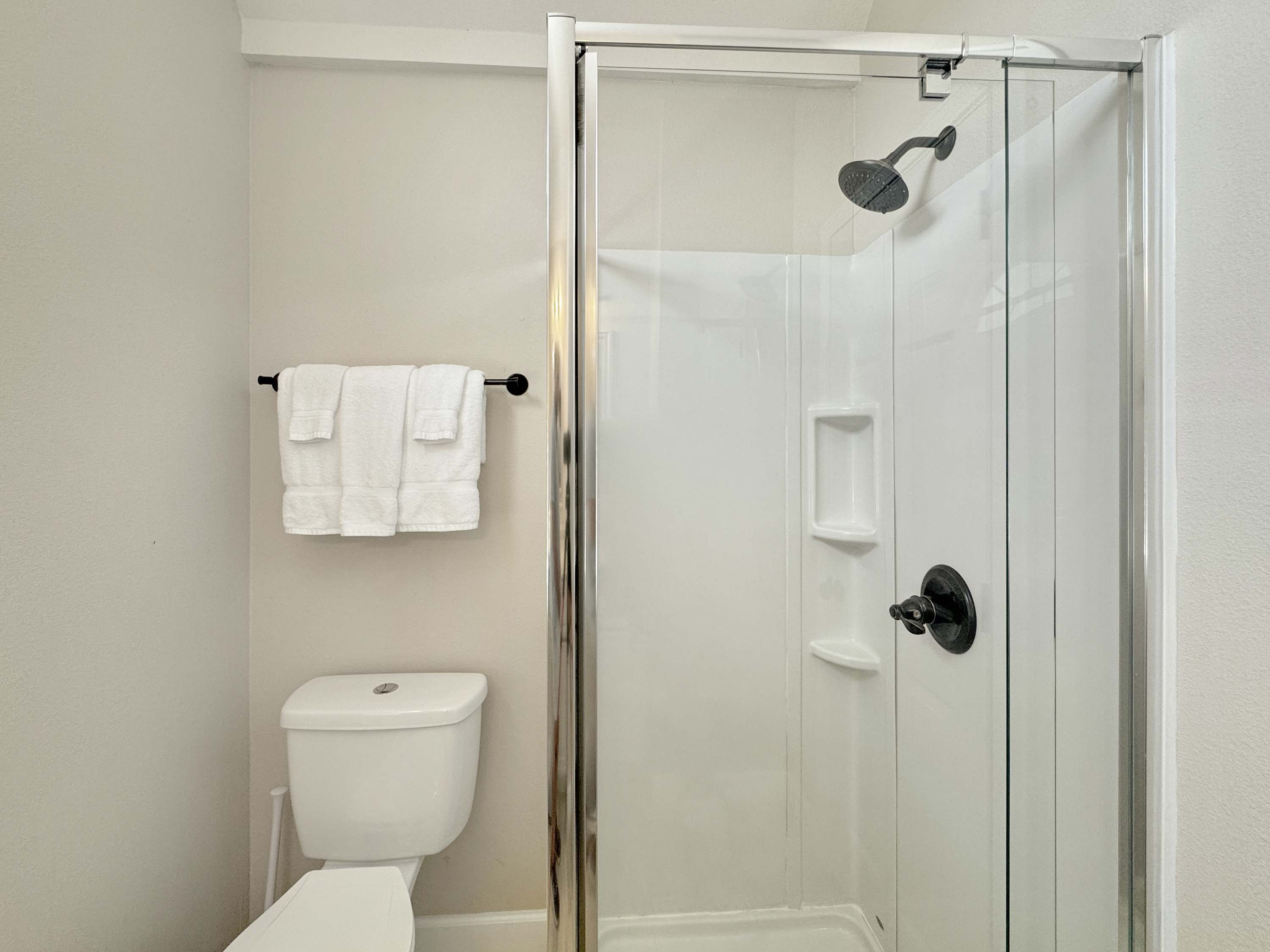 Bedroom #1 includes a king size bed, smart TV, a balcony with incredible views, and ensuite bathroom with a dual vanity and a walk-in shower.