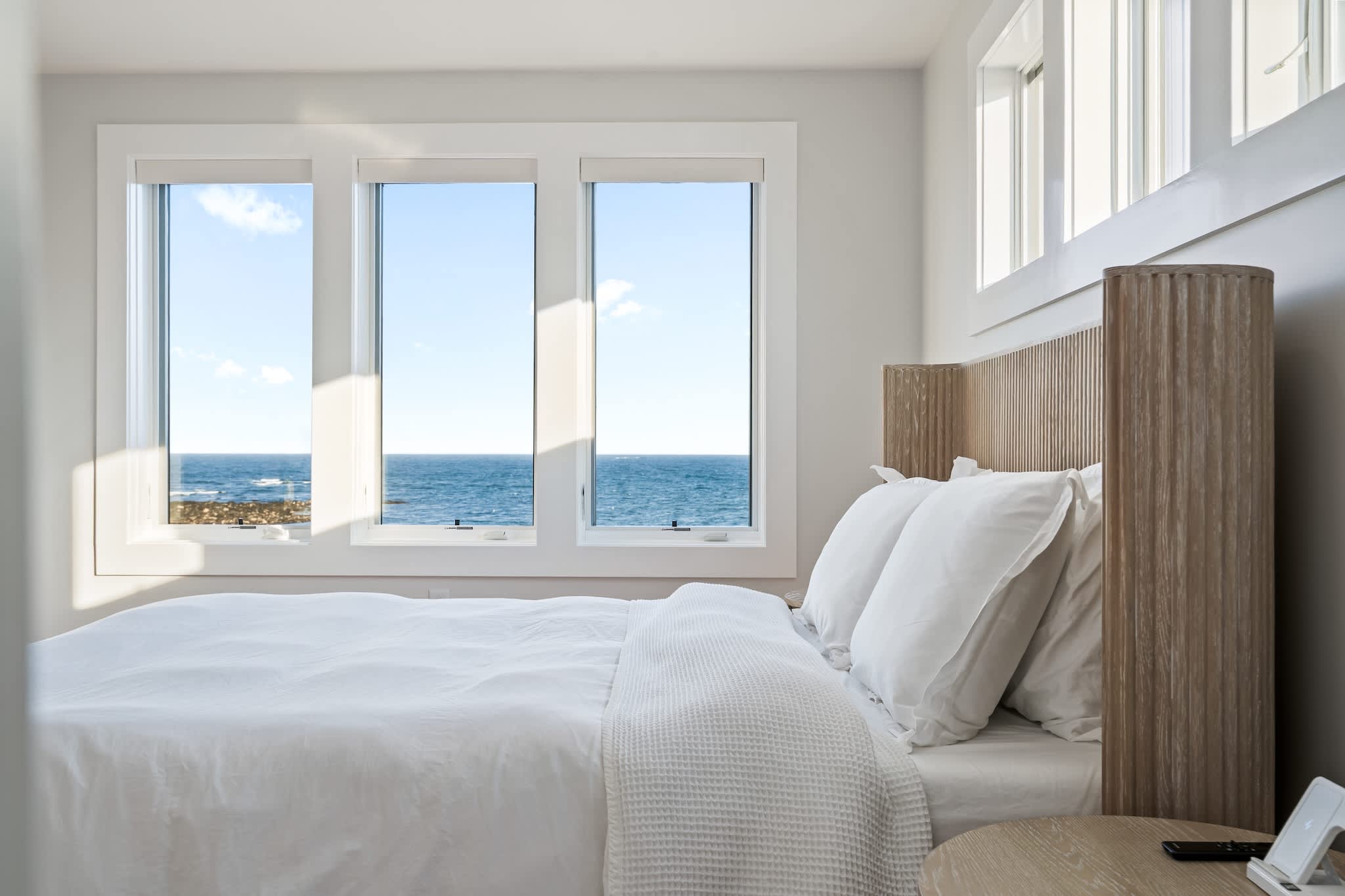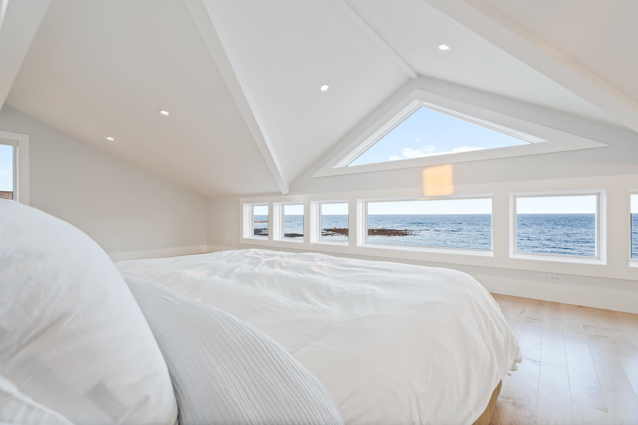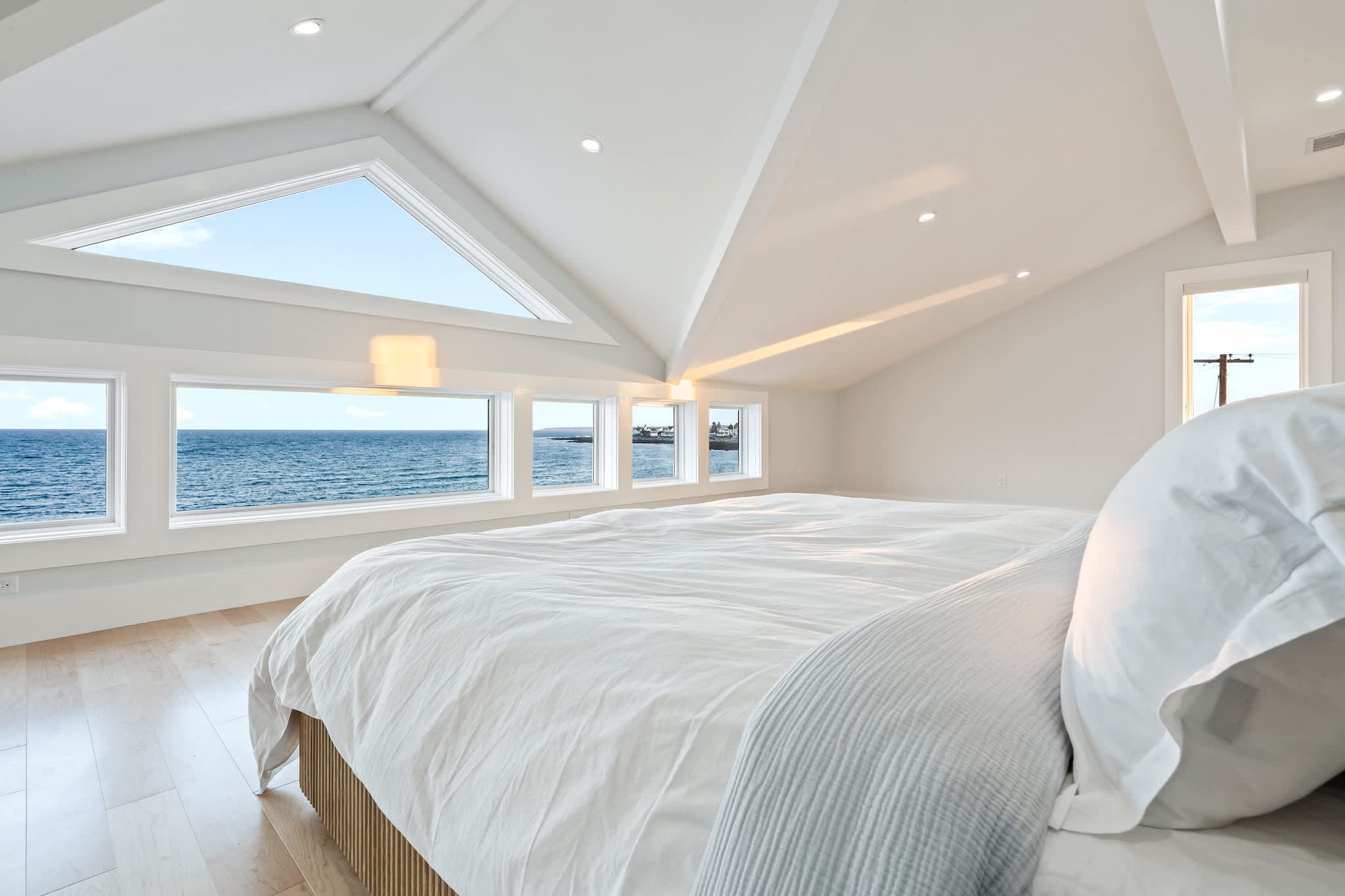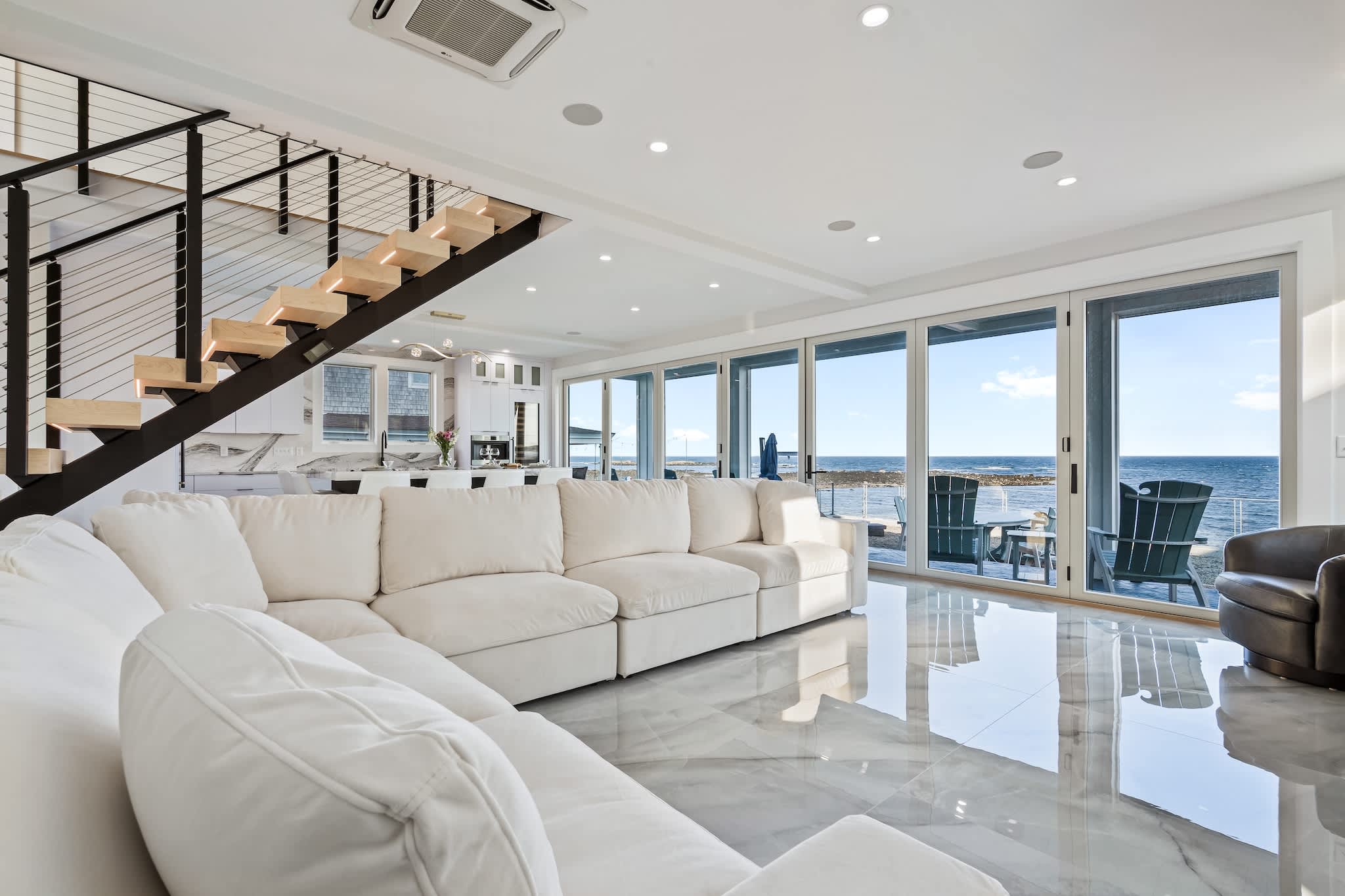 • Floor-to-ceiling windows showcasing the ocean