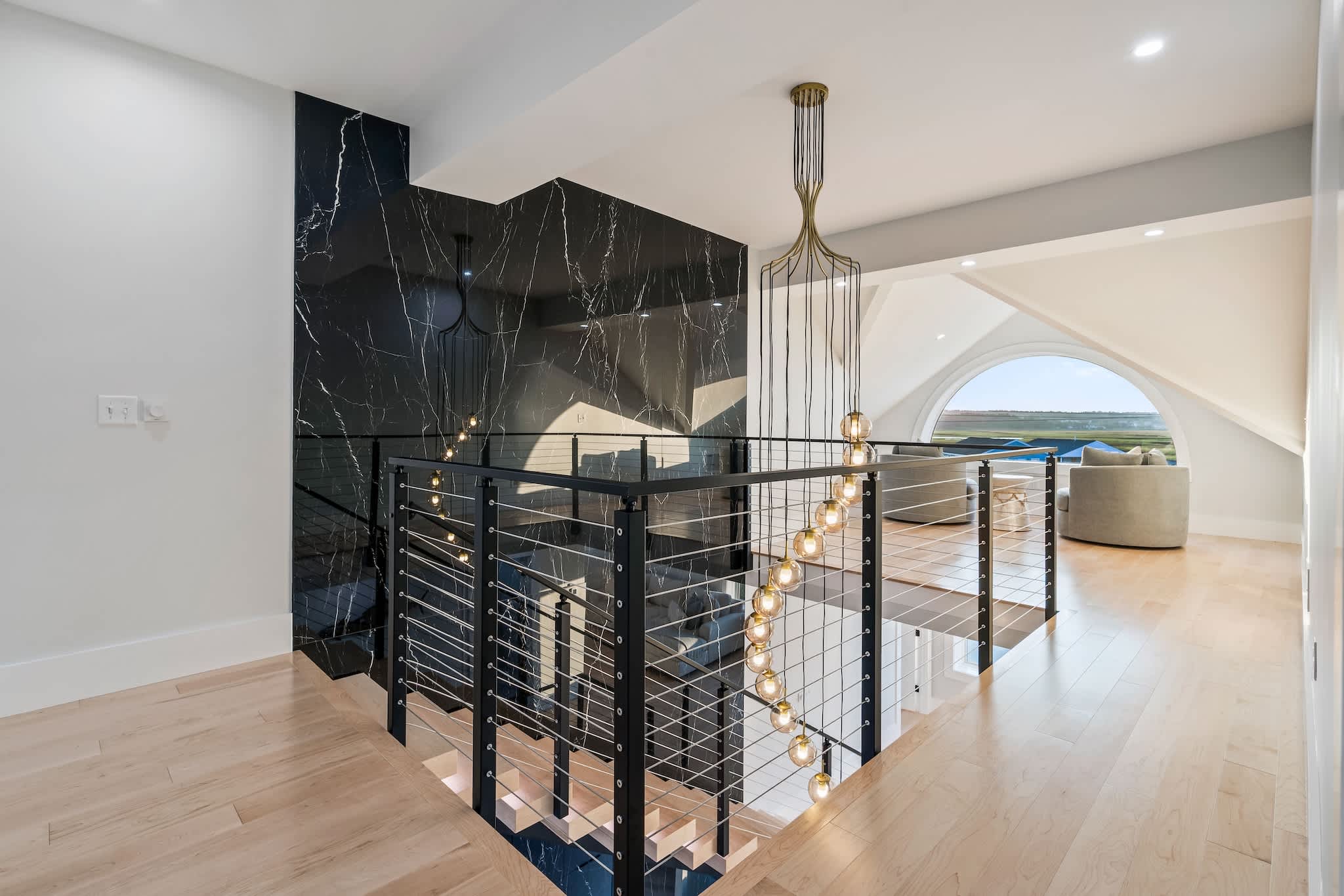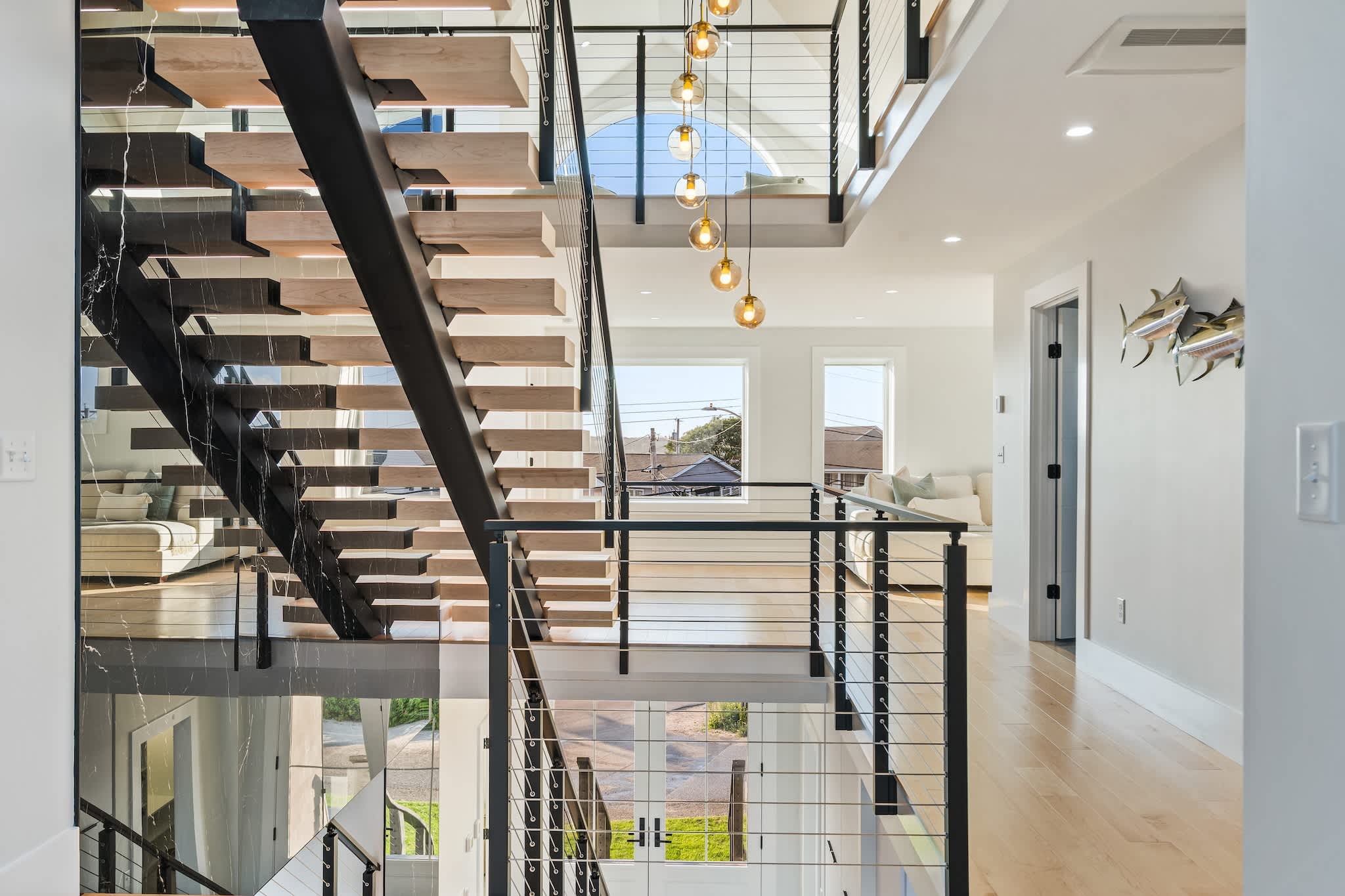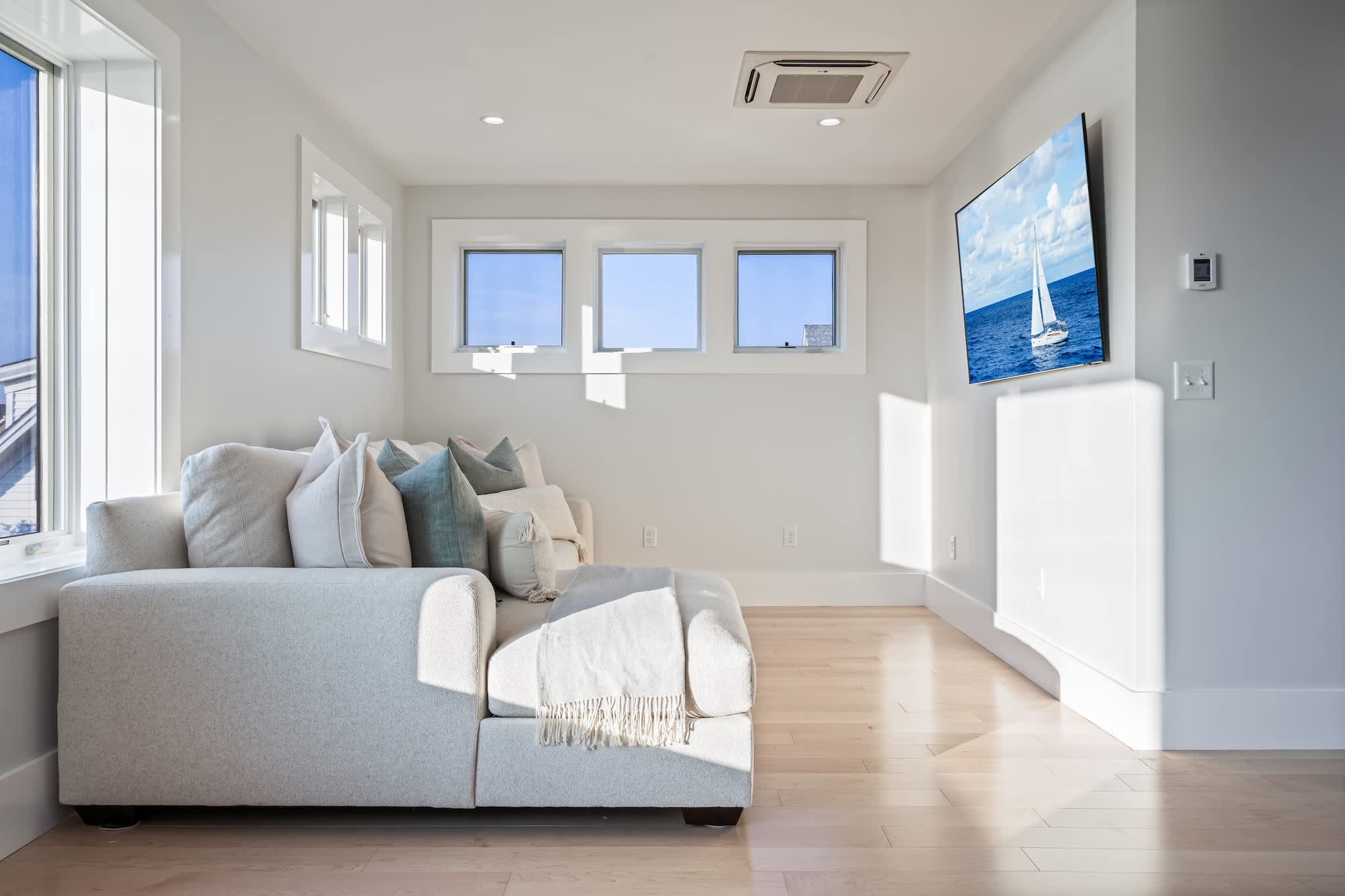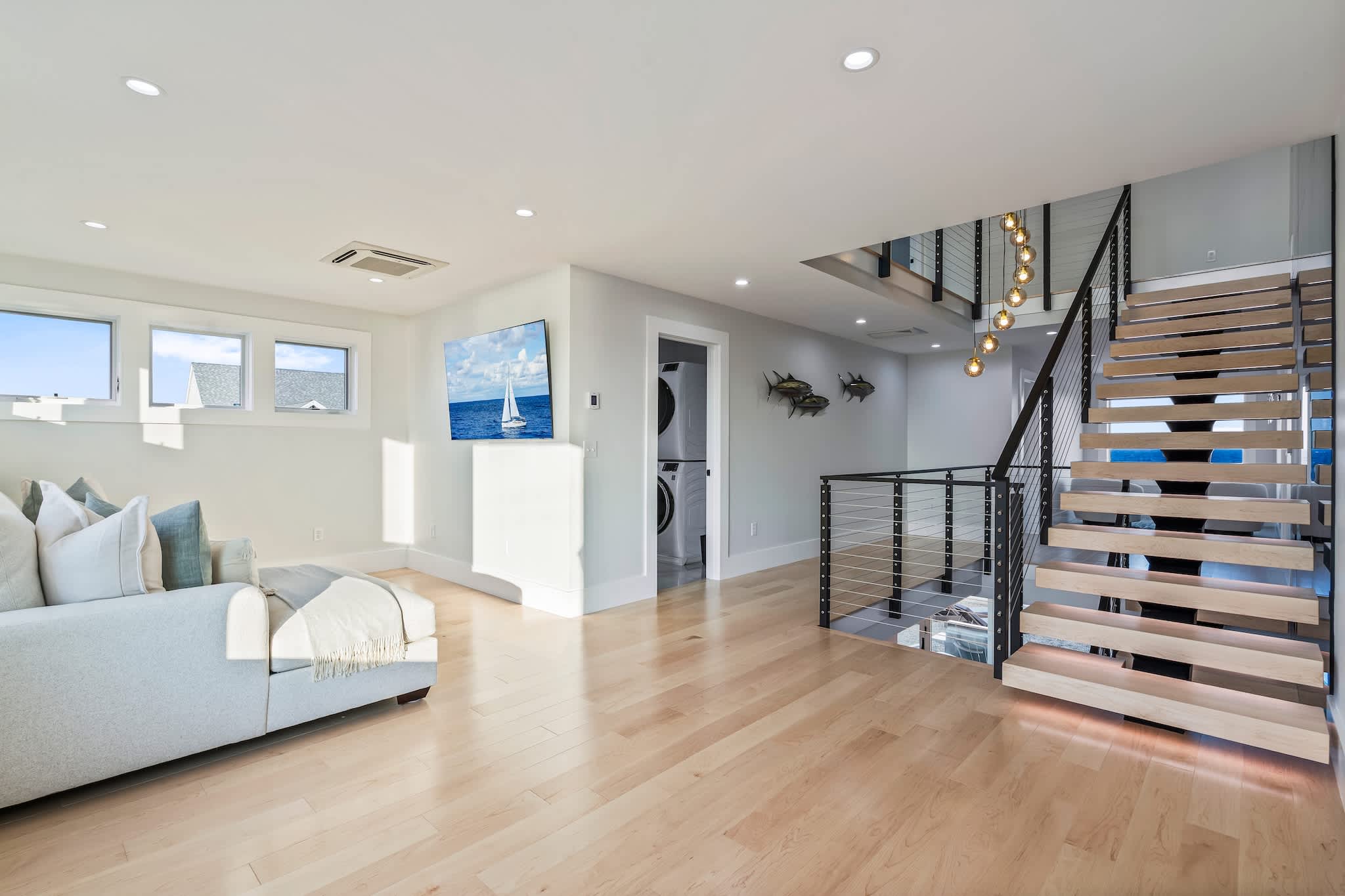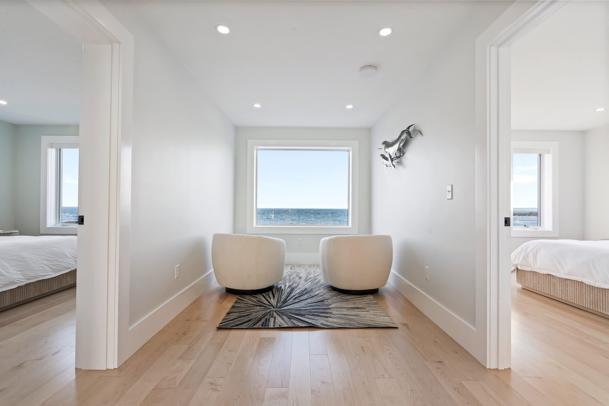 • Floor-to-ceiling windows showcasing the ocean