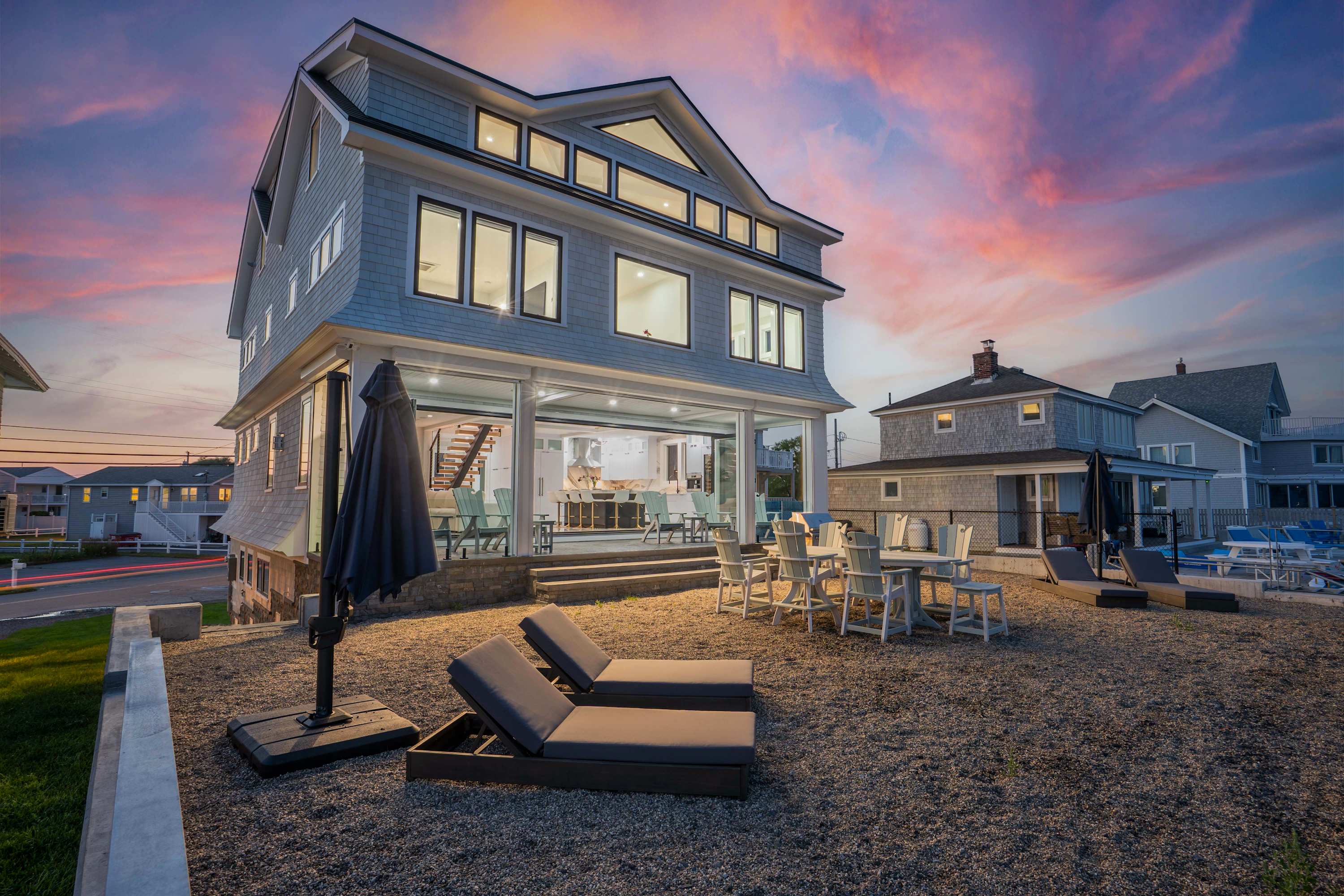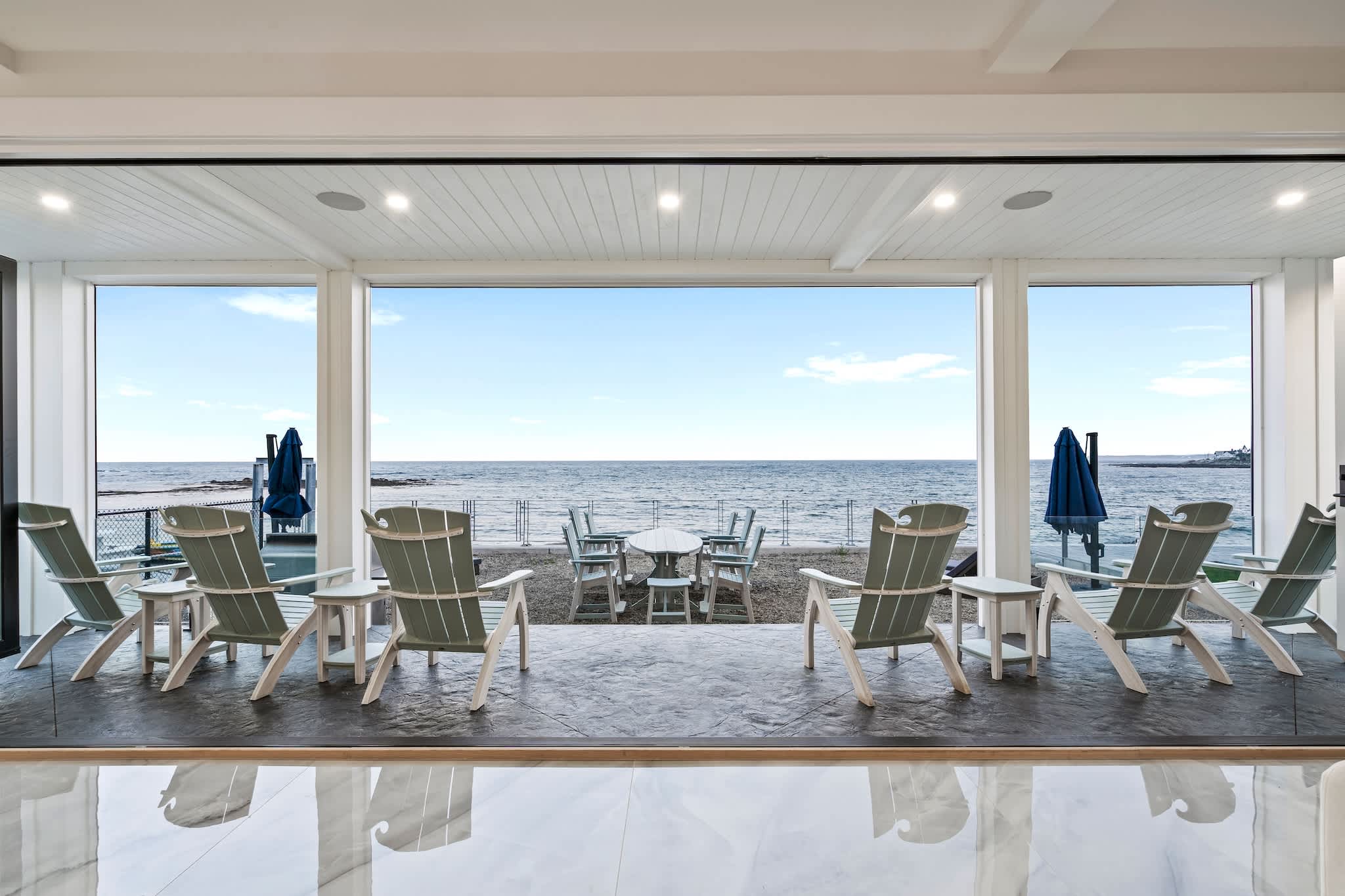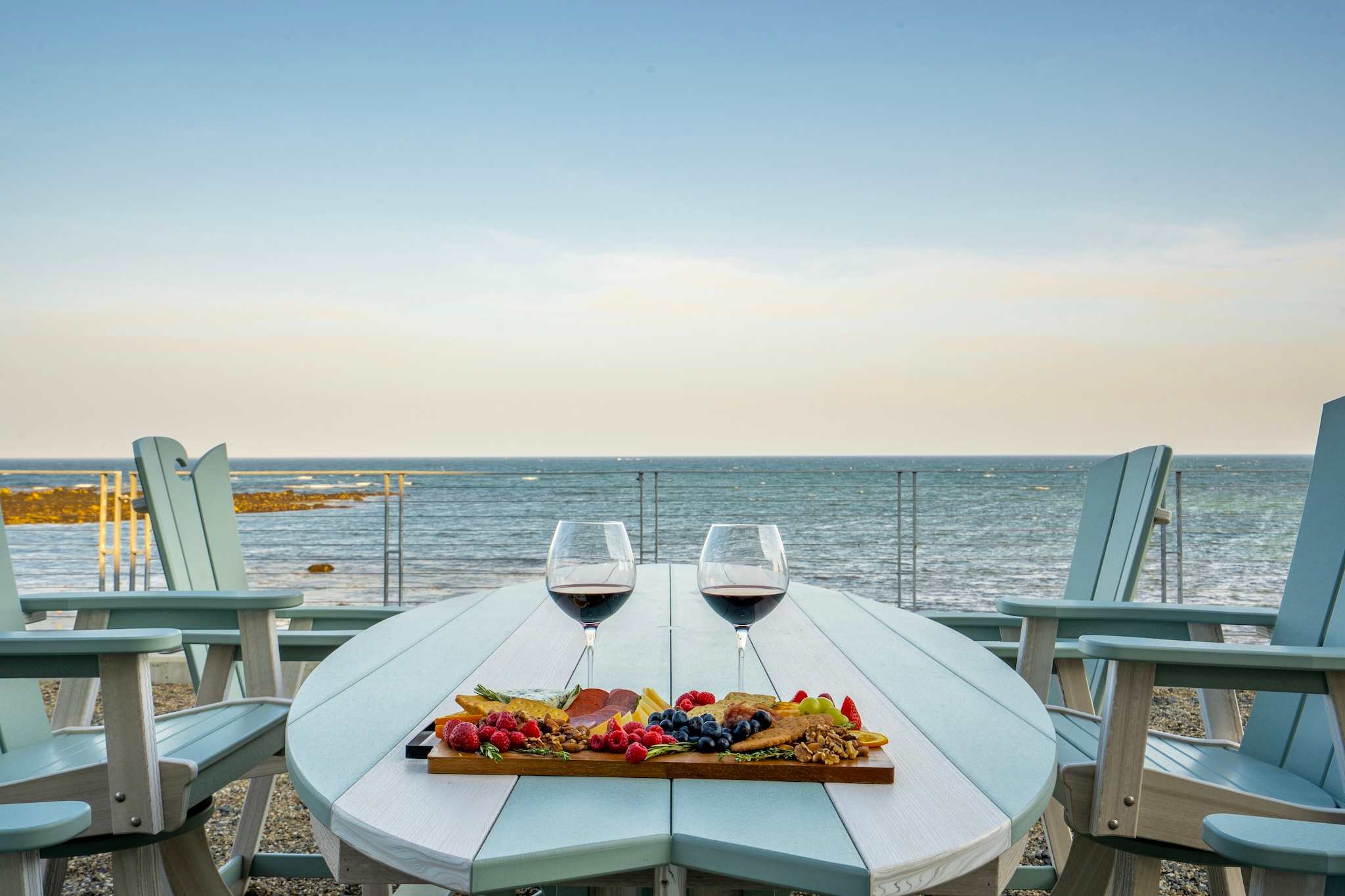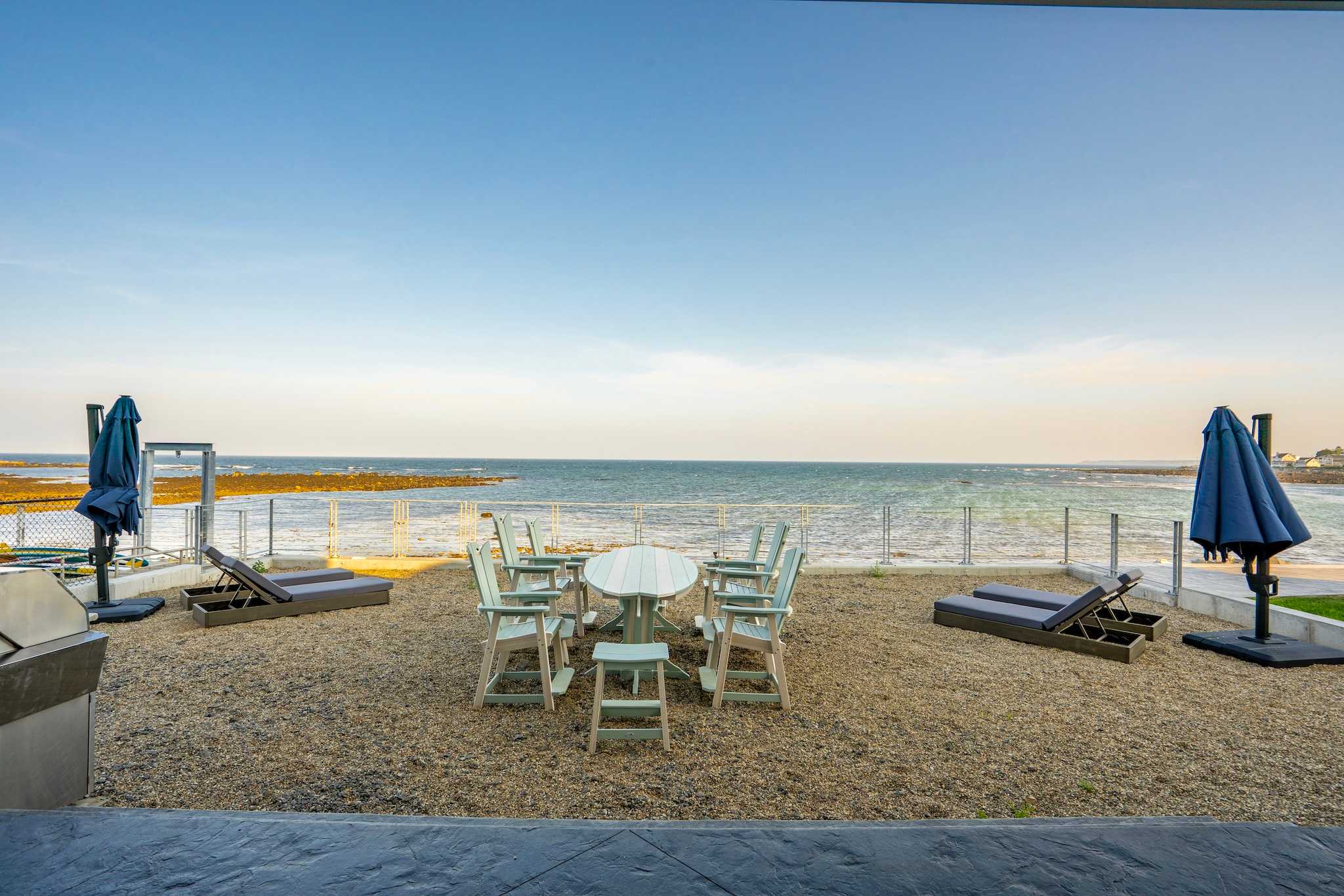 • Oceanside patio with Adirondack chairs — perfect for sunrise coffee or sunset wine