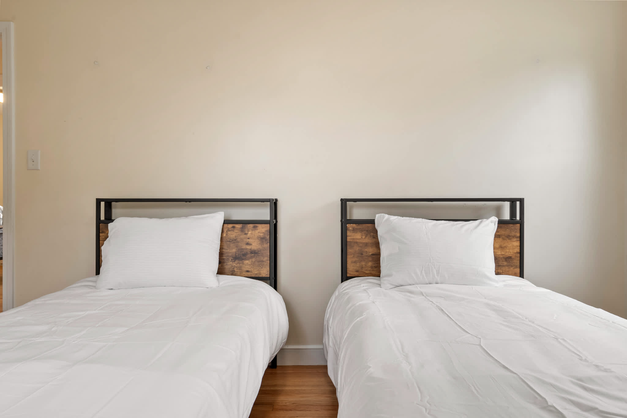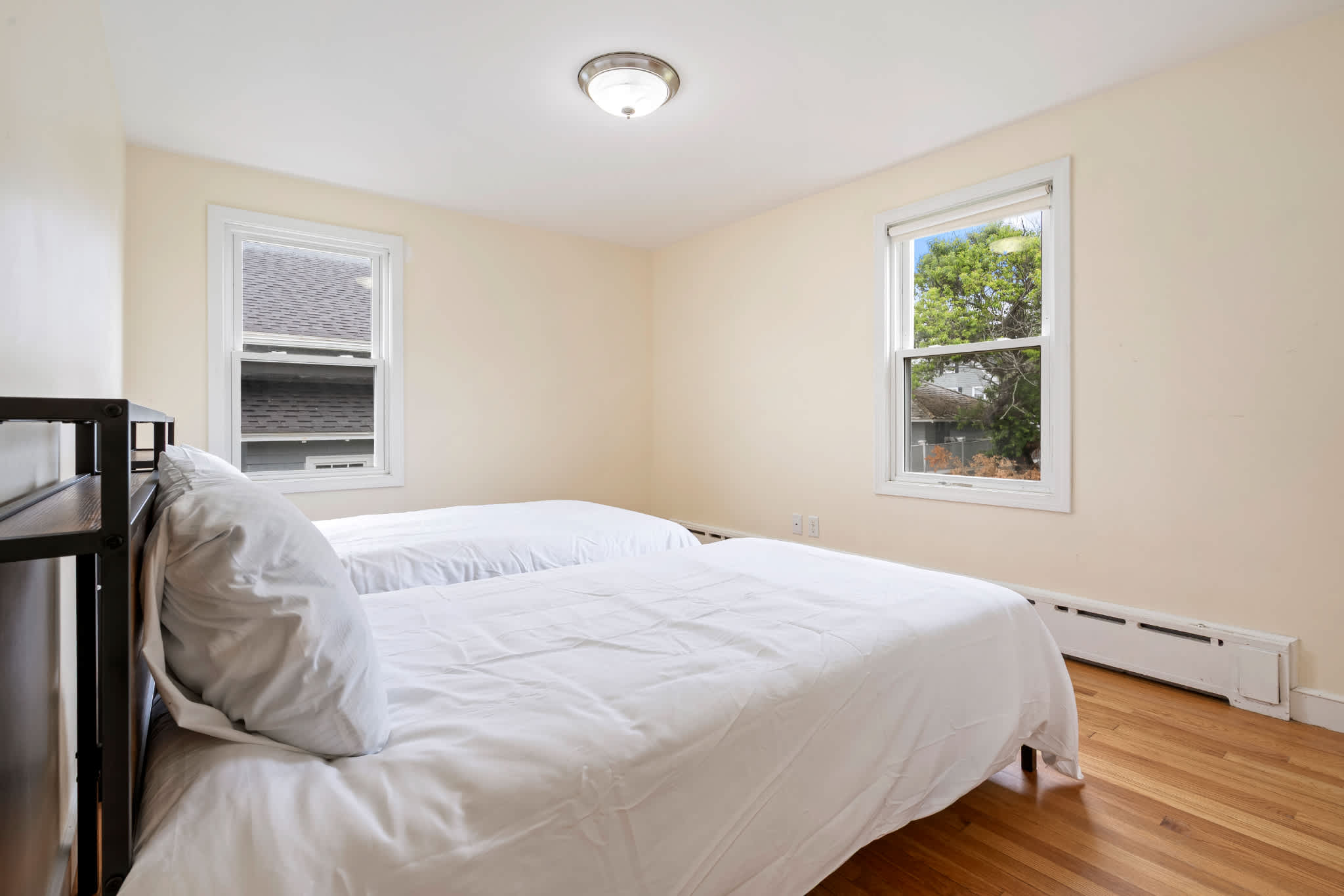 This home features 4 private bedrooms, plus two full bathrooms. Window AC units are provided (one is located in the dining room).